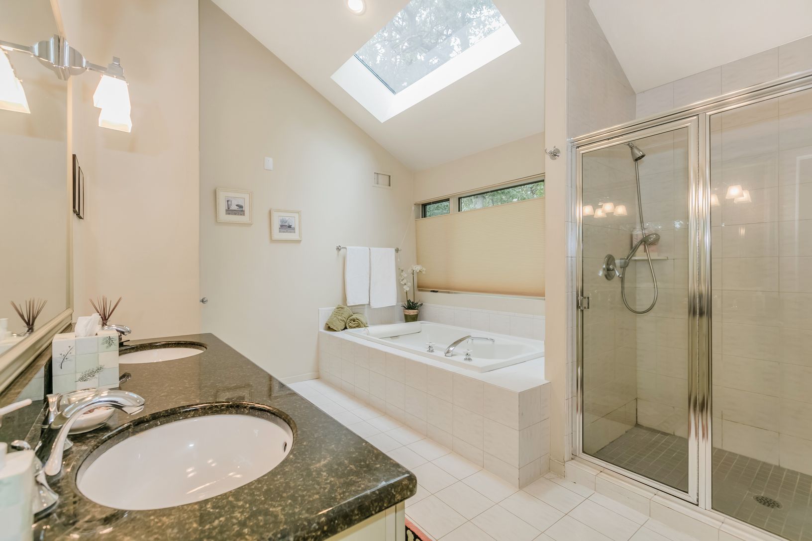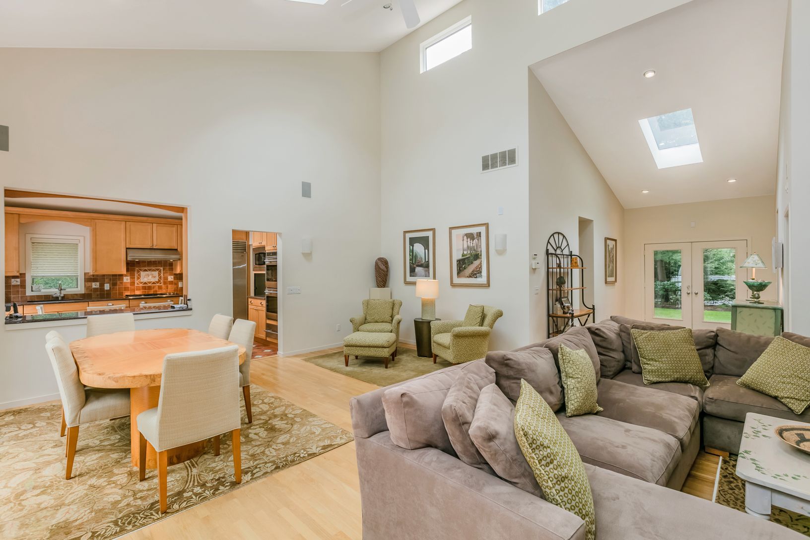 At the end of a cul-de-sac a bright and airy modern 4 bed, 3.5 baths home awaits. Built for entertaining or just relaxing. Soaring ceilings with an easy open plan seamlessly blends the indoors with the outdoors. True chef's kitchen with top of the line appliances and you’re cooking with gas! Enjoy nature in your own backyard, swim in a large, heated saltwater pool, and just enjoy the lifestyle. Full basement, two-car garage, and rights to Sou