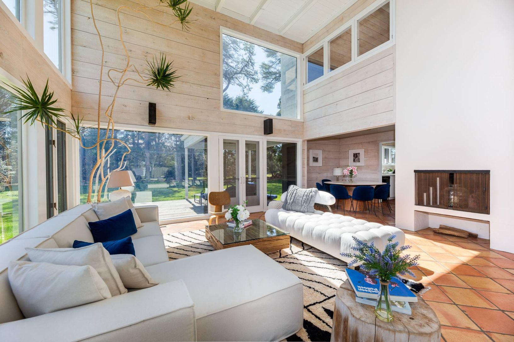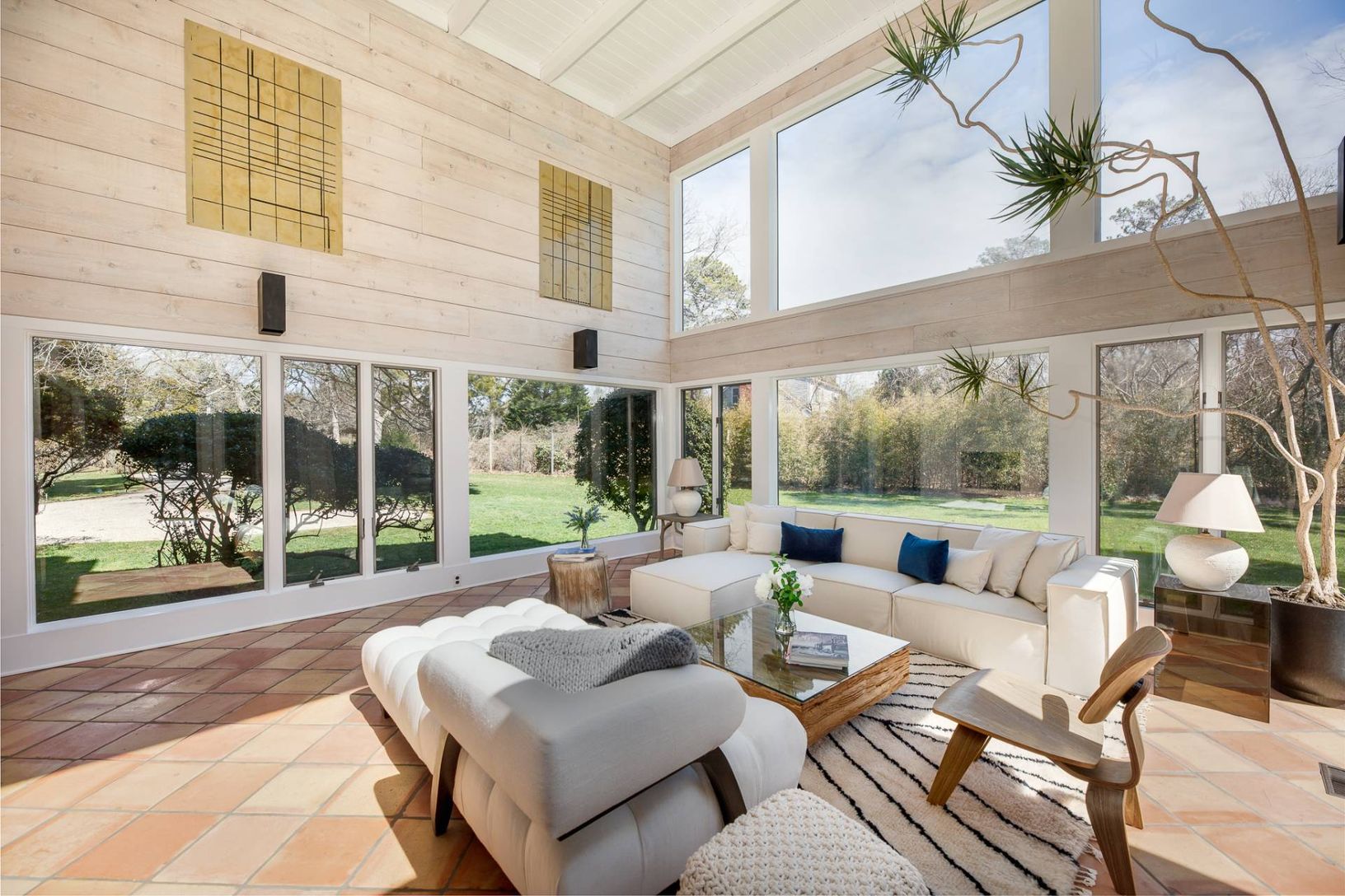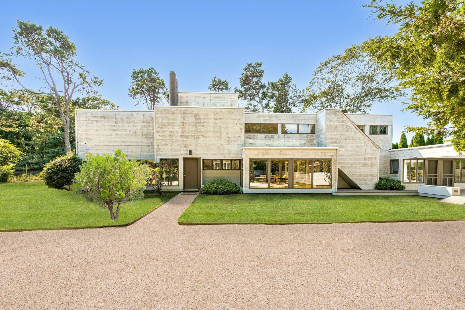 Located on a fenced and gated 1+ South of the Highway acre in Georgica, this freshly painted 5 bedroom/3 bath beach house with central air conditioning and newly renovated bathrooms throughout is a short distance to Main and Georgica Beaches as well as Georgica Pond. The main floor offers a double height living room with walls of glass, a dining room, a glass enclosed breezeway leading to a large family room as well as two bedrooms and a large