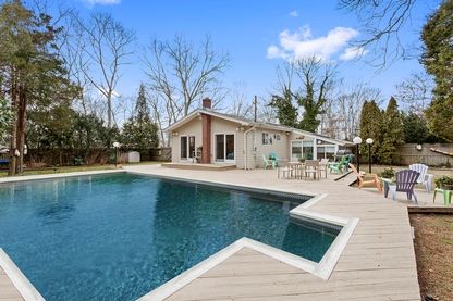 This adorable 3 Bedroom California Cottage Is Beachy w/Vaulted Ceilings, Granite & Cherry Kitchen, Wood Floors,Sunny Formal Dining, Fireplace, Home Office & Double Driveway. Extensive Decking & Large Saltwater Pool, Bbq & Play Area. Fully Fenced In Yard, Lighting & Sound Plus Outdoor Shower, All Perfect For Entertaining! Turn Key, and near all Hamptons Ocean Beaches too! Exclusive residential beach club down the street off