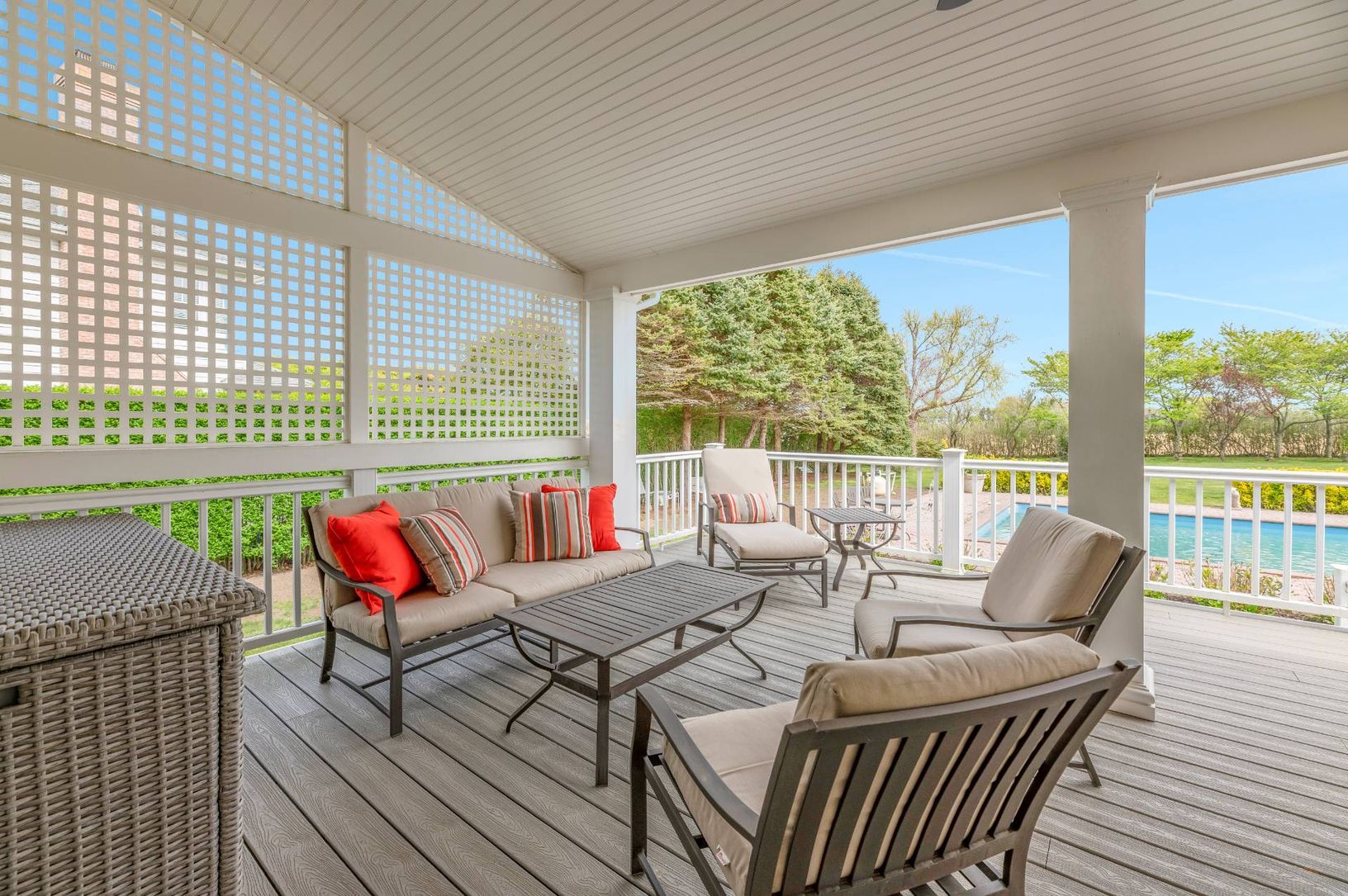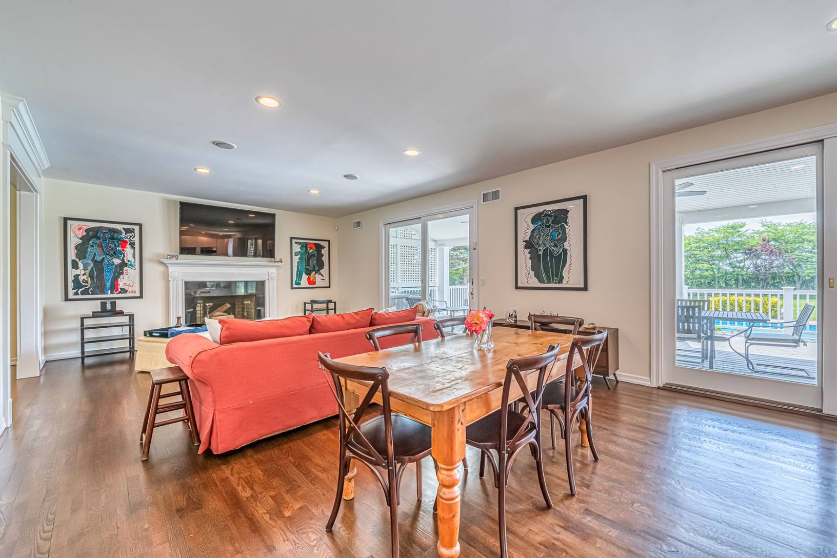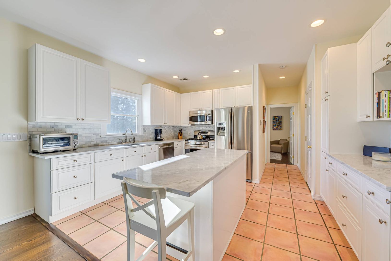 11 Mill Farm Lane, is located on a highly sought after tree-lined street right outside Southampton Village. Set on .76+/- acre, bordering 20+ acres of reserve and on the southeast side of the street this 4 bedroom, 3 full-bath home is newly refreshed and ready for your summer vacation. A central foyer welcomes you to the main gathering spaces: a living room opens to the kitchen with marble countertops & stainless-steel appliances, formal