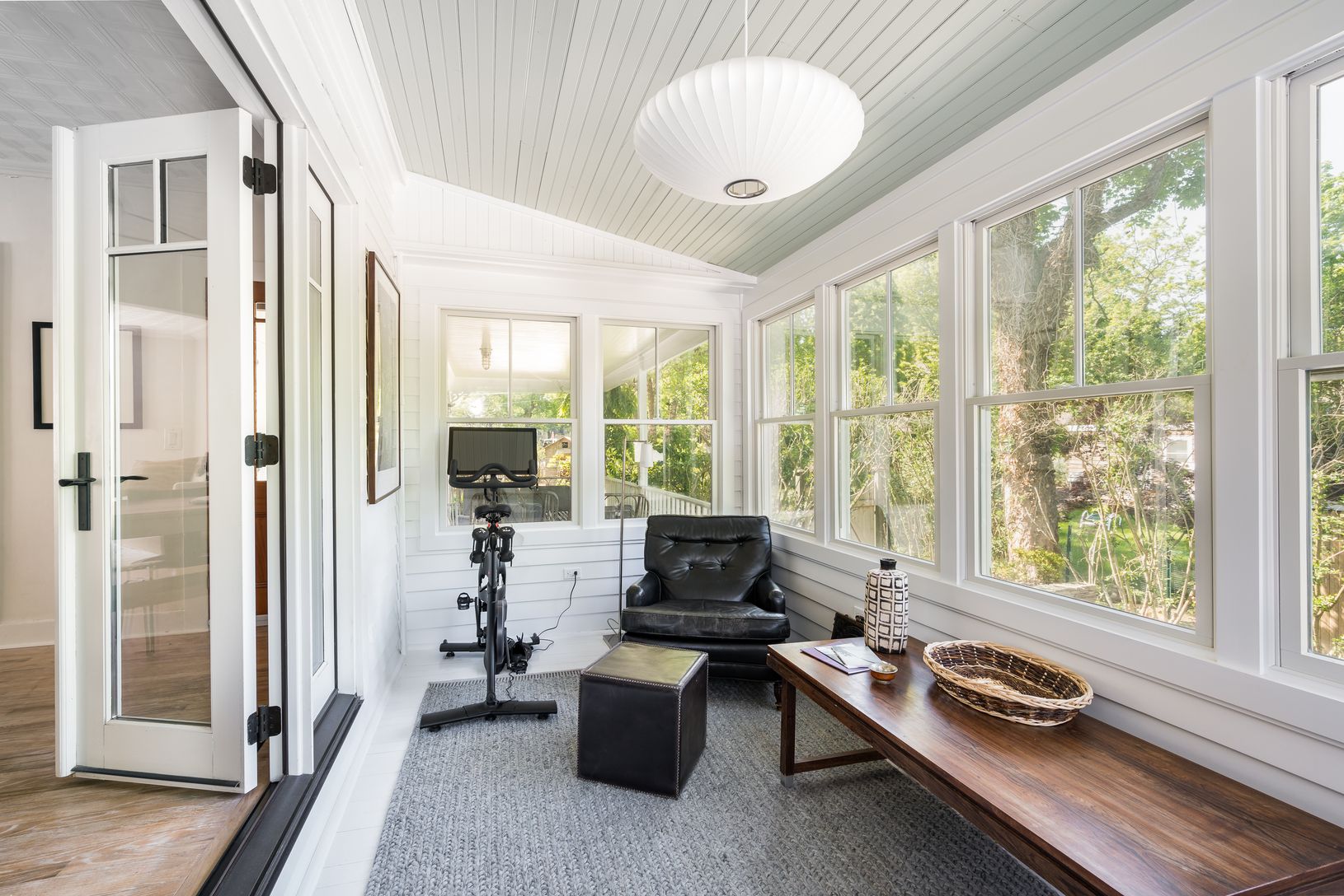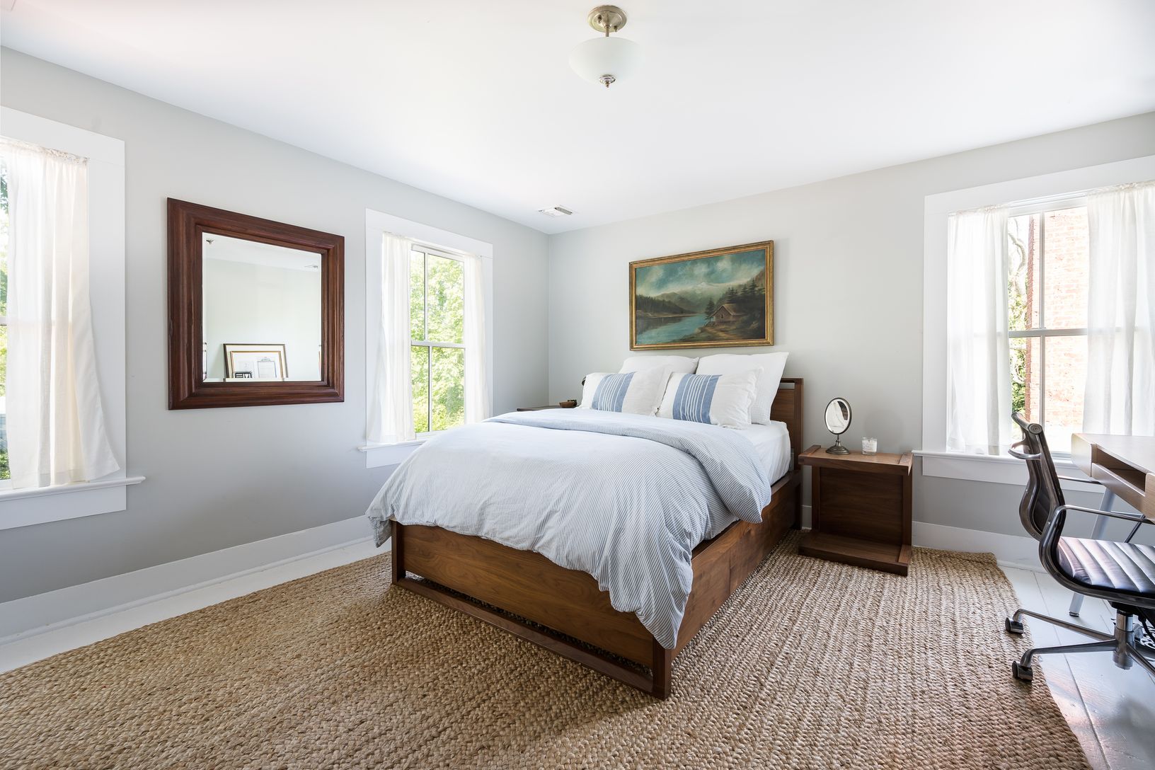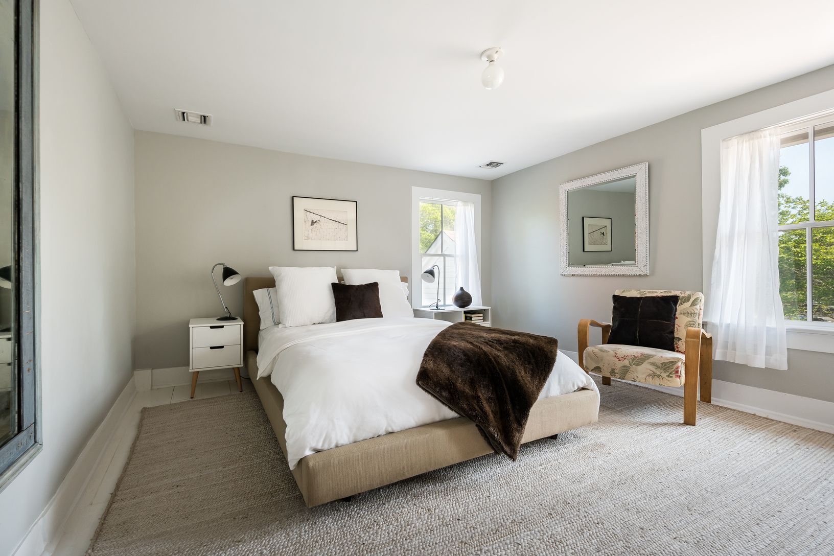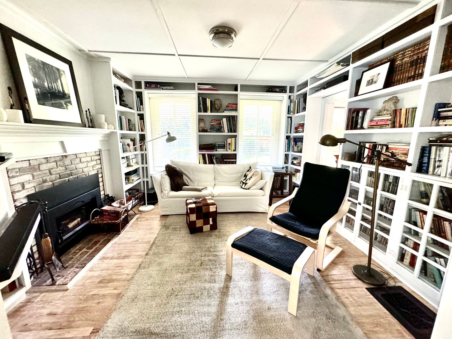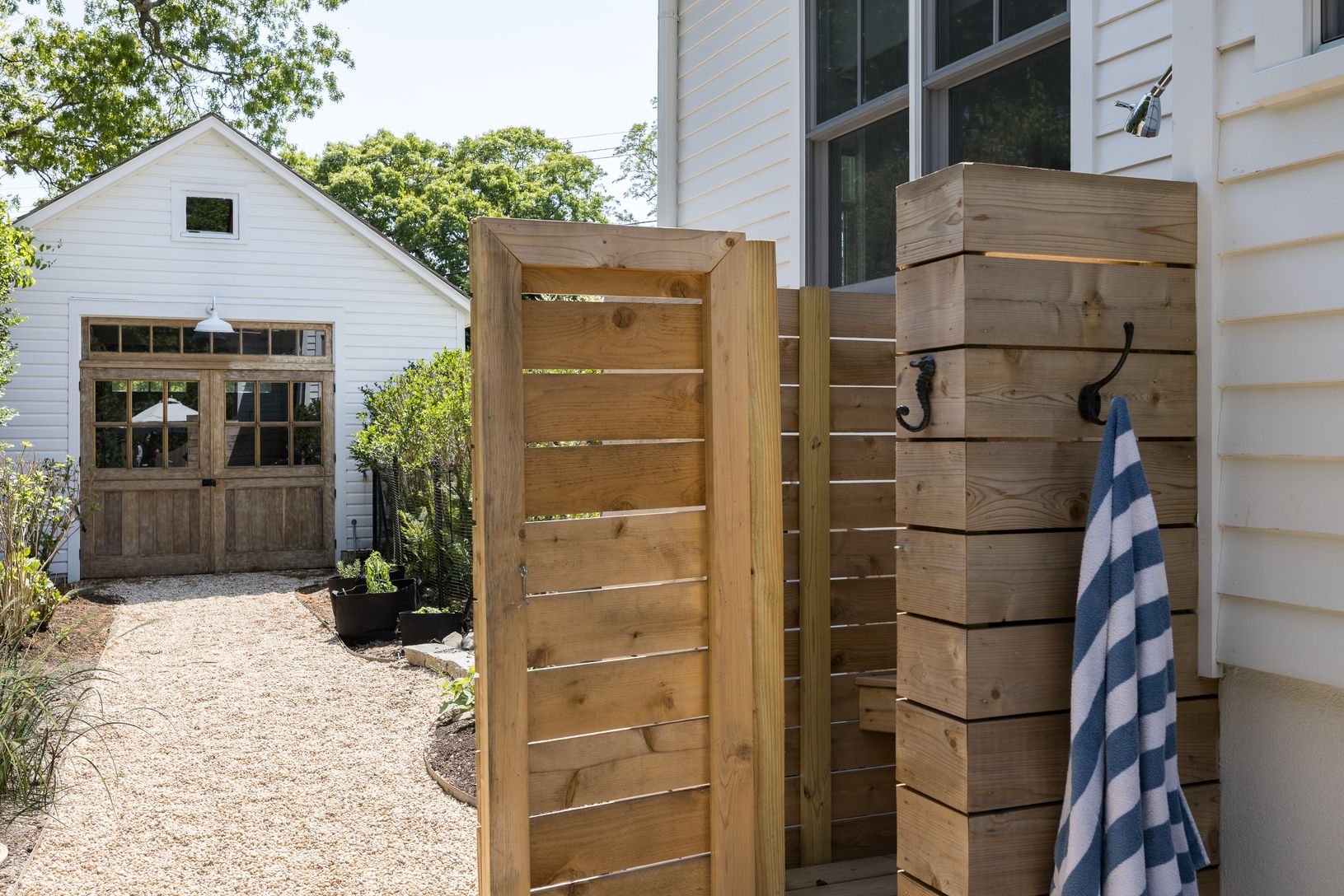 In the Village of Sag Harbor, with a large veranda and a summer porch, a heated gunite saltwater pool with Jacuzzi, surrounded by a private garden, comfy lounge chairs, outdoor dining with Umbrellas and double Barbecue grill, and an entertaining barn to hang out and play ping pong in. Inside the furnishings are magazine wonderful. There is an open dining room that flows into a living room with an overstuffed white couch and chairs, which opens