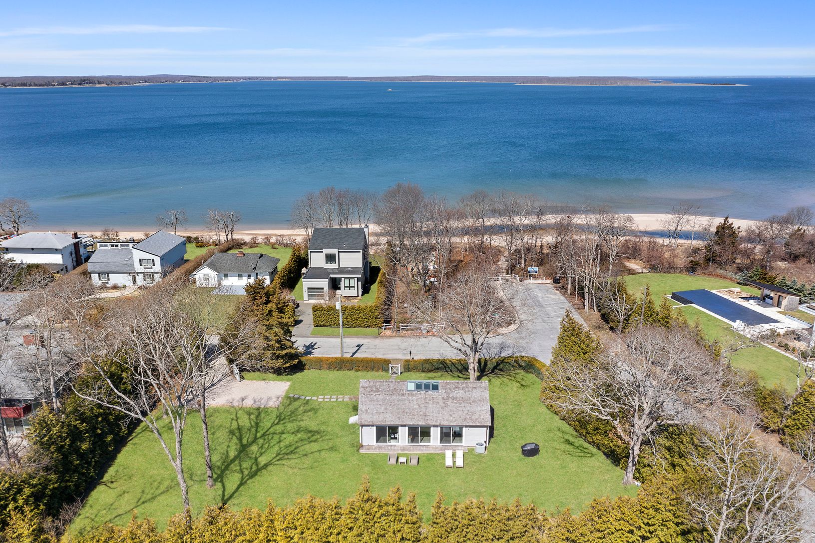 This Sag Harbor Village cottage sited on a generous double lot in a coveted Beach Community is the perfect setting for this renovated two bedroom, one bath home. Abundant water views, across the street from beautiful white sandy beach, this beautifully landscaped cleared 1/2 acre has endless possibilities for expansion or redevelopment. You can enjoy water views from the first floor of this immaculate open floor plan sun-filled cottage. Ther