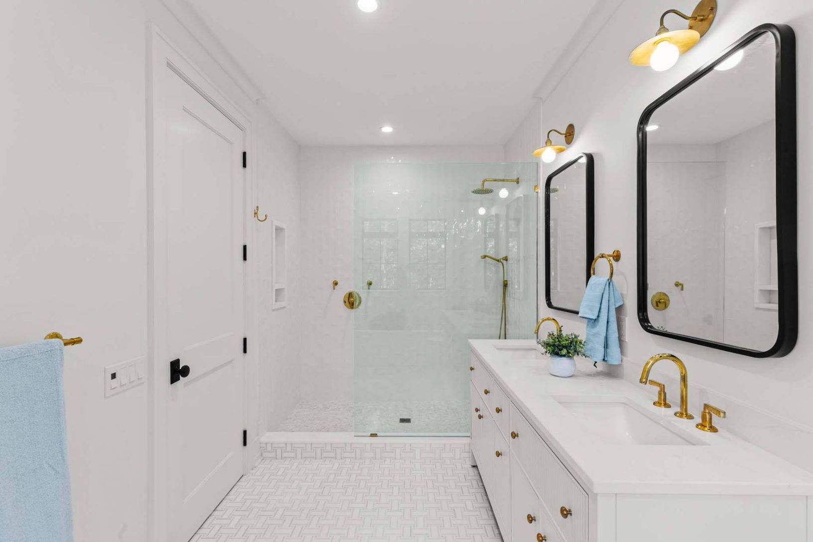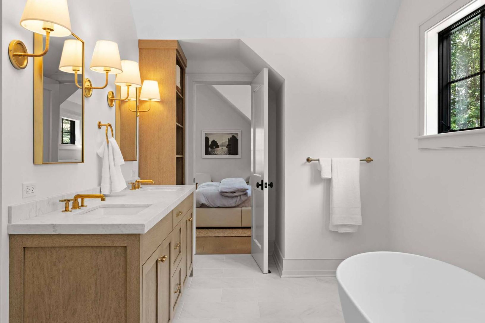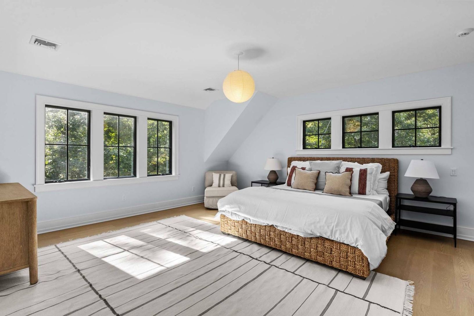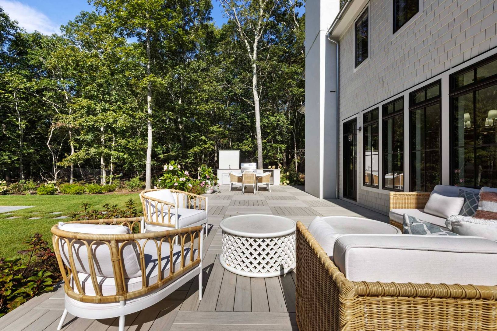 Experience the epitome of Hamptons luxury in this breathtaking new construction residence nestled on 2.4 private acres. This exquisite home seamlessly blends modern elegance with timeless sophistication. The property is an entertainer's dream, featuring an elegant outdoor oasis complete with a 20x40 pool and spa, a large patio adorned with an outdoor kitchen, and a refreshing outdoor shower. Spanning approximately 6,600 square feet across thre
