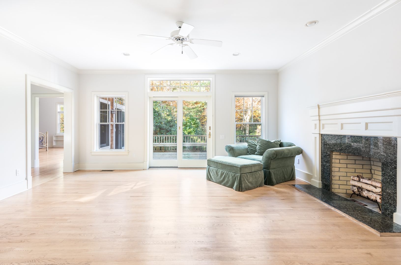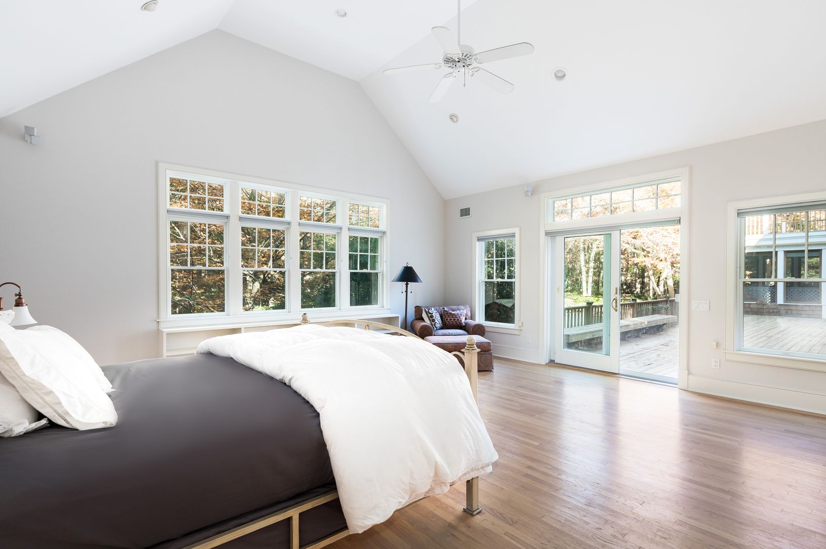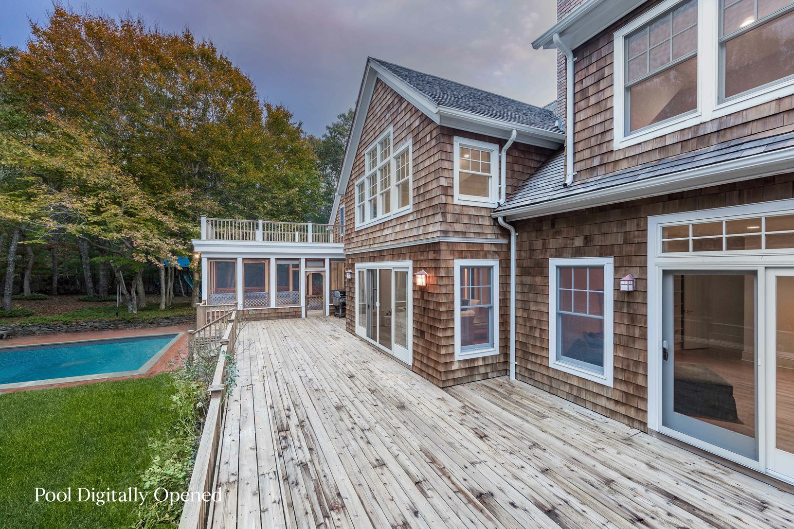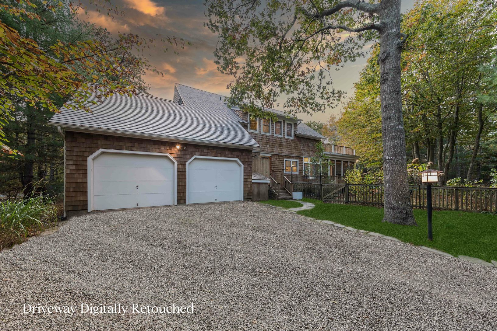 A fantastic opportunity awaits at this stately traditional just 2 miles from the heart of East Hampton Village. Situated on 1.5 acres along a quiet and highly sought after cul-de-sac, the home offers an impressive 4,650 +/- sq ft of above grade living space, with an additional 2,300 +/- sq ft in the finished lower level, ready to be renovated to your tastes. A grand entrance leads to the open living/dining space with soaring ceilings, wood bur