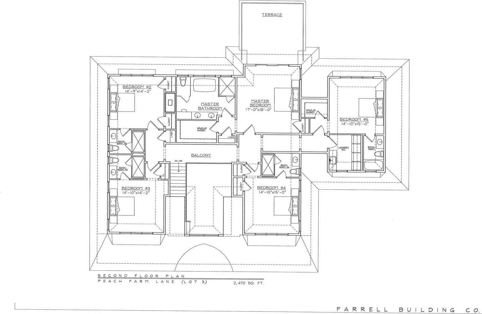 FOUR are already sold. Only 1 home still available on Peach Farm Lane, one of the premiere streets in the Northwest, Farrell Builders has just finished 5 new homes. This gracious 5200 square foot home has 5 ensuite bedrooms plus a sumptuous master bedroom & bath with its own private terrace. A two-story paneled foyer leads to a large Great room highlighted by a coffered ceiling and detailed moldings throughout the house. A two sided fire