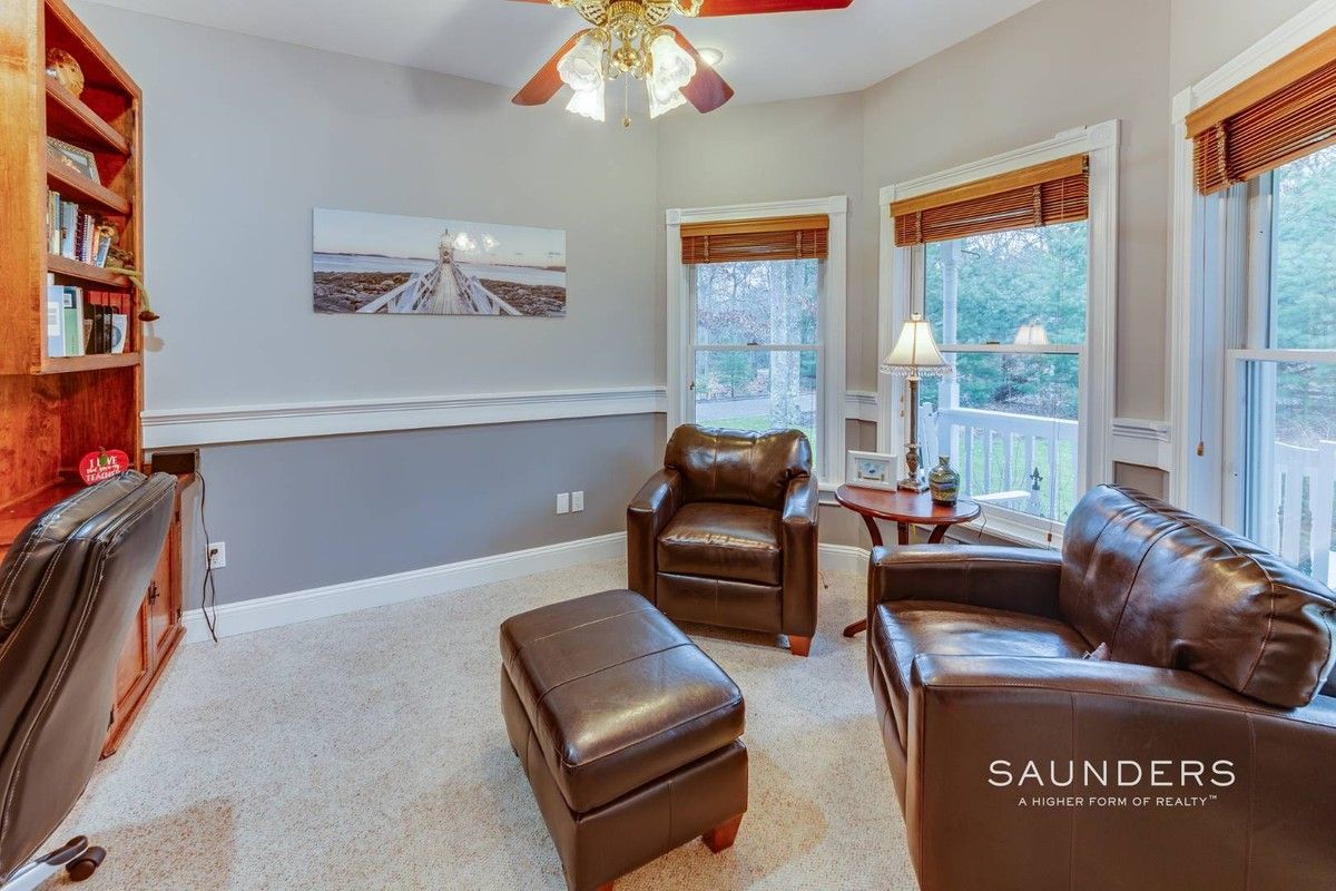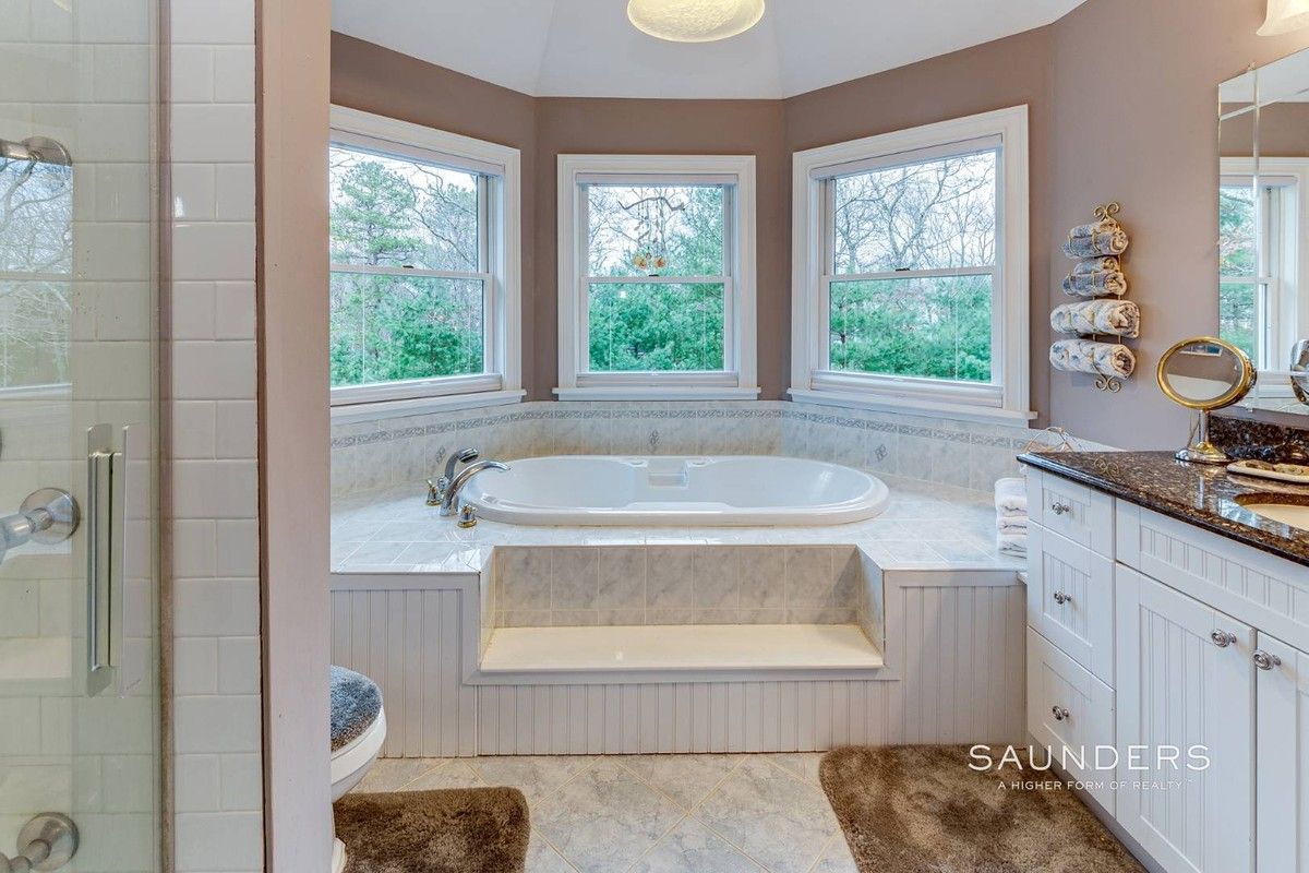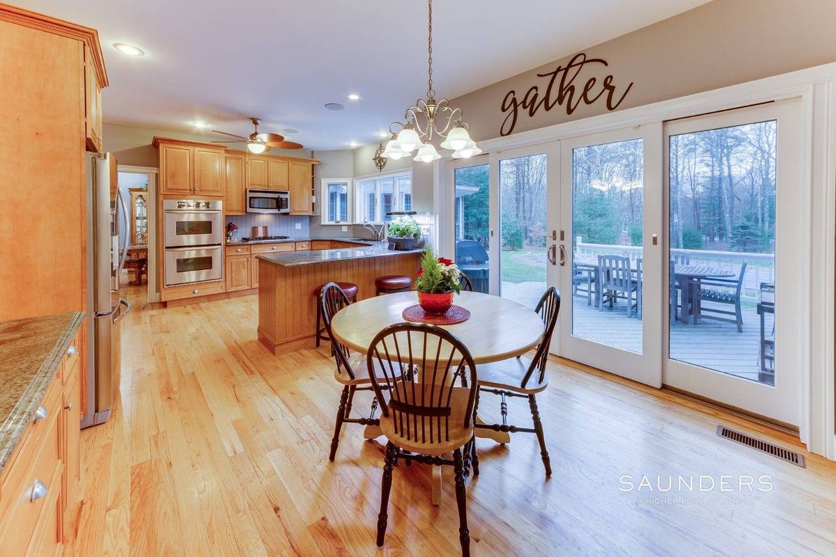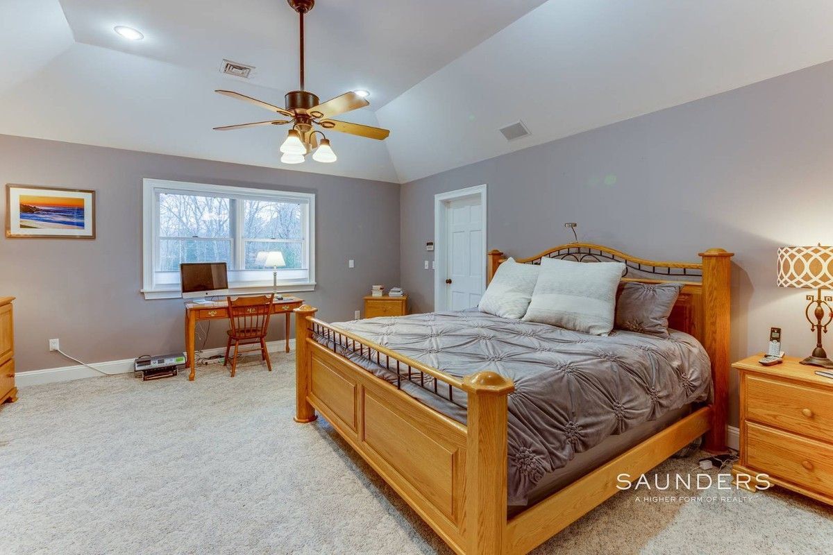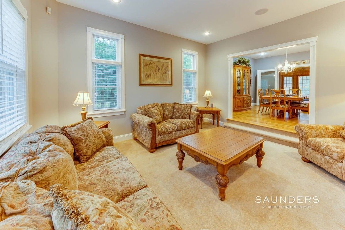 On a quiet, private cul-de-sac that's just minutes to ocean beaches and the restaurants, shops and cultural destinations of East Hampton Village, this impeccably maintained home on .63 acre offers 3089 +/- sq. ft. of living space with four bedrooms, three full baths and three half baths. Enter into light-filled open living areas including a living room with fireplace, formal dining and bright eat-in kitchen featuring counter seating, stainless