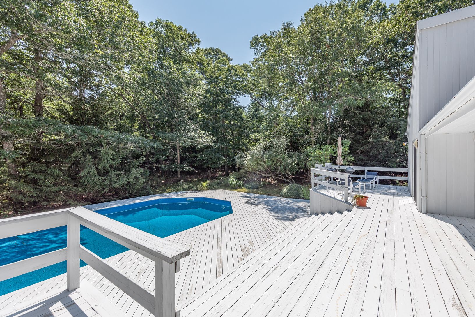 Flooded with light and located on a quiet cul de sac street close to Three Mile Harbor, this three-bedroom, two-bath contemporary home has an open floor plan with soaring ceilings, skylights and sliding doors that open on to a large deck and pool. The dry full basement has the potential for additional finishes space. Just blocks from a marina, beaches and restaurants and a short hop into East Hampton Village.