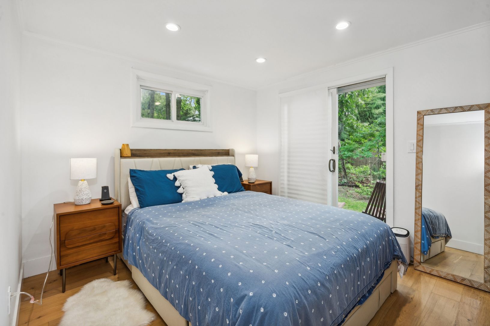 Escape to tranquility this summer in our light-filled and charming, fully renovated two-bedroom house in Hampton Bays. Featuring white oak hardwood floors, an open-concept living room with a cozy fireplace and flat-screen TV, and a chef's all-white kitchen with vaulted ceilings, this home combines comfort with modern elegance. Rest in two spacious bedrooms-one with a queen-size bed and access to a side sitting area, perfect for your morning co