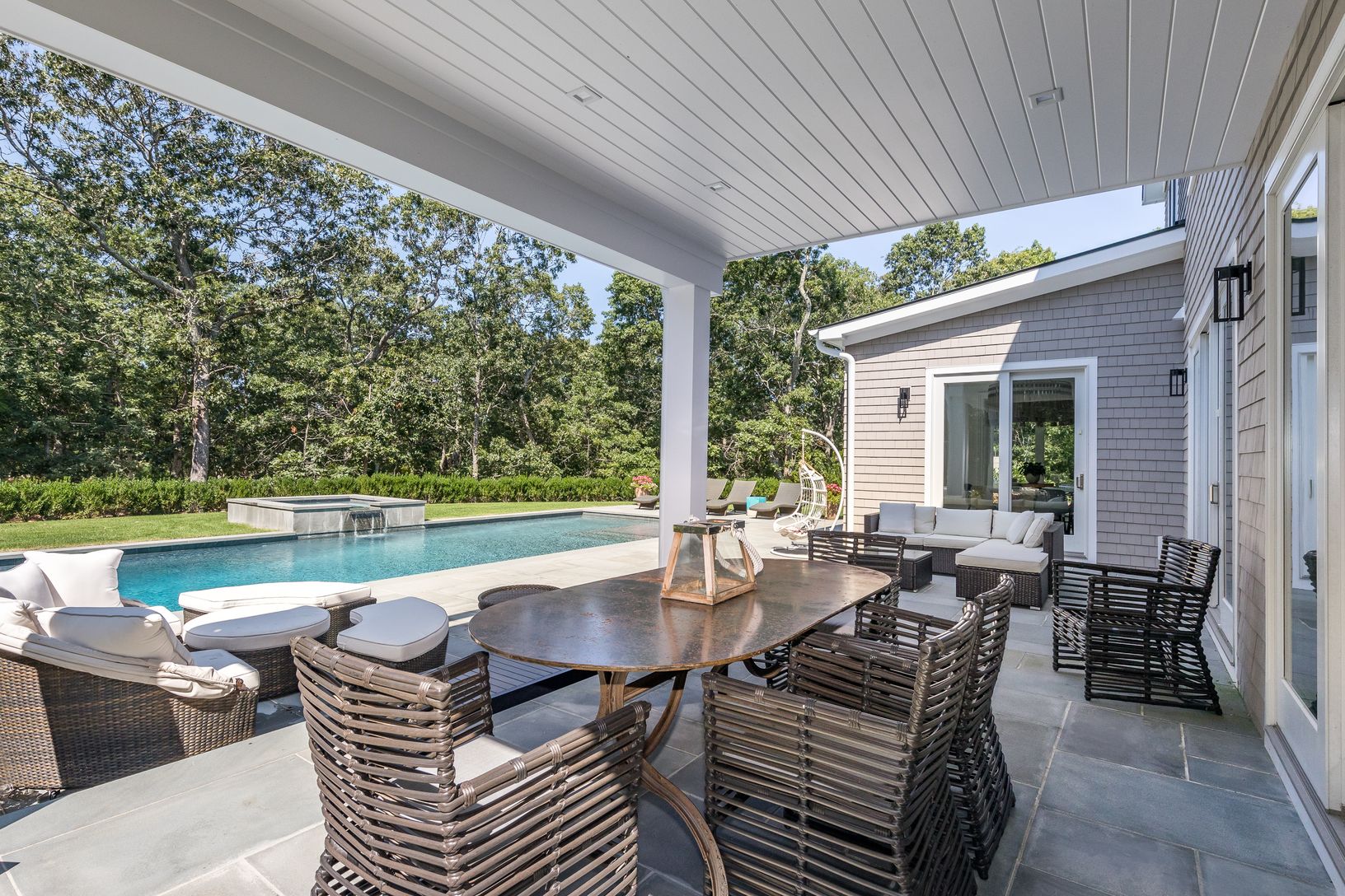 This truly gorgeous 6400 sq ft brand new home is available for a vacation rental. Located on a very quiet East Hampton Northwest with preserve to the rear of the property on a street that runs down to the water in the most scenic peaceful spot. All interiors have been designer selected and almost all of it is brand new. A grand foyer with a powder room leads to a fabulous formal dining room. Beautiful open kitchen with an alcove breakfast room
