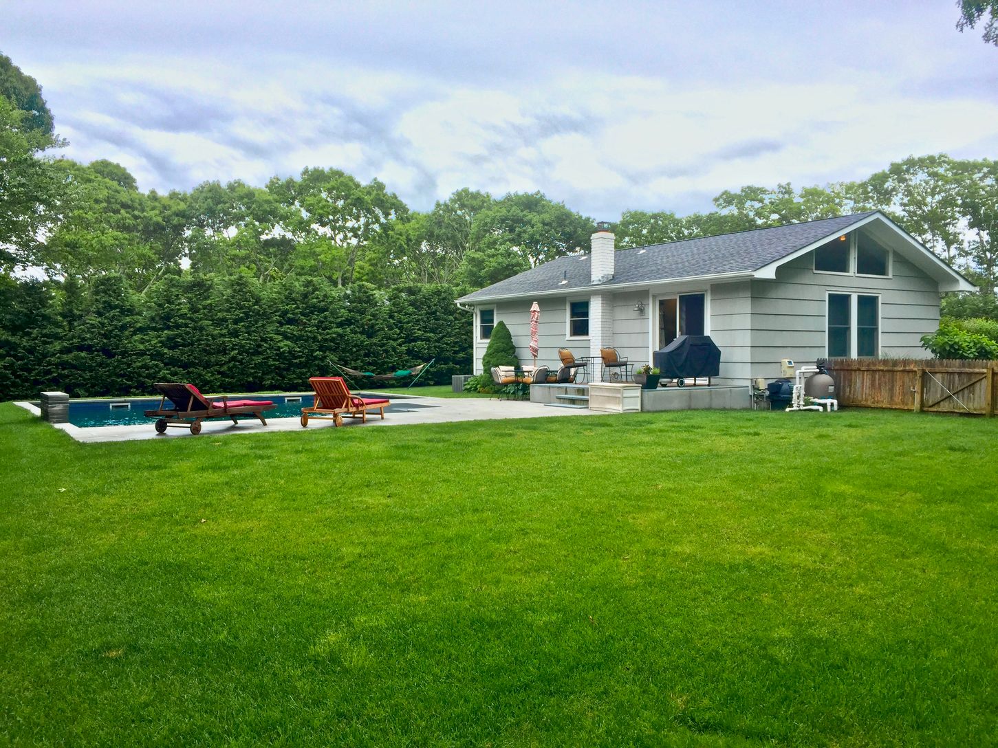 This bright and beautiful 3 bedroom, 3 bath home in Southampton has been recently renovated and is move-in ready. Some of the renovations include a new roof, new HVAC, new electric service/panel, new windows, and a new heated, gunite pool. This home also has a security system, sprinkler system, outdoor shower, and so much more! Situated on a corner lot, the property is very private with mature trees and hedges surrounding the home. Minutes fr