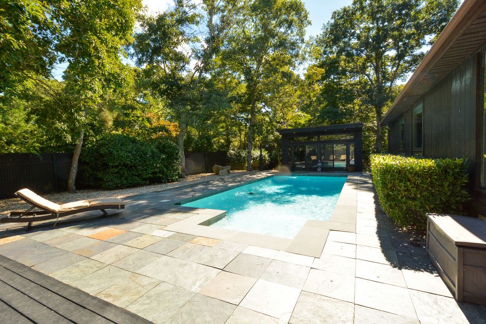Easy, comfortable living in this 3 bedroom, 3 bath home on a shy half acre, only minutes to East Hampton Village. The open design invites leisurely living, enhanced by the newly renovated kitchen with new range, dishwasher and water filtration system, the completely renovated lower level, the large deck, heated gunite pool, roomy pool house, 2-car garage and circle drive. A gas line has been added to the BBQ grill, as well a new hot water he