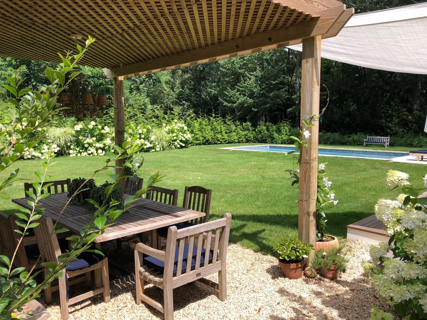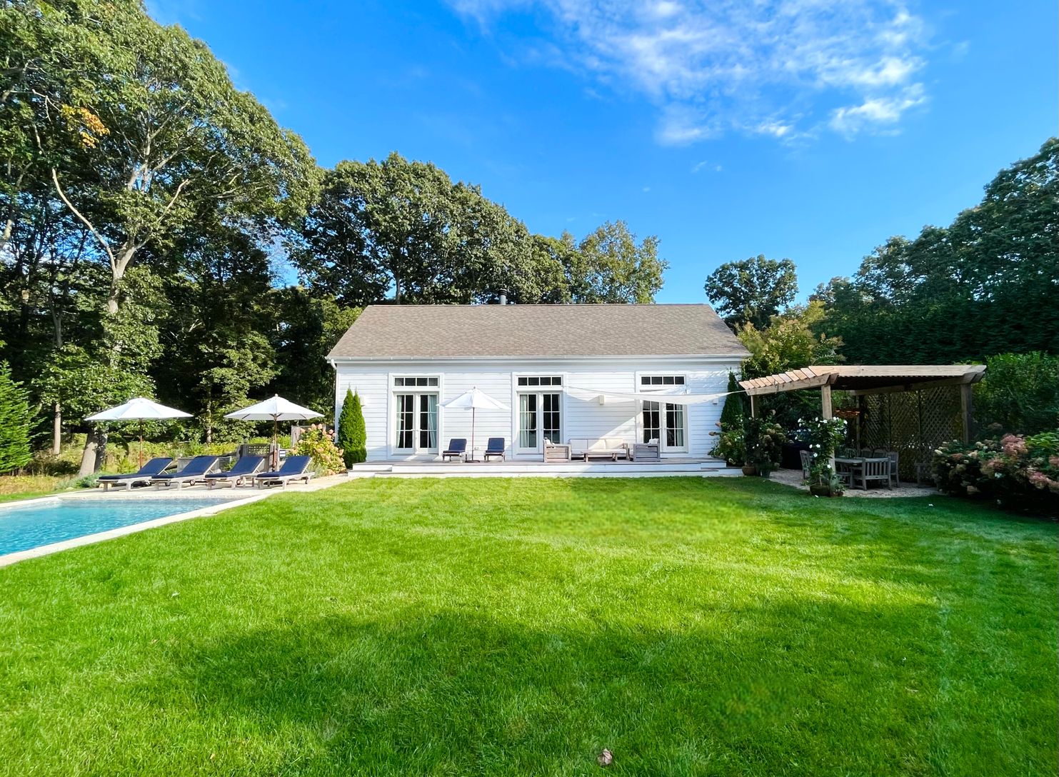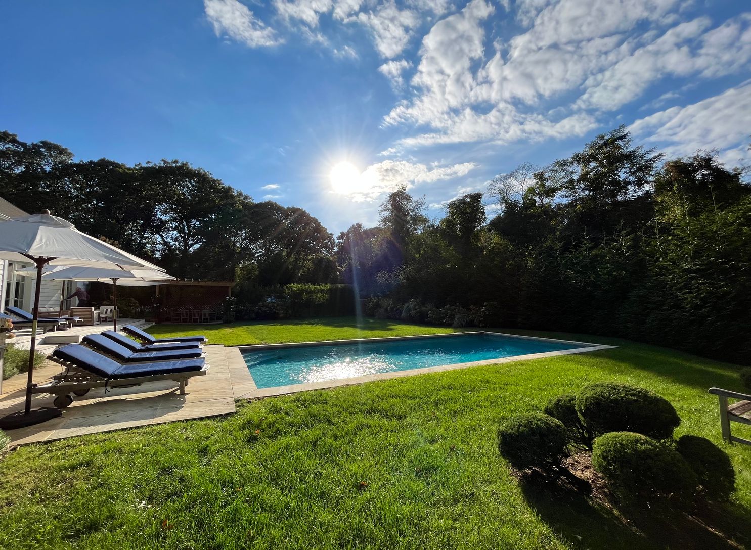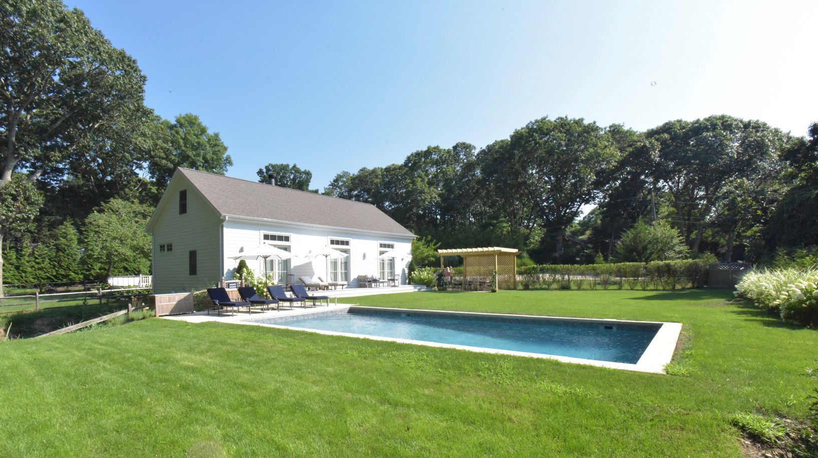 Settle in this stylish home for your summertime getaway. Recently completed in 2019 this property is just over a mile from Charming Sag Harbor Village and minutes to Serene Green farm stand, wineries and long beach. Surrounded by lush landscaping, set on one acre and facing a preserve, privacy and convenience await. Lovely heated Pool, limestone terrace a spacious deck and dining pergola allow
