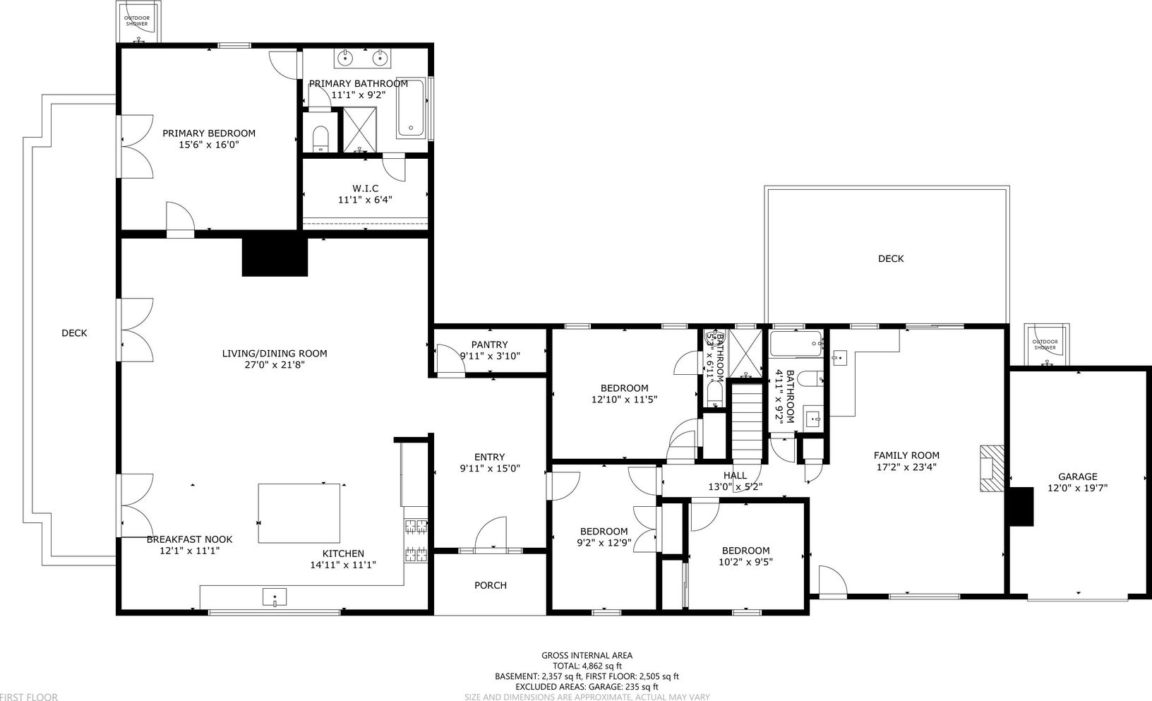 Breakfast area, Exercise room, Family room/den, Great room, In-law suite/private guest quarters, Laundry room, Office
