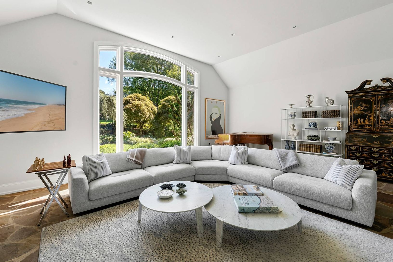 This South of the Highway estate has everything in place for a luxurious and private Hamptons escape. Secluded at the end of a long flag lot drive and set on an expansive 4.6-acre parcel, the property unfolds like your own personal resort. Mature, manicured plantings create natural privacy and a sense of timeless beauty, surrounding a full basketball court, a separate tennis court, and curated outdoor living areas designed for recreation, rela