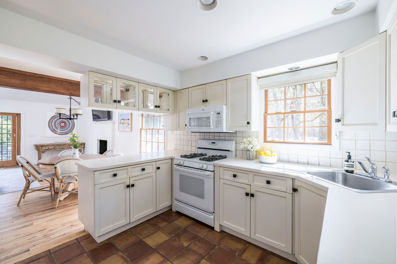 Floors: Hardwood, Tile