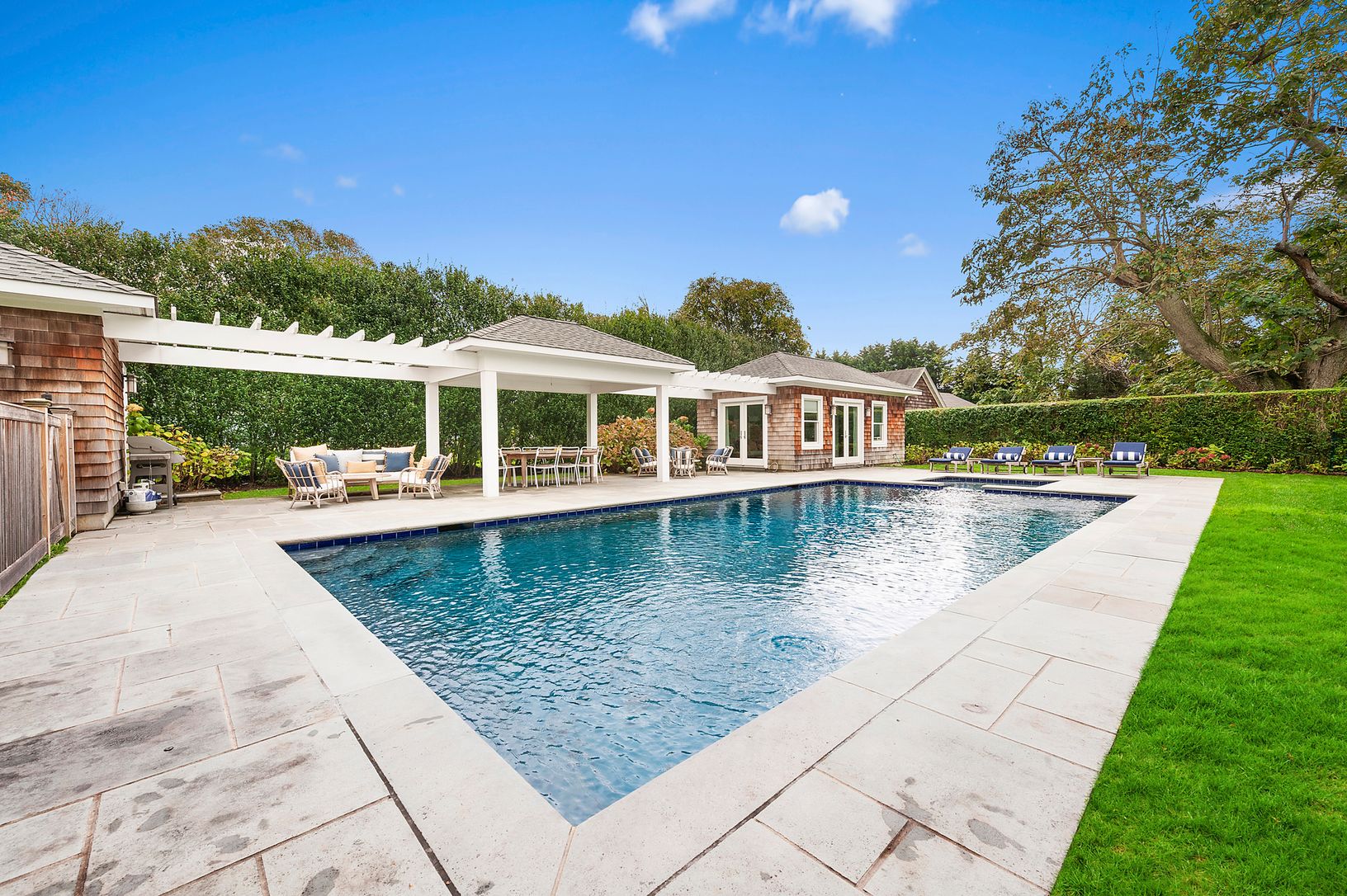 MUST SEE Village shingled cottage with new pool house and pergola, a charming and pristine classic with numerous possibilities. This beautifully maintained home has all new windows and brand new appliances, including a Viking stove, features three bedrooms, 2 baths, a formal living room with fireplace, dining room, plus a brand new, fully renovated kitchen. Ideal for enjoying summer days, outdoor amenities include, a heated gunite pool, separa