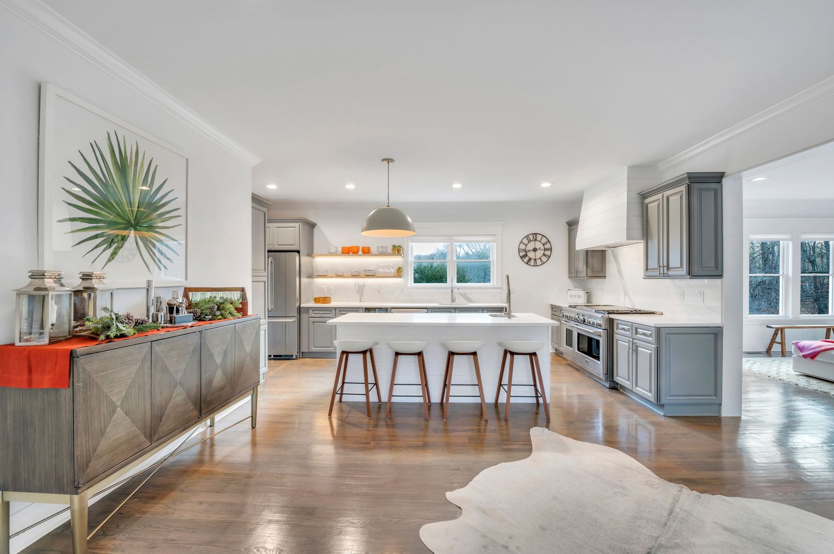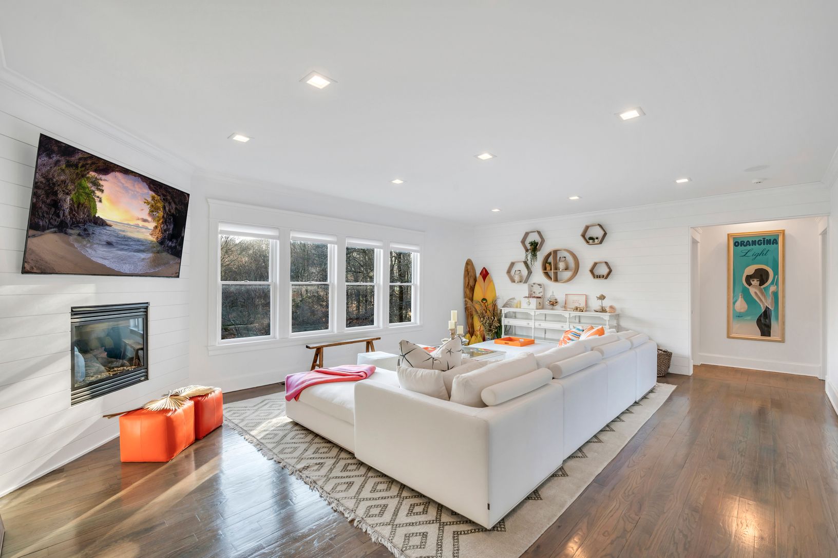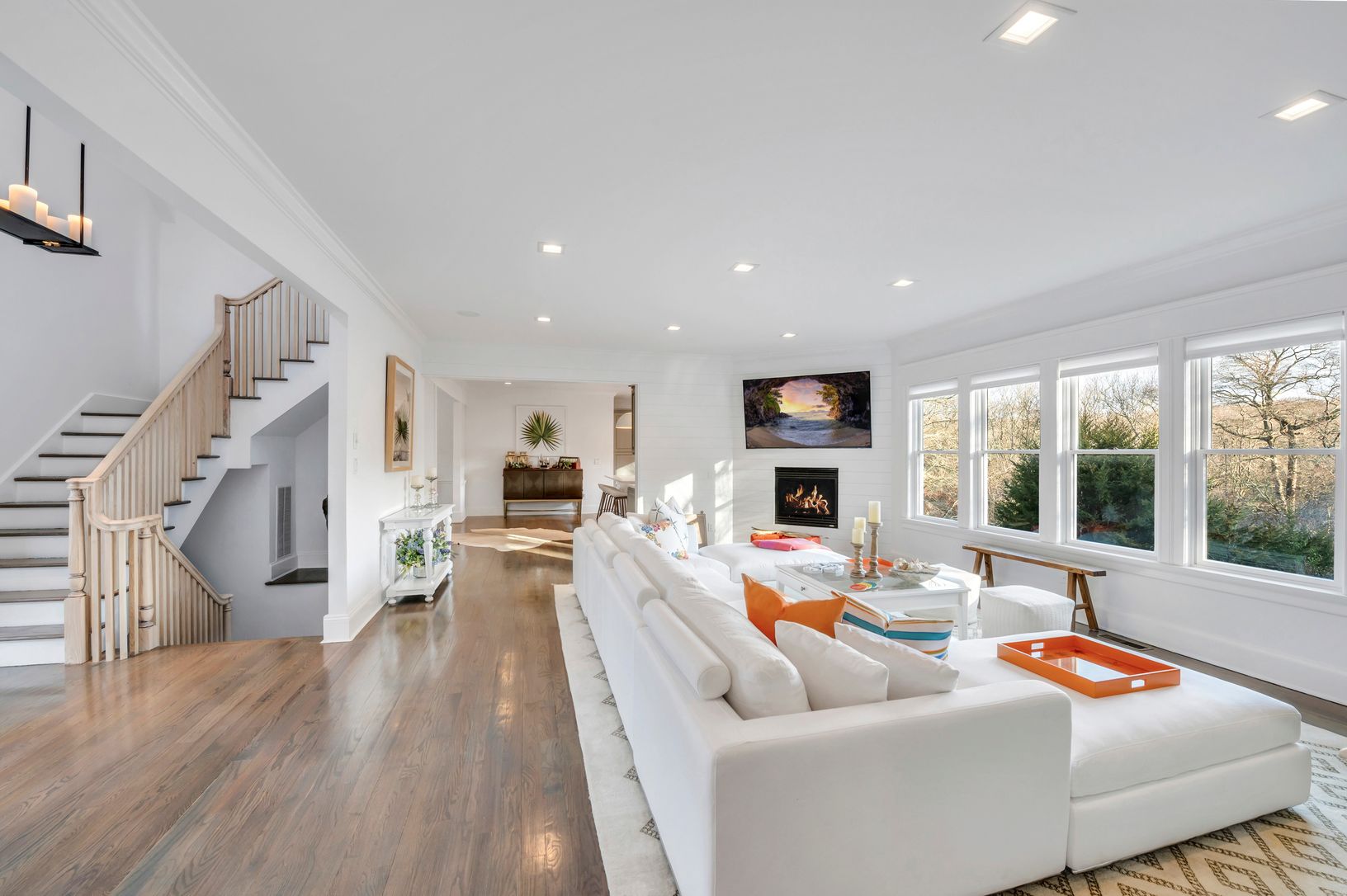 Step inside and marvel at the open concept floor plan. The truly spacious and airy interior features a huge living room with TV and fireplace for maximum coziness, a formal dining area, a modern kitchen to whip up delicious meals,