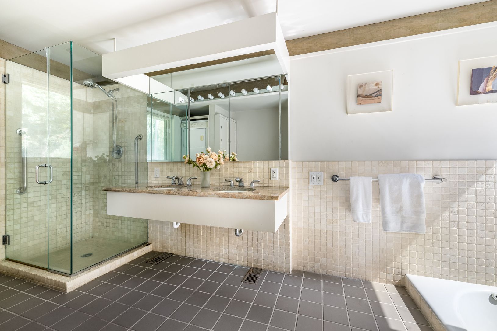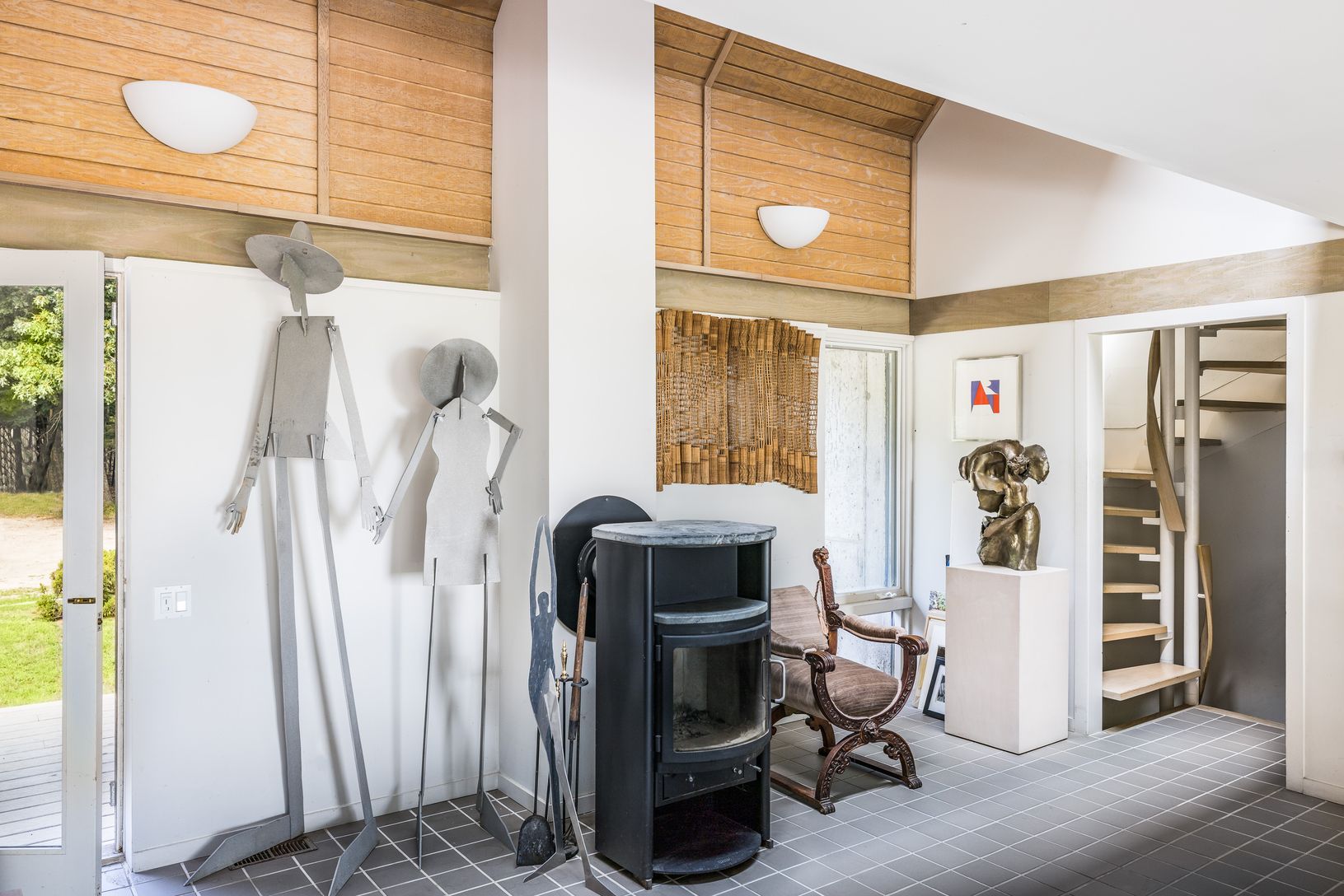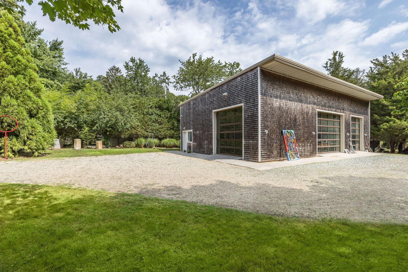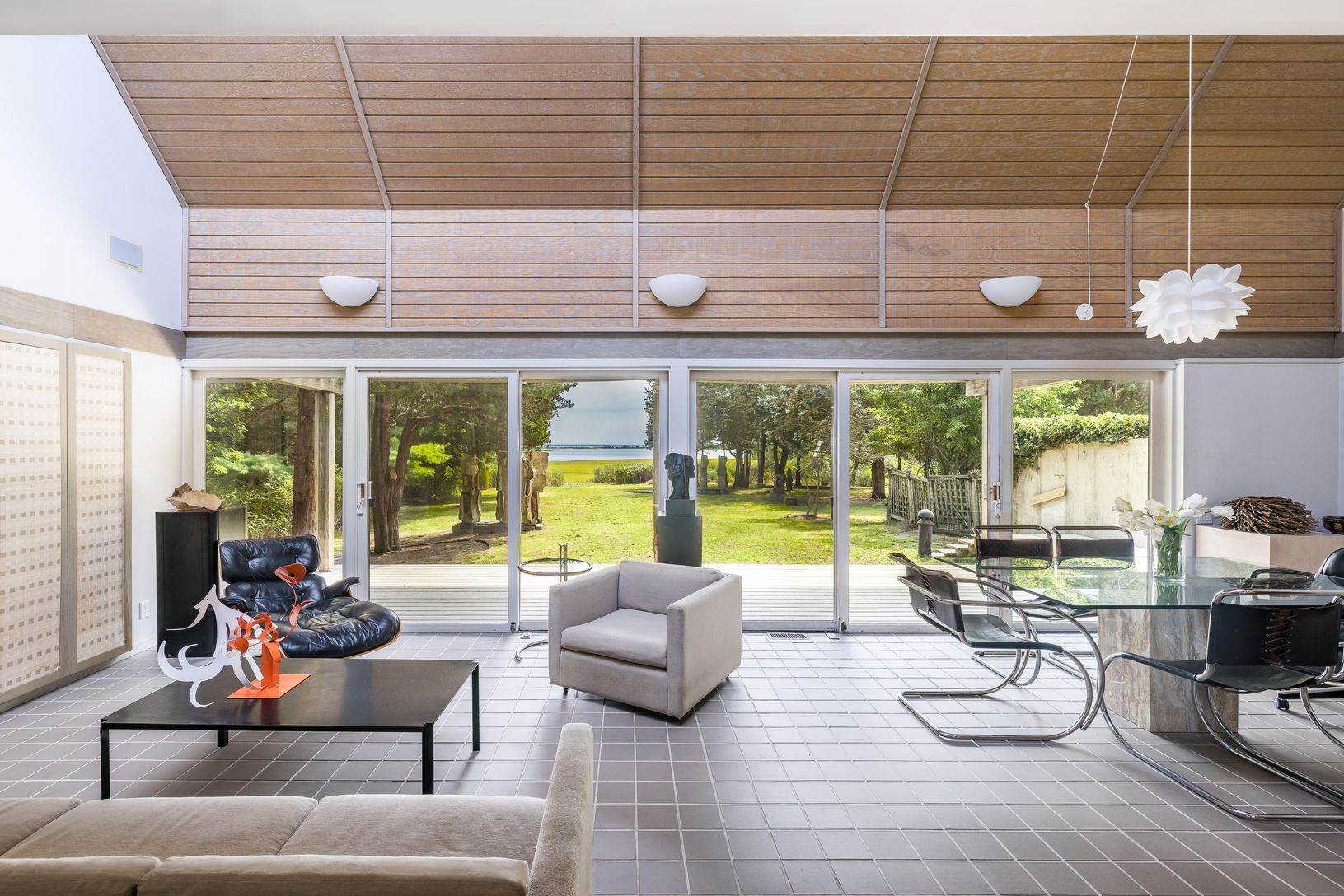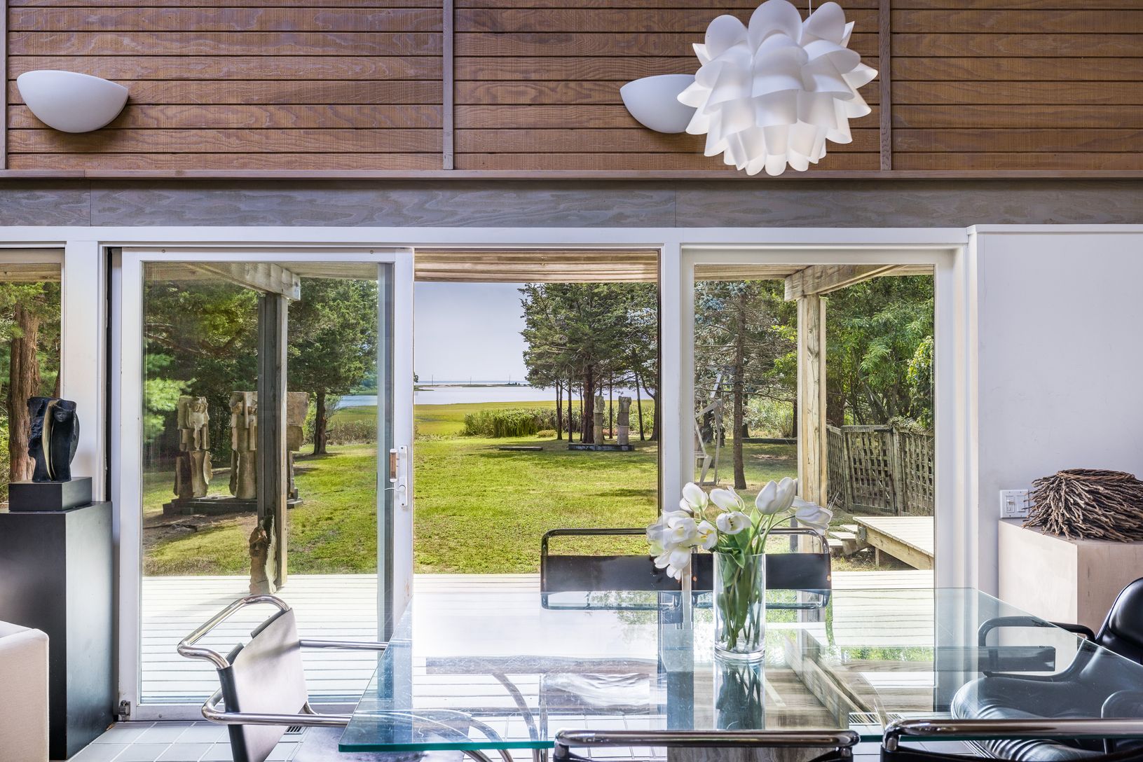 Inspiration abounds at this rare waterfront artist's home and studio compound with waterside pool on nearly three acres, in the heart of historic Springs. Designed by noted architect Charles Forberg (architect of Long House in East Hampton & son-in-law of Walter Gropious, master of The Bauhaus School), the main house has a Norman Jaffee meets Japanese vibe, with pitched rooflines and a modern and stylish feel in cedar shake and poured conc