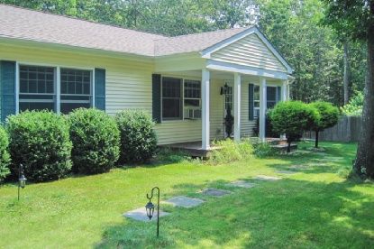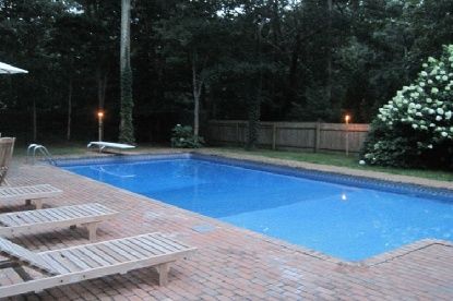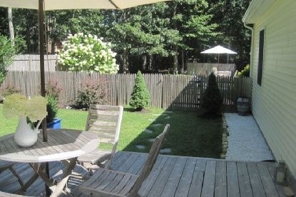 Rental Registration #: 16-981 About 3 +/- miles to East Hampton Village, this well-appointed one level home offers three bedrooms (two with queen beds, one with a futon) and two bathrooms. The kitchen has an eat-at counter and there is a dining room. The yard is fully enclosed with stockade fencing and has lawn, a pool with brick deck, a wood deck and dining patio..