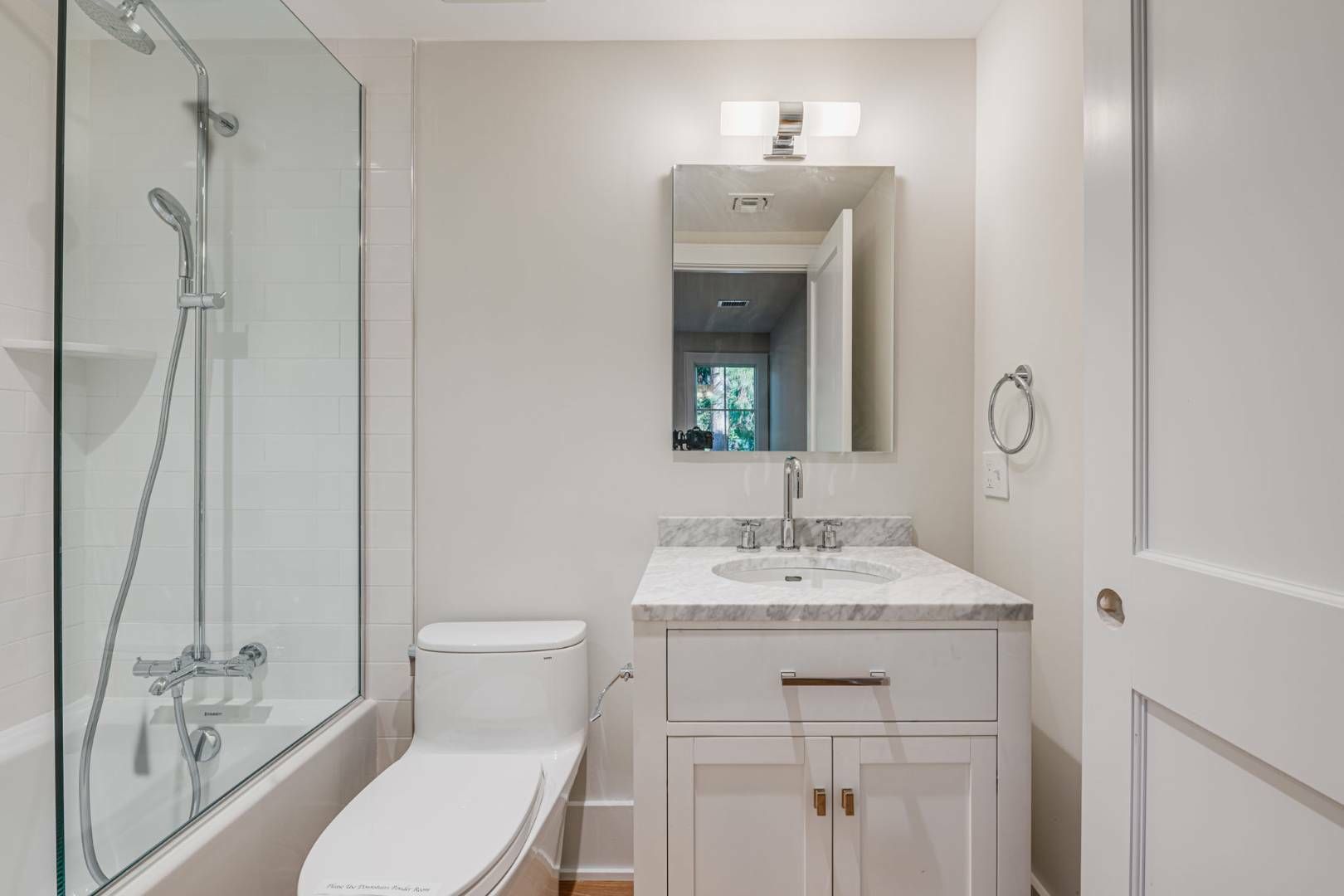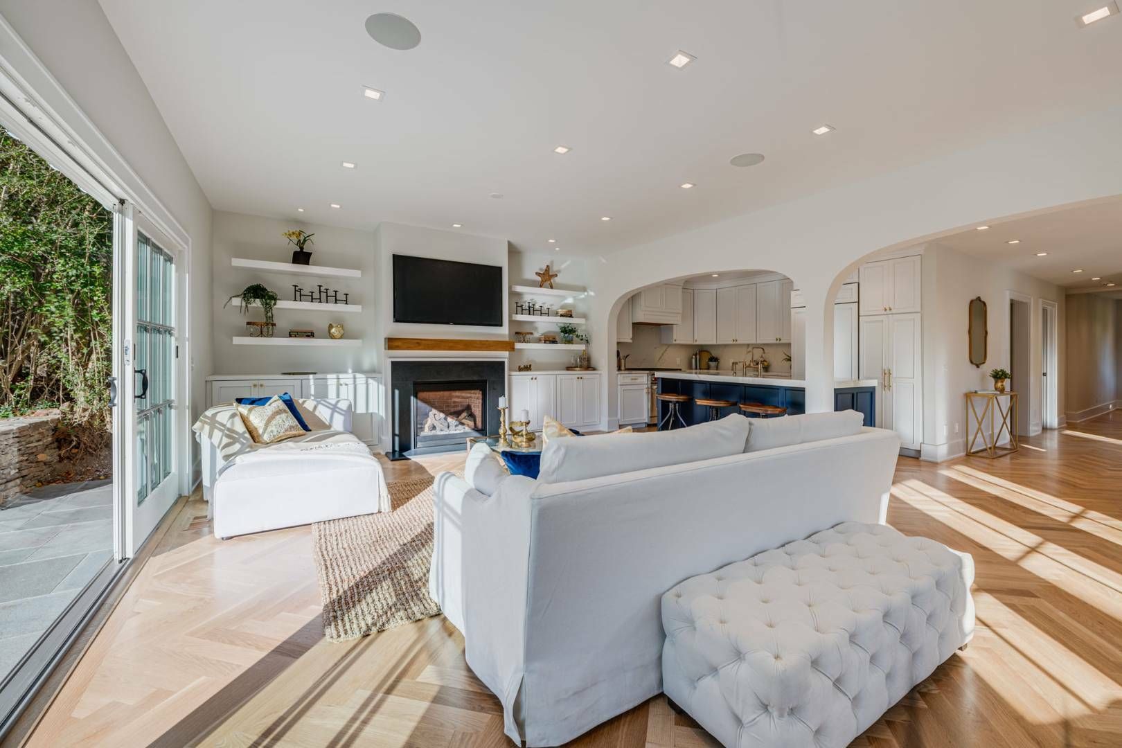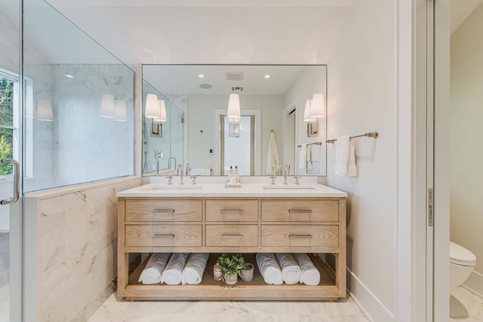 Discover this completely restored traditional and light-filled home that's conveniently located down the road from all Southampton Village has to offer. The crisp, clean design is natural wood and whites with white trim, both indoors and out, with naturally finished white oak herringbone flooring throughout the house. There are four bedrooms on two floors, all en suite, 3 with glass enclosure showers and one with a bathtub. Enter the foyer to