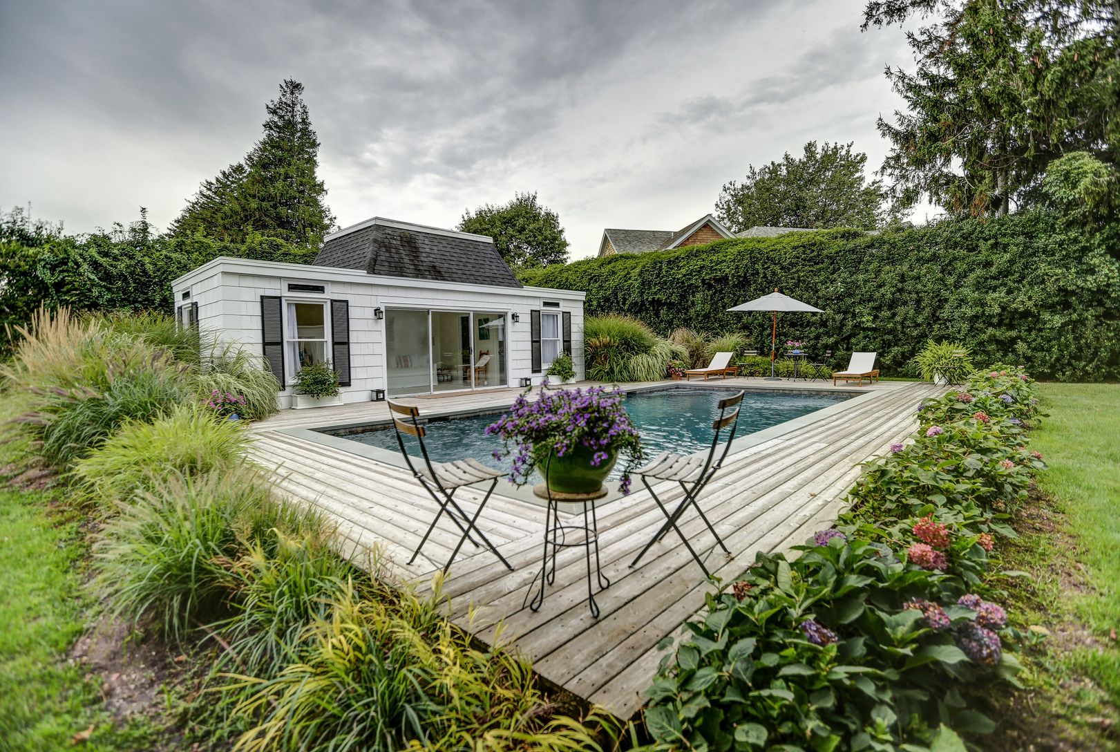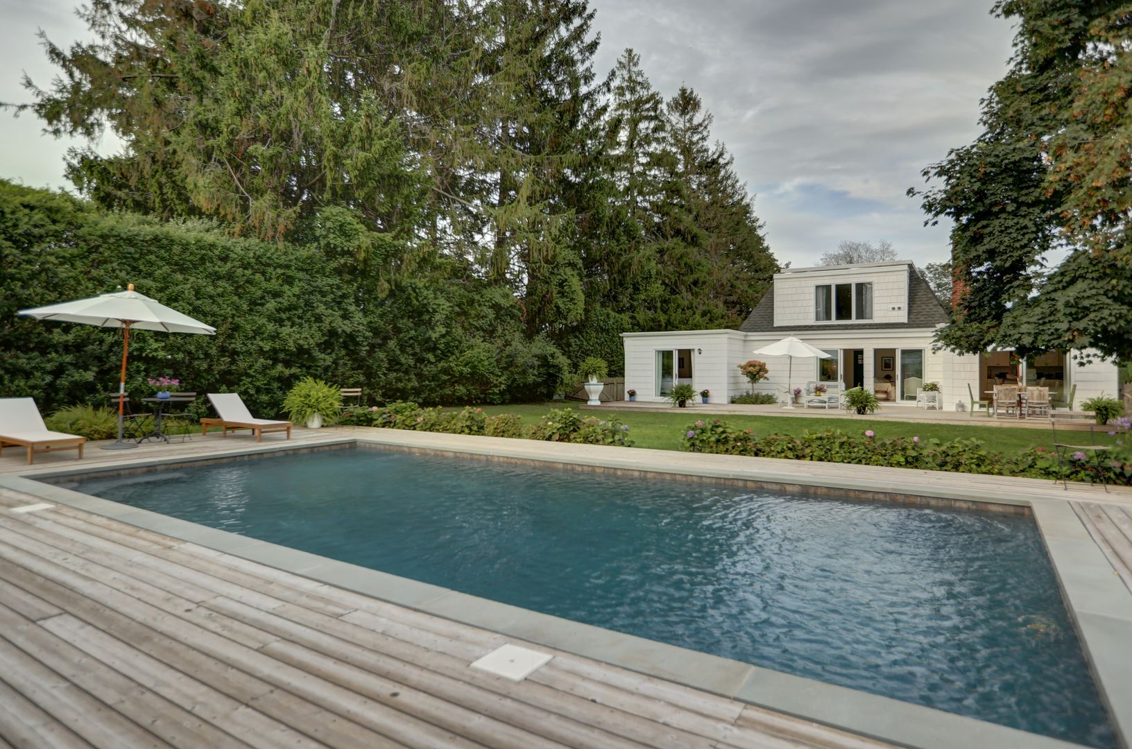 This classic Mansard is just a few blocks from the famous ocean beaches or the lovely village shops and restaurants. Recently refreshed and sitting handsomely on this sunny and spacious 1/2-acre lot. Included is a beautiful Gunite pool and pool house with full bath. The home offers an open floor plan plus two master suites, an additional guest bedroom and den that could be a fourth bedroom in a pinch. There are two spacious decks and plenty of
