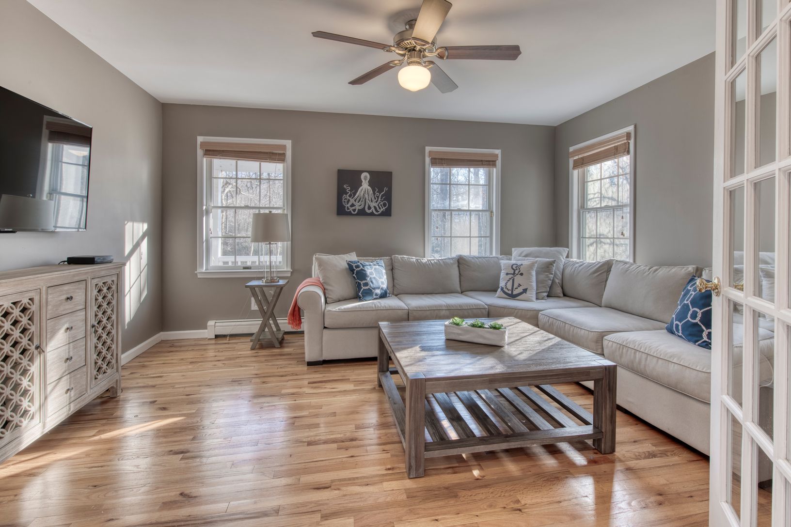 Located just minutes from Sag Harbor Village and picturesque beaches, this mint-condition Traditional Hamptons is a must-see. Conveniently situated on a quiet acre in the desirable Northside Hills community and offering 4 bedrooms, 3 bathrooms and a heated pool in the beautifully landscaped yard with newly built mahogany decking, this home is the ideal summer-retreat or year-round living. The first floor has an open floor plan, double-height c