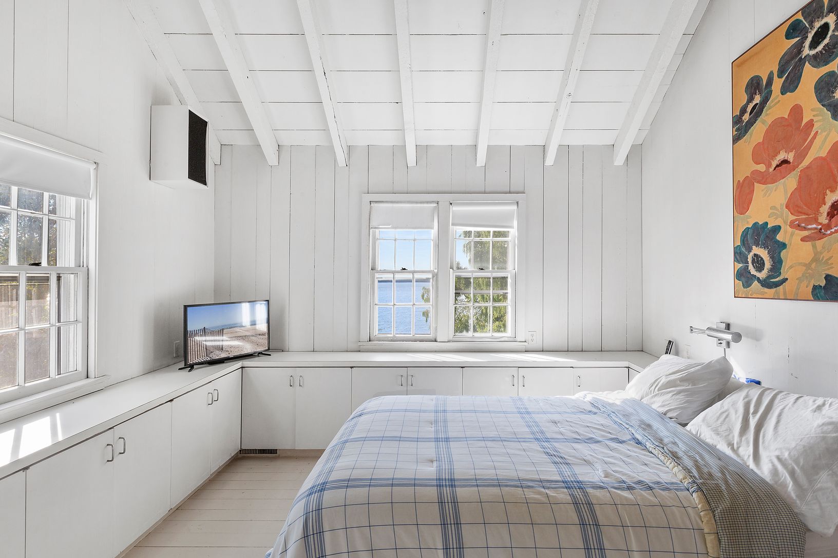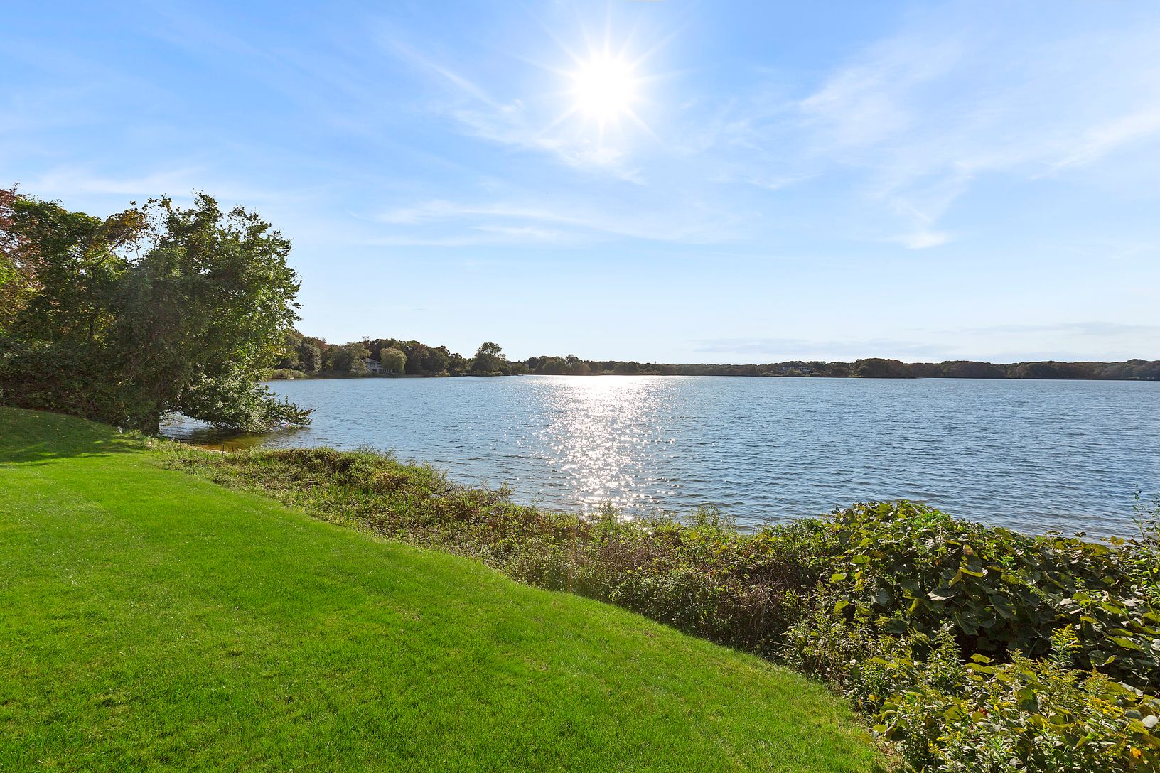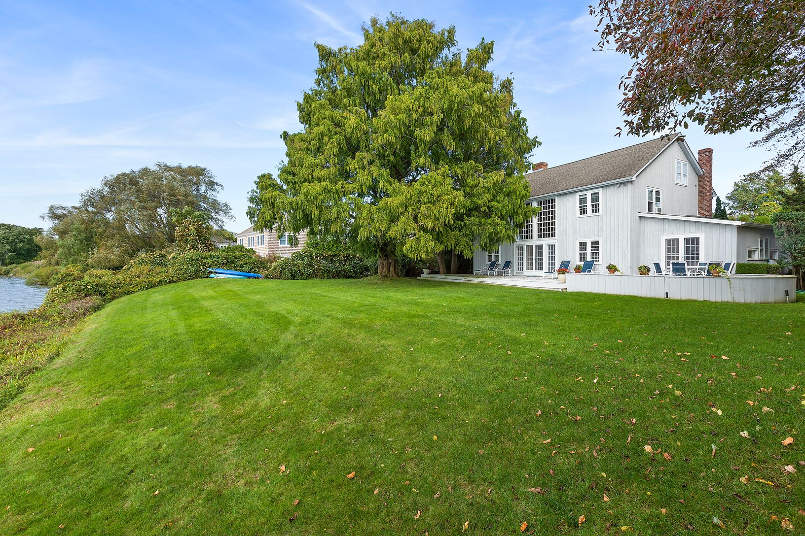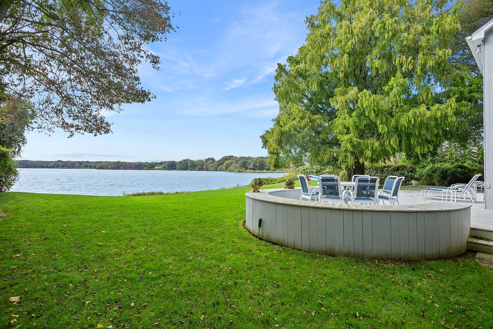 This four bedroom three bath farmhouse is situated on Mill Pond and just a few minutes from Water Mill village. The house sits on half an acre with expansive water views and a picturesque backyard to watch the sunset. The interior features include exposed natural beams throughout and double-height ceilings; allowing all day natural light to pour in the main living space. The first floor is an open layout with kitchen, dining area and living ro
