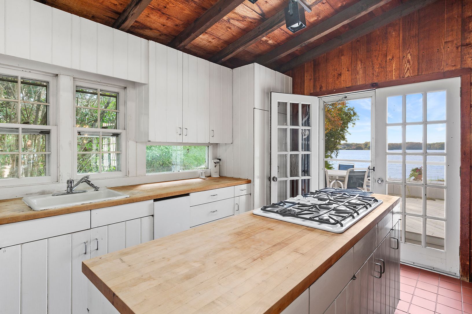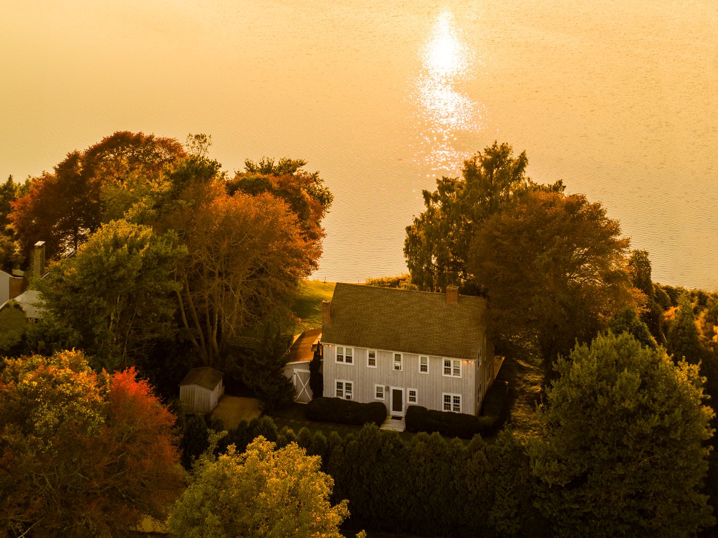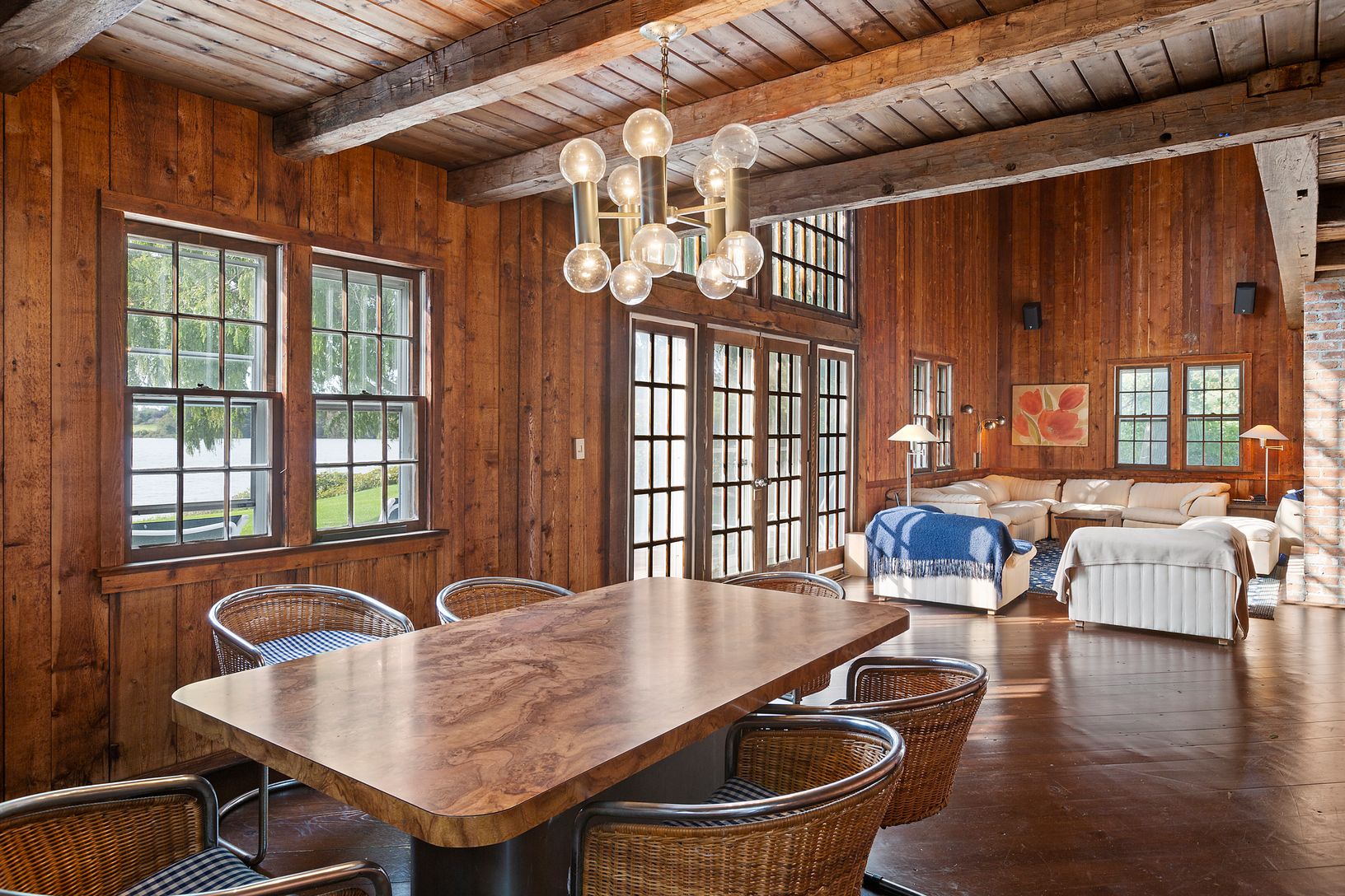 This four bedroom three bath farmhouse is situated on Mill Pond and just a few minutes from Water Mill village. The house sits on half an acre with expansive water views and a picturesque backyard to watch the sunset. The interior features include exposed natural beams throughout and double-height ceilings; allowing all day natural light to pour in the main living space. The first floor is an open layout with kitchen, dining area and living ro