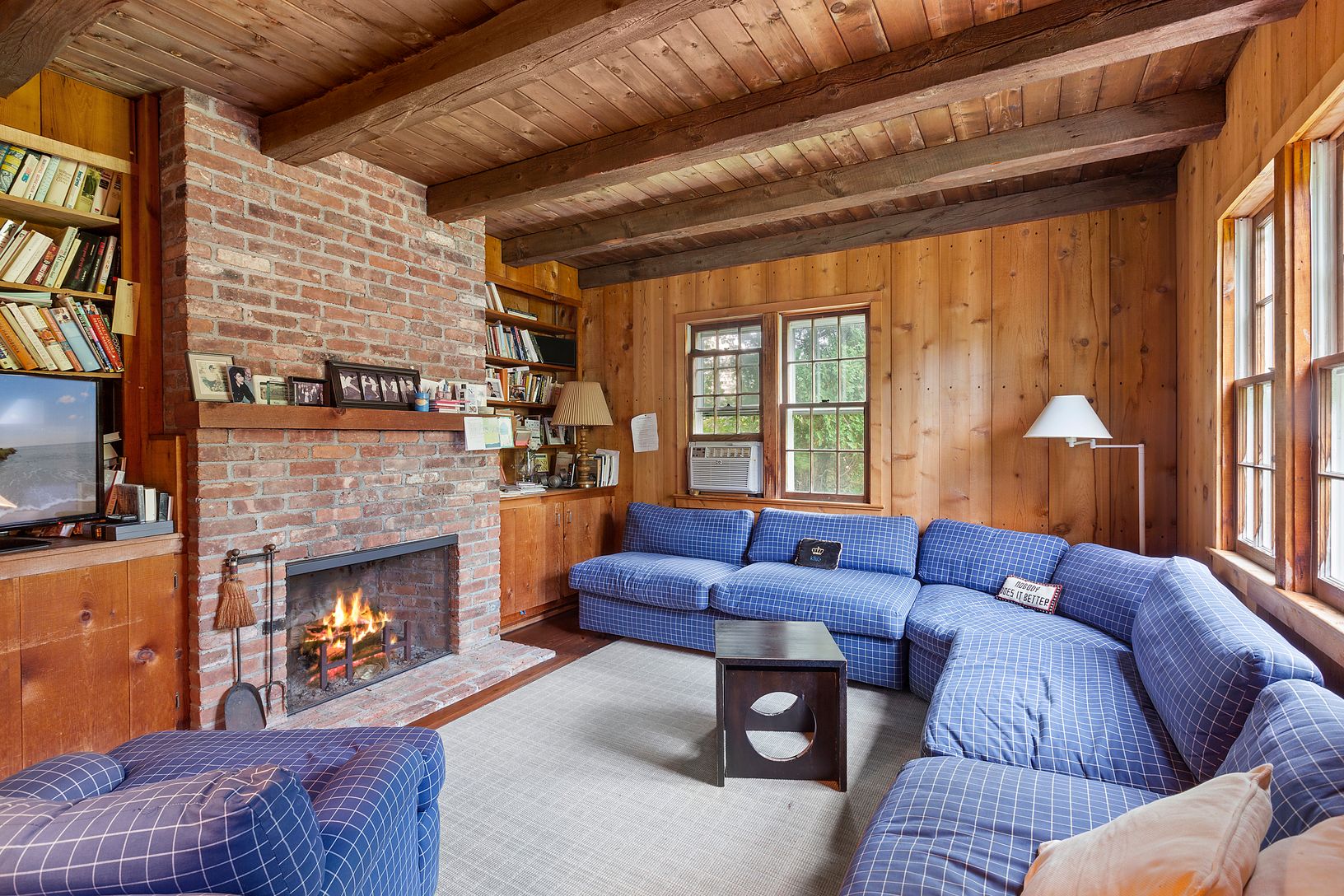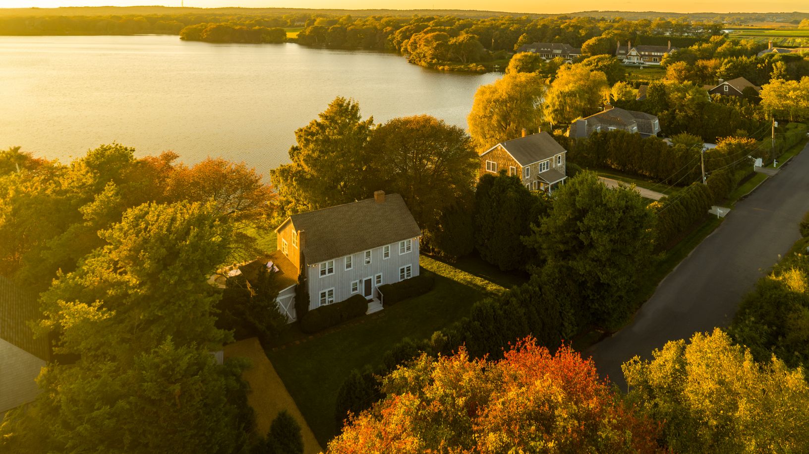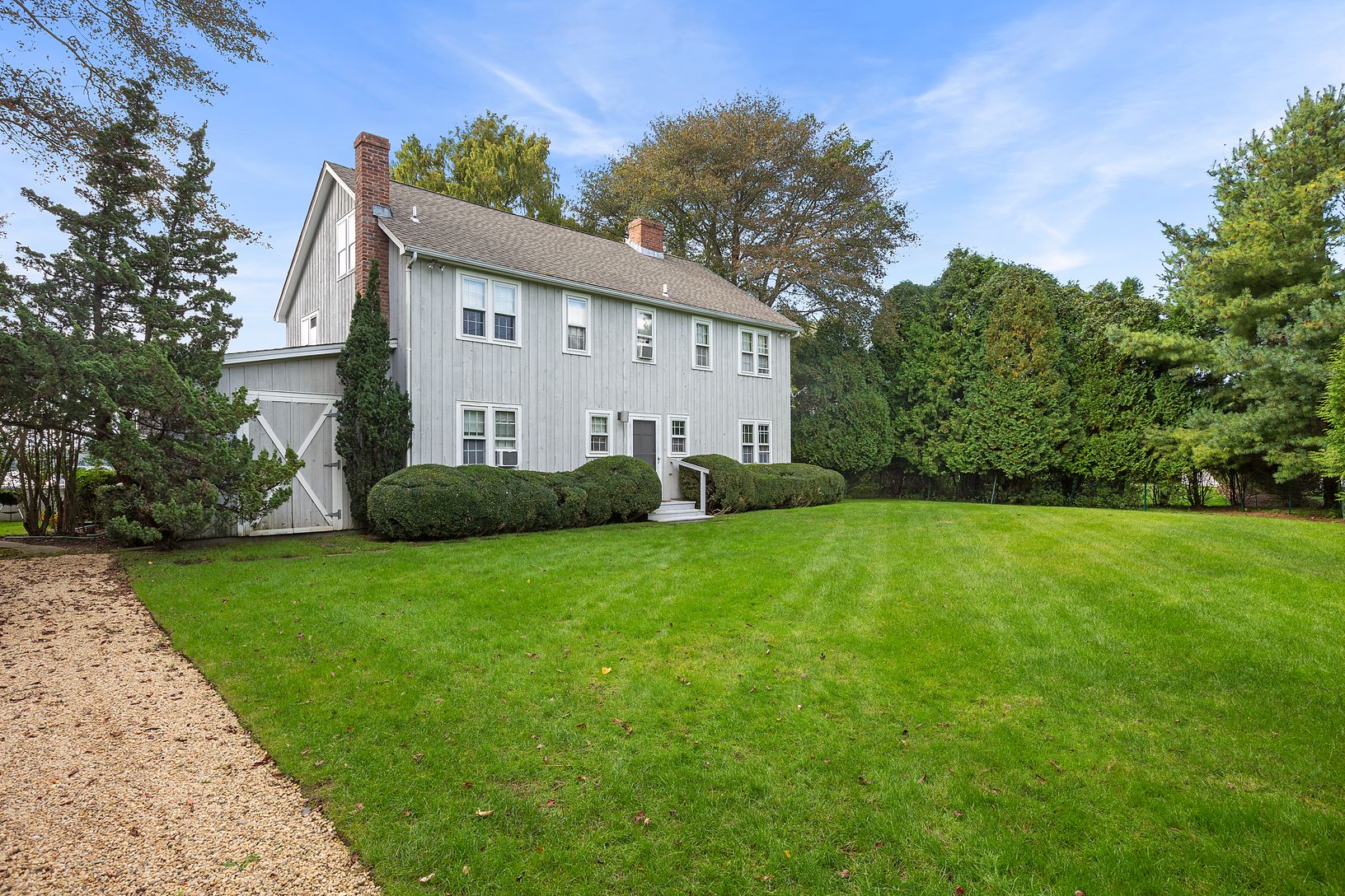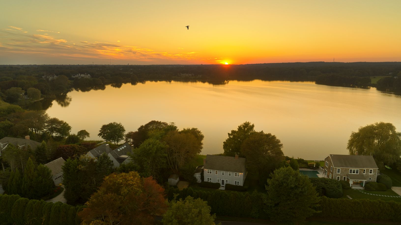 This four bedroom three bath farmhouse is situated on Mill Pond and just a few minutes from Water Mill village. The house sits on half an acre with expansive water views and a picturesque backyard to watch the sunset. The interior features include exposed natural beams throughout and double-height ceilings; allowing all day natural light to pour in the main living space. The first floor is an open layout with kitchen, dining area and living ro