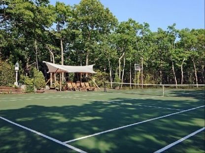 At the end of a private 2000 foot driveway, automatic gates open to this unique 8.4 acre Sagaponack compound. Outdoor features include: private tennis and basketball court, 50 foot gunite infinity edge pool with waterfall and 12 seat spa, a 2,000 square foot outdoor playground, 40 foot custom outdoor kitchen with two grilling stations, sink, refrigerator and wok station, an outdoor covered pit lounge with two HD TV's, and a 100,000 gallon Koi