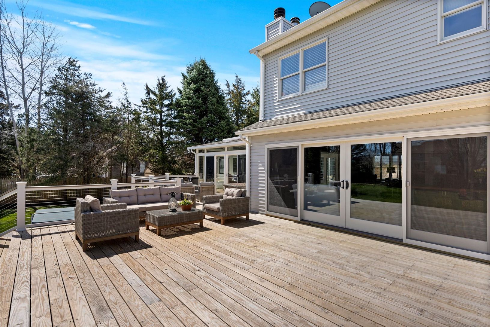 This stunning 3-bedroom home offers the perfect blend of comfort and contemporary style. Enjoy a completely remodeled first-floor living experience with a spacious primary bedroom featuring its own en-suite bathroom. An additional updated guest bath provides convenience for you and your visitors. Unwind and entertain in style with expansive 16' sliding glass doors leading from the kitchen to a beautiful updated deck (2023). Imagine seamless in