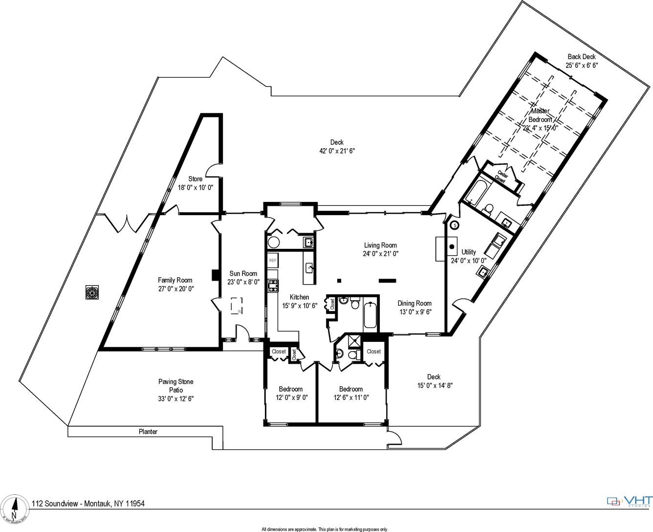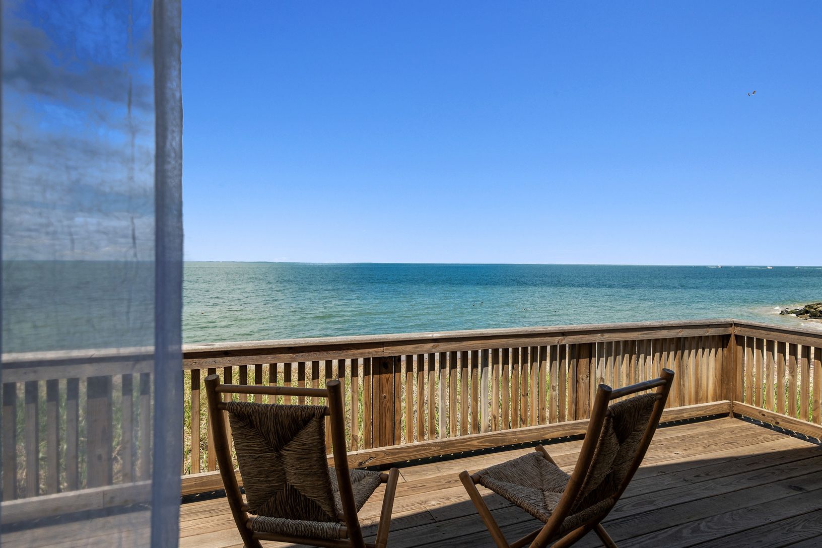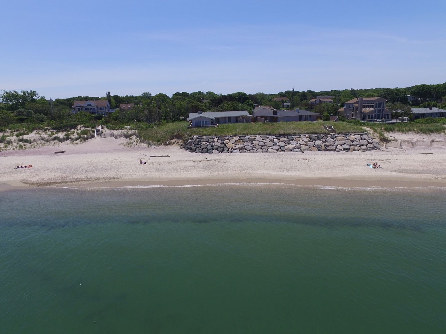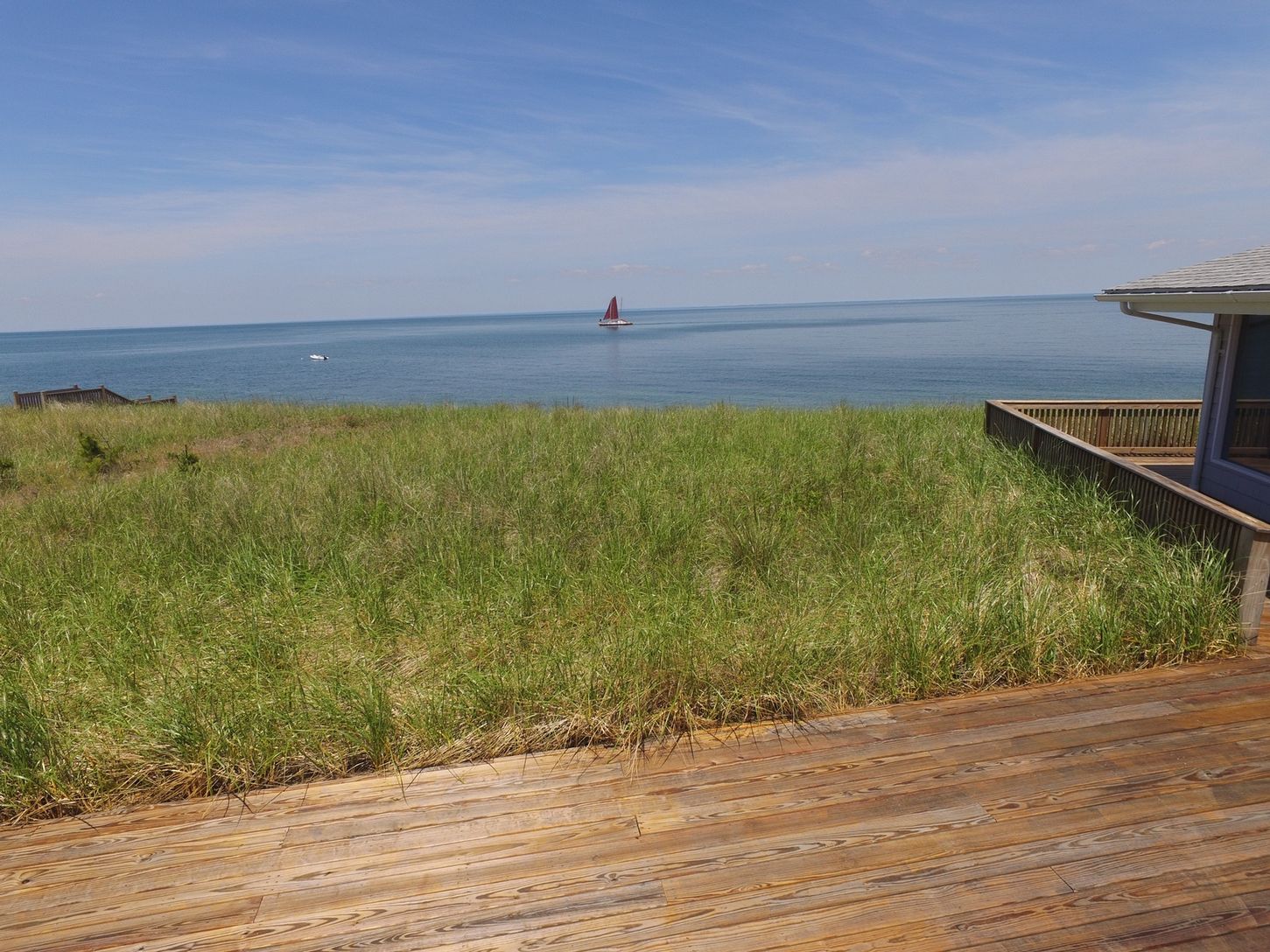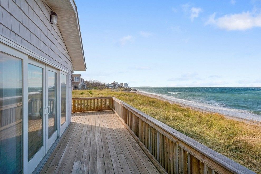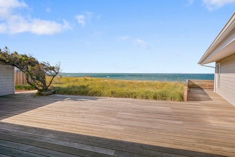 Tucked away at 112 Soundview Drive in a quiet Montauk beach community, this single story 4 bedroom, 3 bath waterfront home features sweeping panoramic views over Block Island Sound as well as breathtaking sunset vistas. Sitting safely on a .77 acre knoll, this newly bulk headed property boasts a garden of swaying beach grass, expansive mahogany decking and its own private sandy beach. The main living area features an open kitchen/living room