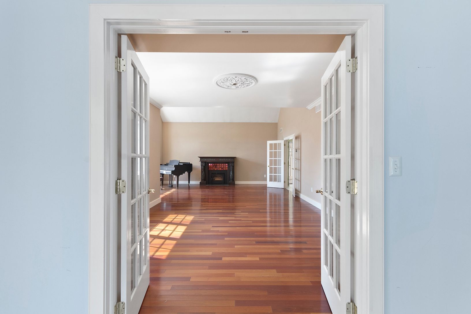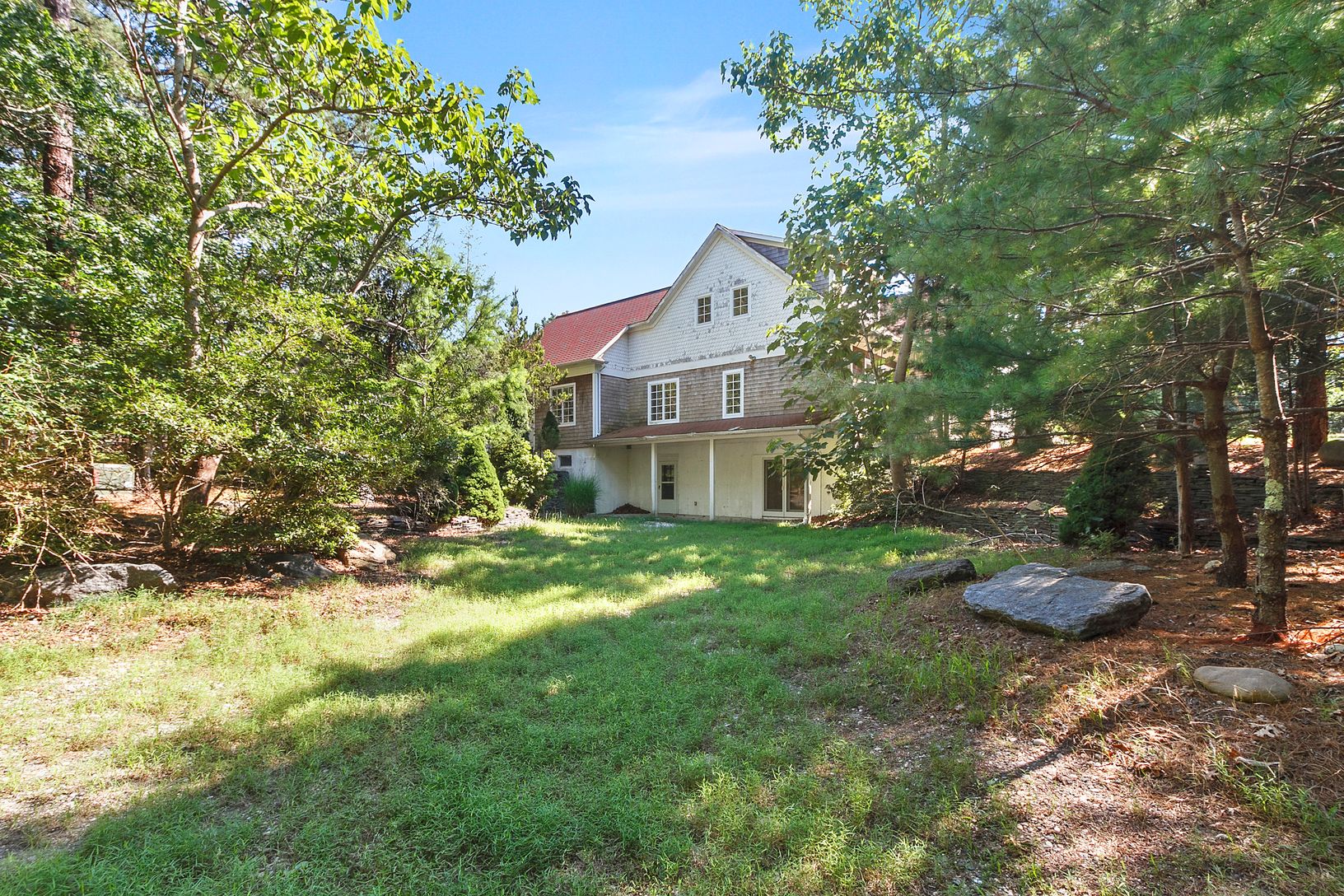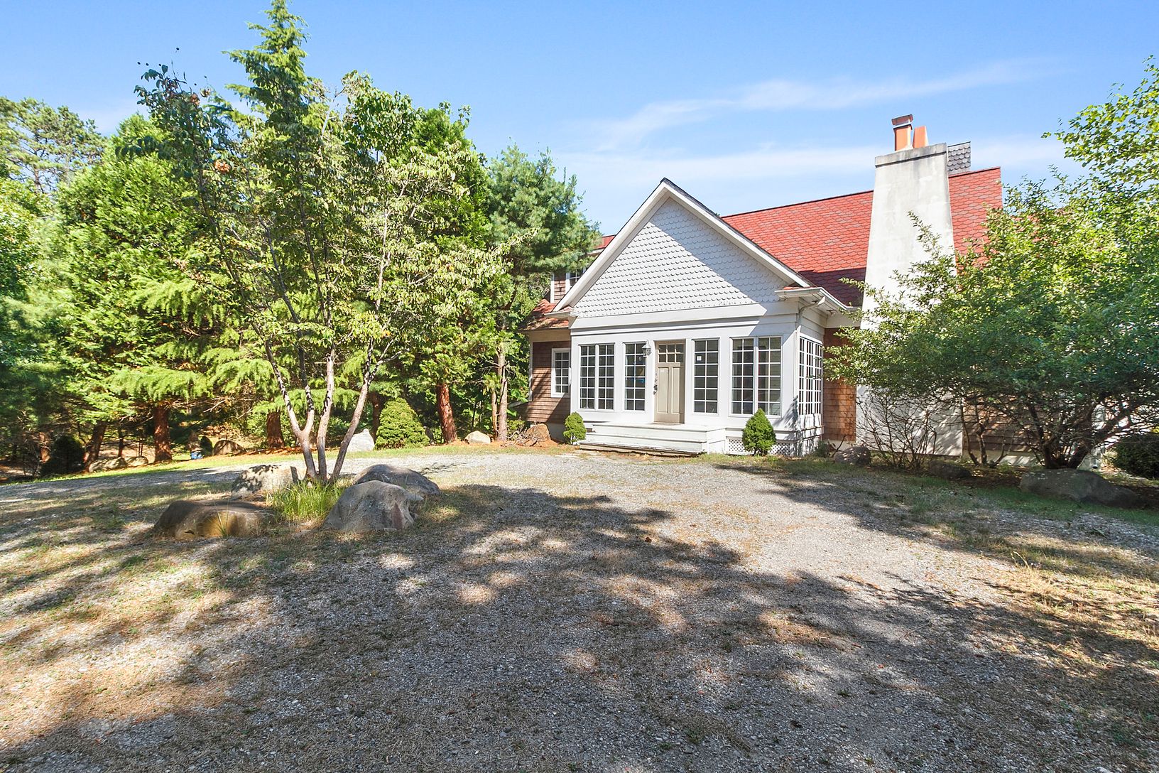 Nestled down a long and winding driveway sits this well-appointed, five-bedroom, five-bath traditional home. A superbly tranquil and private property on 7.12+/- sprawling acres; a rare amount of land in a beautiful and natural setting. This spacious home was built in 2001 and offers 4,000+/- sf of living space, including a first floor with an open flow, light-filled living room with a cozy fireplace and high, cathedral ceilings. The den featur