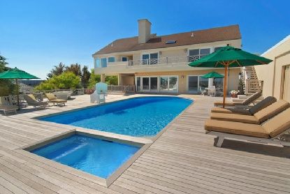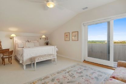 A truly magnificent residence lies hidden off of Dune Road, down a gated driveway. This 5,000 sq. ft. stucco home may be a contemporary on the outside but its interior has been renovated to have a warm, traditional look and feel. Featuring 360 degree views, this home is encompassed by approximately 6,000 ft. of expansive decking that surrounds the perimeter for exquisite bay and ocean views. There is also a boardwalk down to the beach with 1