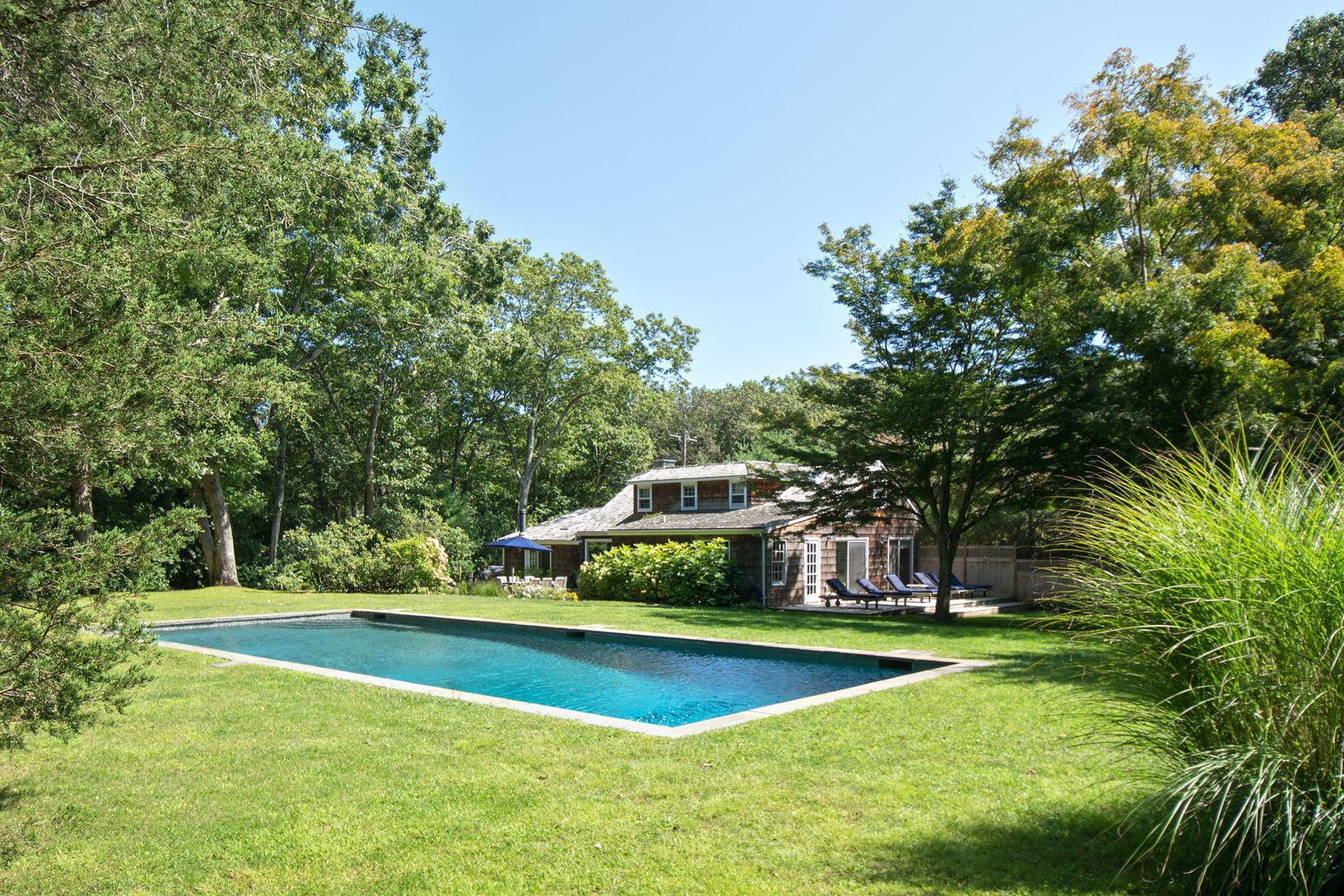 Enjoy easy access to the water only 1600 feet away, where you can spend lazy afternoons reading a good book, take peaceful walks along the sandy shore, or go boating out on Gardiner's Bay. This charming four bedroom shingled traditional of over 2200 s.f. is well sited on .80 acres of landscaped privacy with heated gunite pool (16'x44') adjacent to a 39 acre reserve to the south and reserves to the west and north. With room to grow, zoning wil