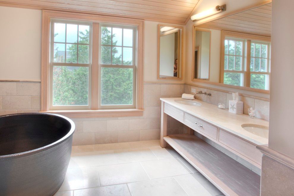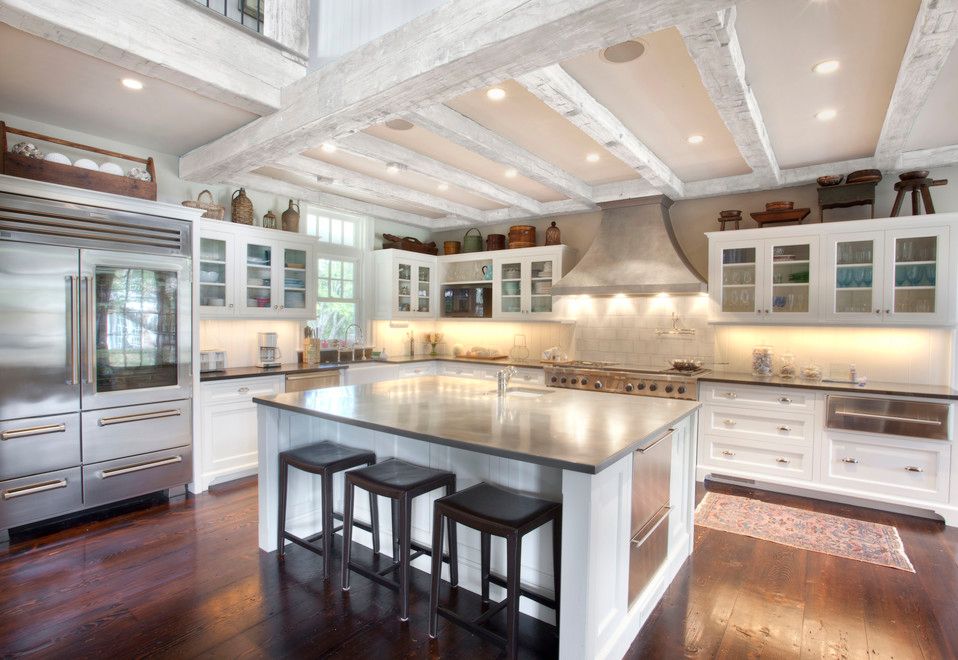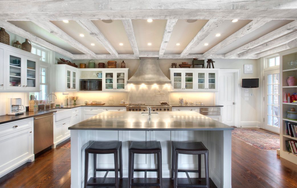 Less than a mile from the ocean at Sagg Main Beach, this South of the Highway traditional will impress even the most discerning buyer. On a private lane, sited on an acre of land and built by notable builder Michael Davis this 6,500 sq. ft. traditional has ocean and pond views. The soaring ceiling reaches close to 28 feet, with beautiful hand hewn barn beams, and dramatic windows. Along with the barn beams, the antique wood floor blends sea