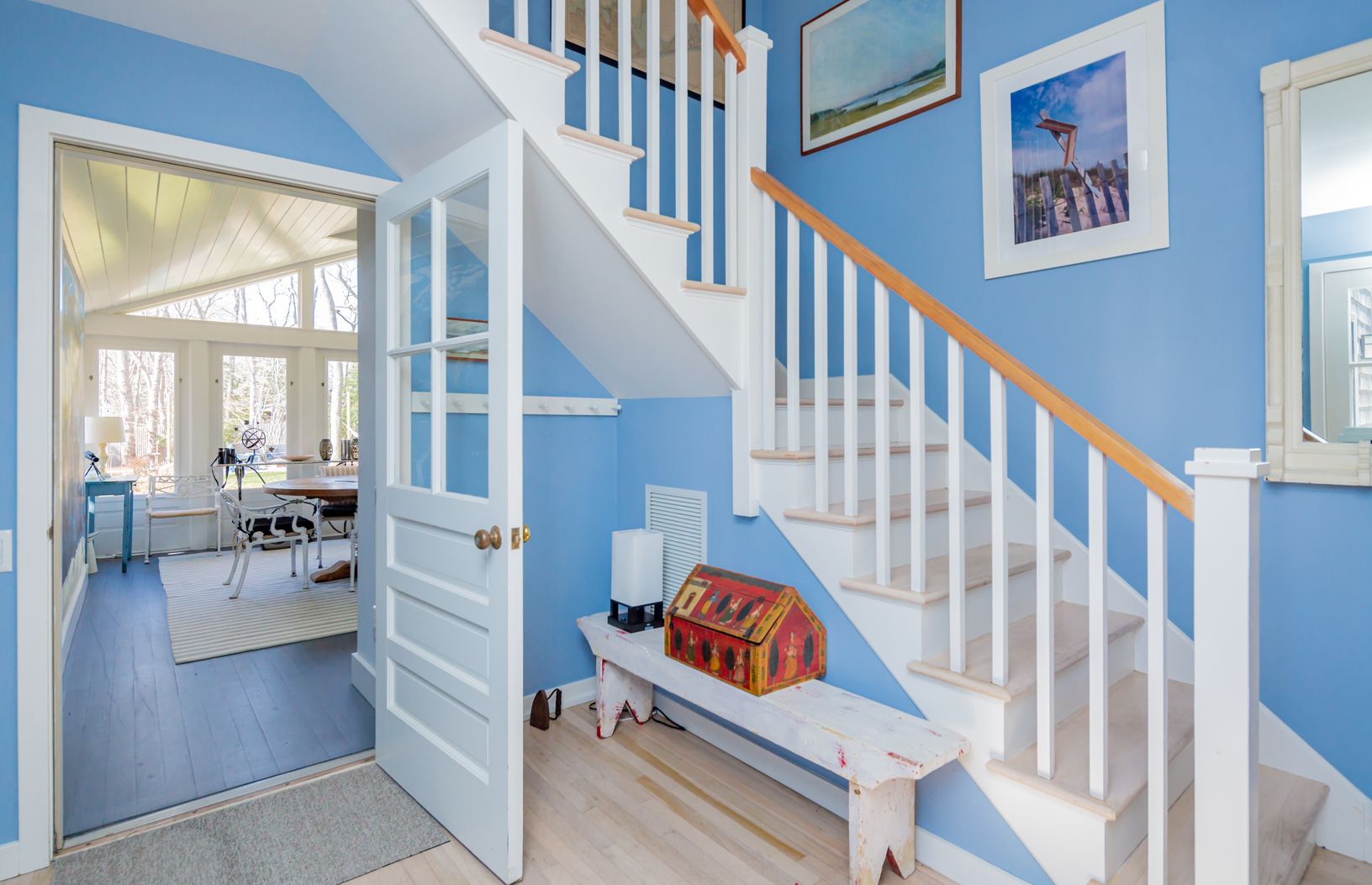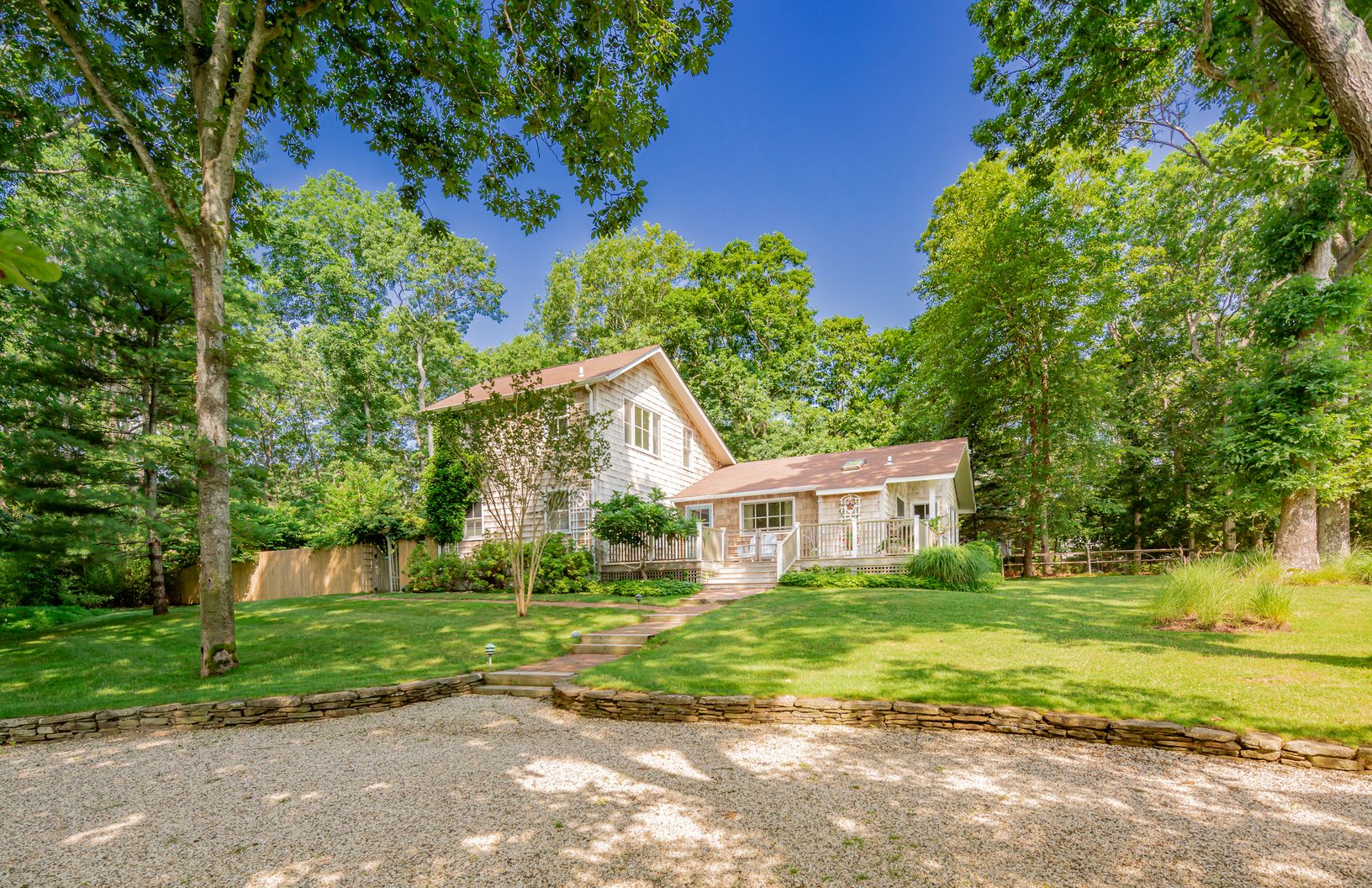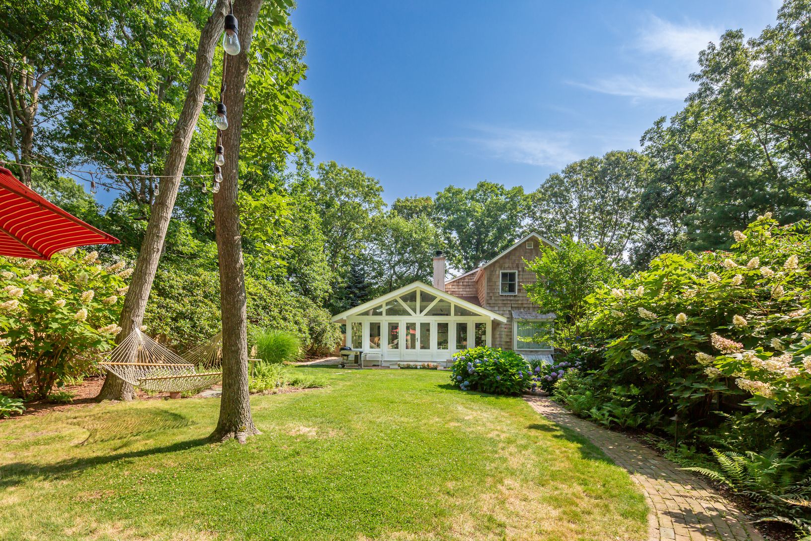 Across from preserved land and situated at the gateway to scenic and sought after Gerard Drive, this charming East Hampton beach cottage beckons. The appeal of this home is felt upon entry. The summer room faces the landscaped and enclosed yard with pathways and spacious lawn leading to a seating area surrounded by a fabulous fire pit. The perfect setting for slowing down and breathing in the salt air from nearby Gardiner's Bay. The 1st floor