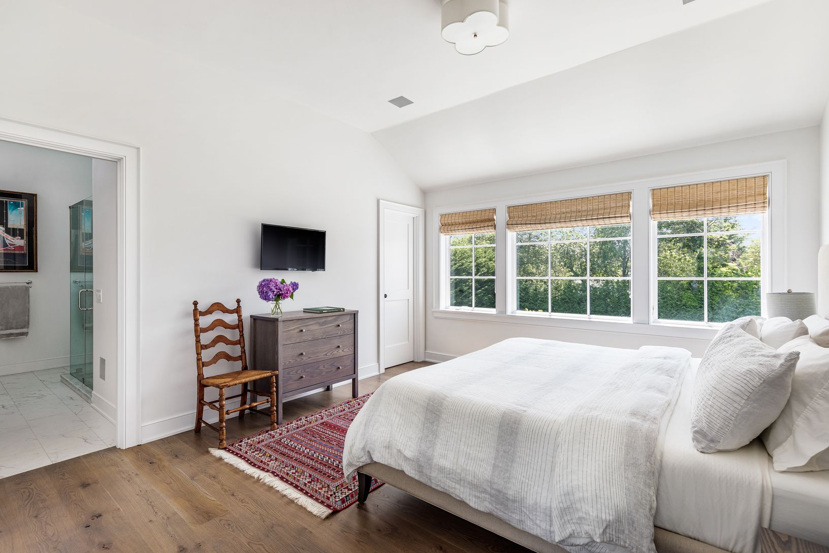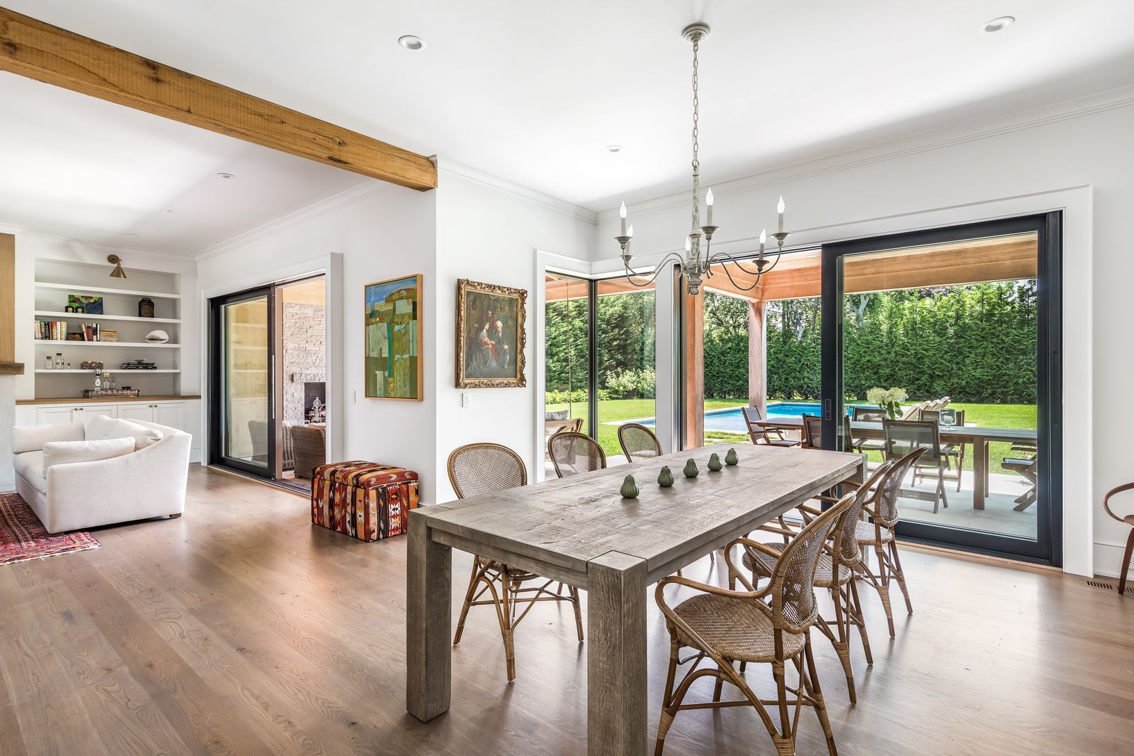 This is a rare opportunity in the highly coveted Amagansett Lanes to own a newly custom-built home, south of the highway, close to ocean beaches and the vibrant village of Amagansett. On a .55 acre flag lot, the 6 bedroom 5.5 bath, 4600 square foot house with heated gunite pool is set back from the lane and circled by tall evergreens for privacy and quiet enjoyment. The white cedar-clad modern farmhouse from architect Thomas Heine and builder