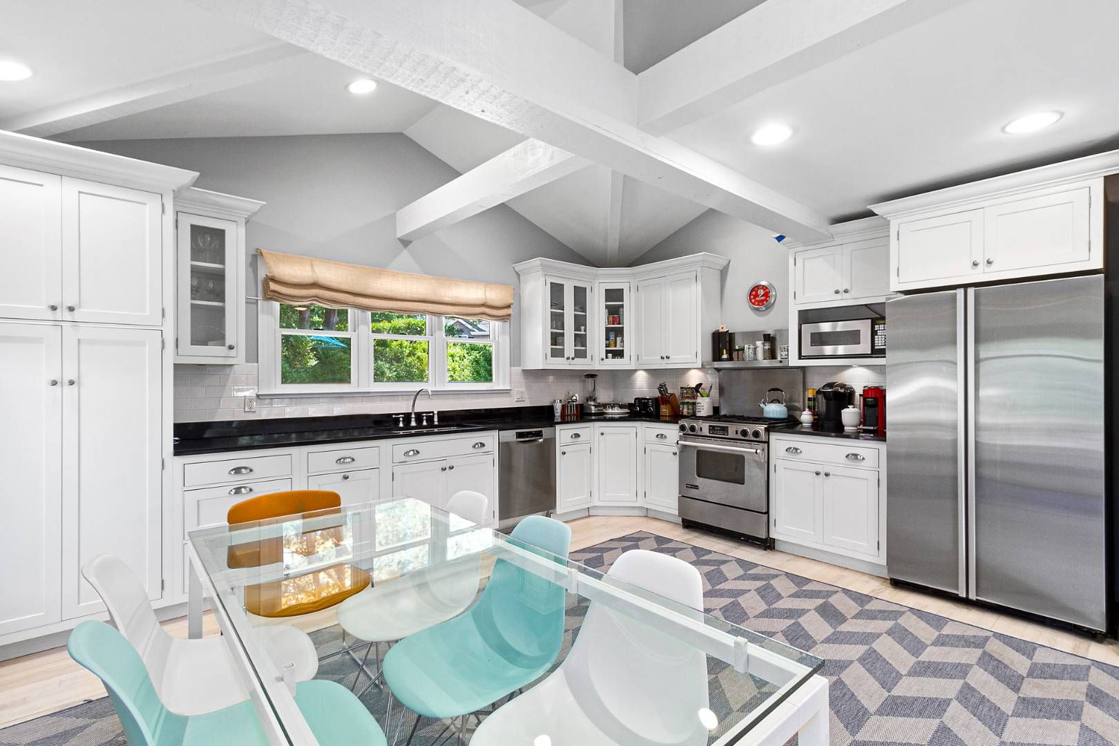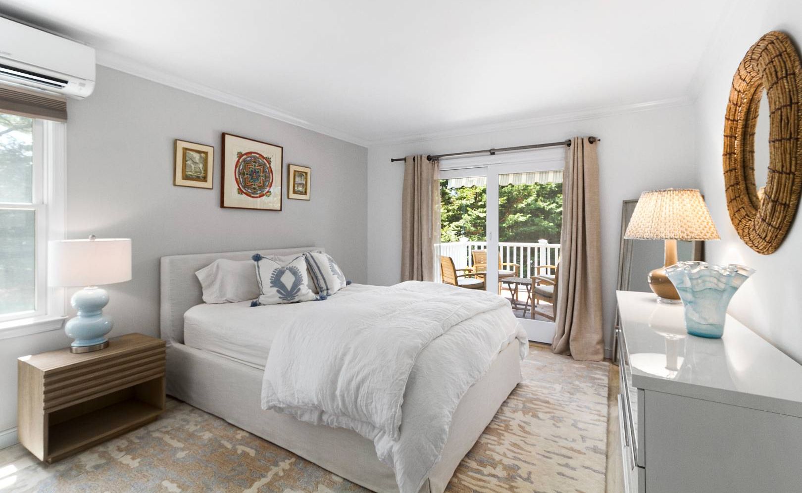 Located in a prestigious waterfront Mecox neighborhood surrounded by $5-10MM homes, this 2,200 sq.ft 3-4 bedroom residence is an exceptional find South-of-the-Highway at $3,500,000. Decked out with stylish, Hamptons-inspired interiors, the home features an eat-in kitchen that flows seamlessly to a living room with soaring cathedral ceilings, creating a light-filled and airy atmosphere. The living space extends outdoors with both a wrap-around