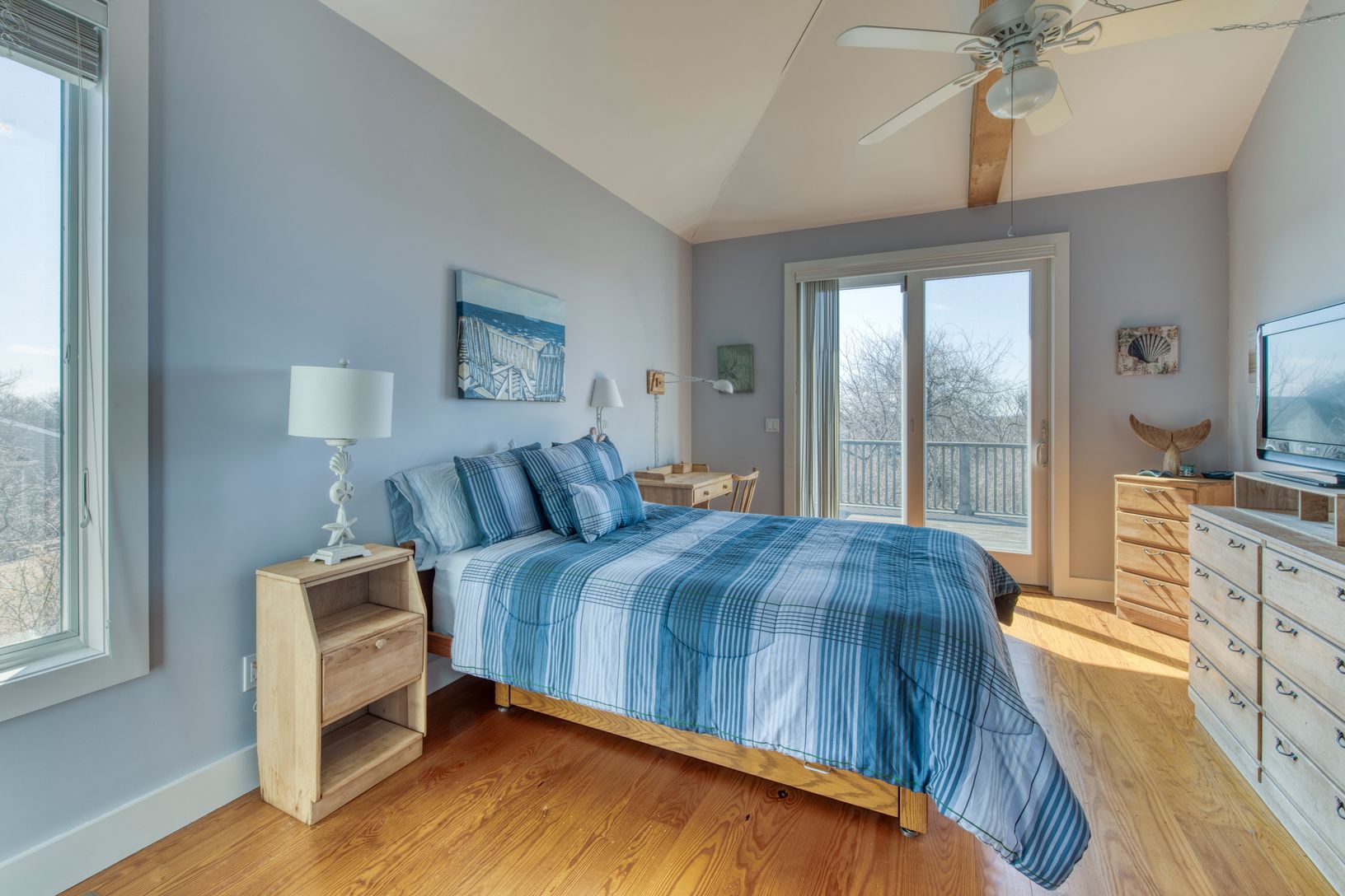 Situated just a few short blocks to the ocean and Montauk town amenities, this well-maintained traditional style home offers comfortable living spaces in a great Montauk location. The house is privately tucked away on a flag lot. The entry to the house has a covered porch and a large glass front door. The first floor offers a spacious light-filled foyer, three guest bedrooms, and a full bathroom. Upstairs, there is an open floor plan featuring