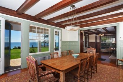 This rare and classic south-facing Summer Cottage on 3.2 lush acres has been painstakingly restored to its original splendor. It offers 5 bedrooms, 4 1/2 baths including 3 ensuite, large living room with fireplace, formal dining room, library, and a gourmet kitchen suite with laundry, butler's pantry, breakfast area, sitting area with fireplace/woodstove, and a connecting dining porch. It has bay views from nearly every room and all of its ori