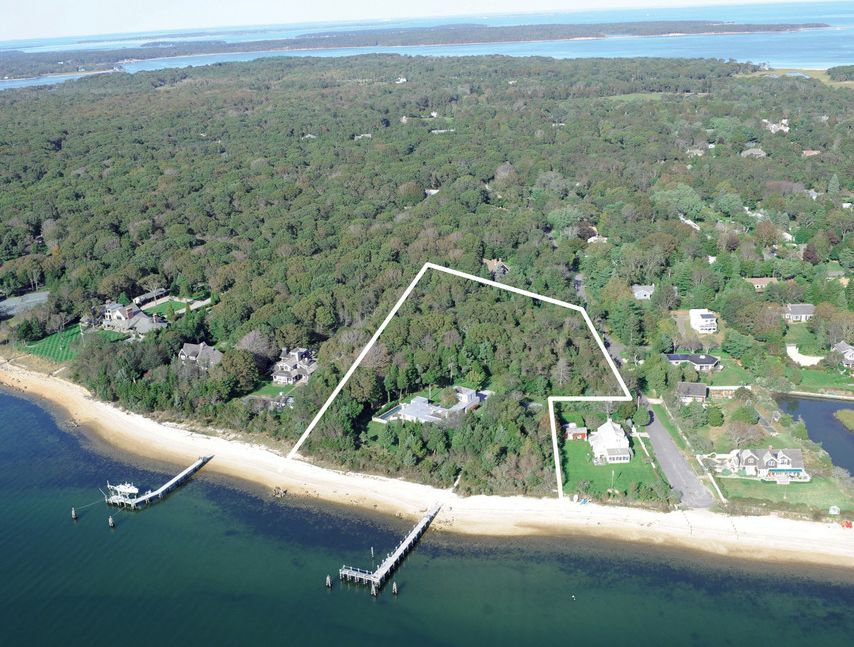 Heroic views and blazing sunsets are just the prologue to the story that describes this rare opportunity to create a magnificent bayfront compound. The waterfront parcel of 2.15 acres, with 338' beachy frontage on Noyac Bay and a substantial dock and pool, hosts a Modern home which could be expanded or you could build newly to create your own dream home. The abutting vacant lot of 1.84 acres is included in this offering and will provide ample