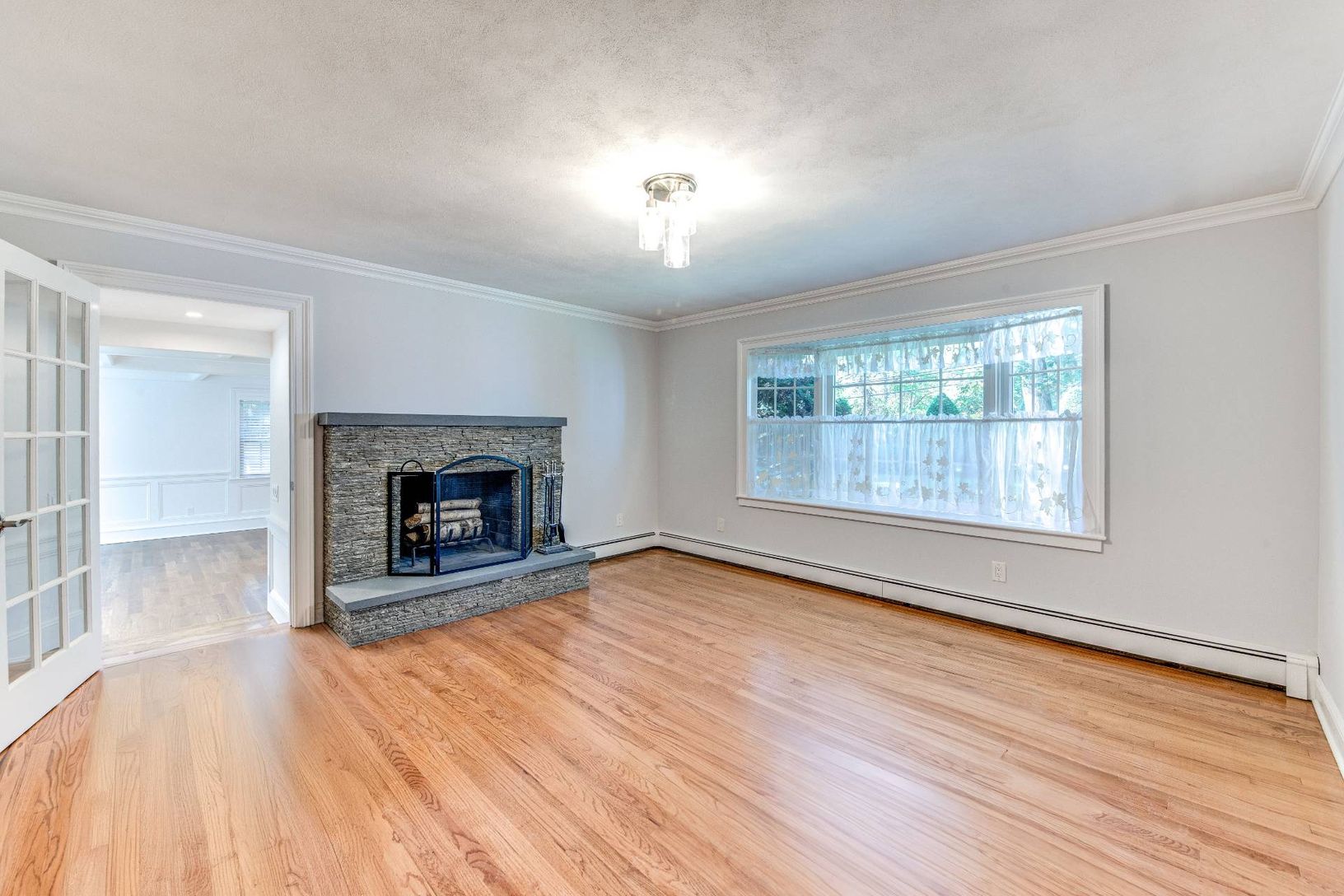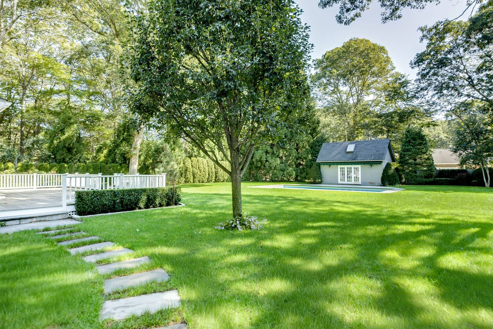 In the heart of East Hampton, just outside the Village, this charming, turnkey traditional home delivers immediate Hamptons luxury. Sited on over a half-acre with mature plantings, the 3,294 +/- sq. ft. home has 4 bedrooms, 3.5 baths, 2 fireplaces, attached garage, heated pool, and pool house. Interiors beam with natural light against gorgeous hardwood floors, wood-paneled walls, and sophisticated coffered ceilings. An open-concept living welc