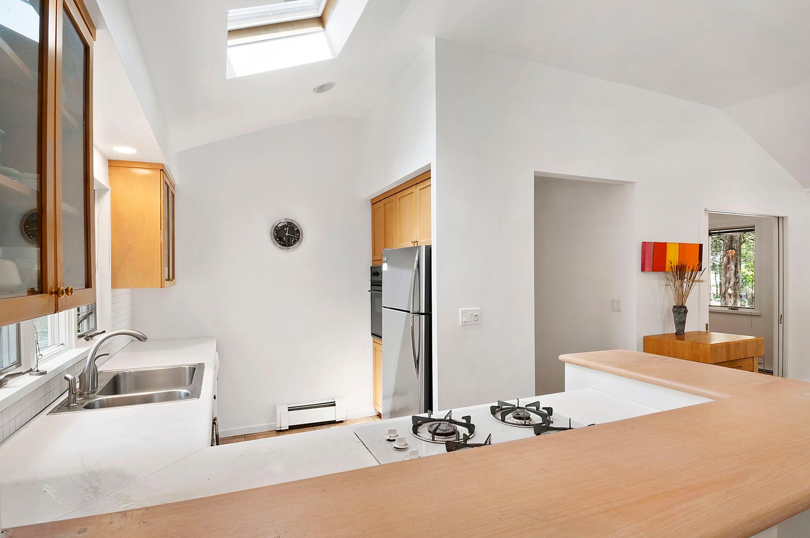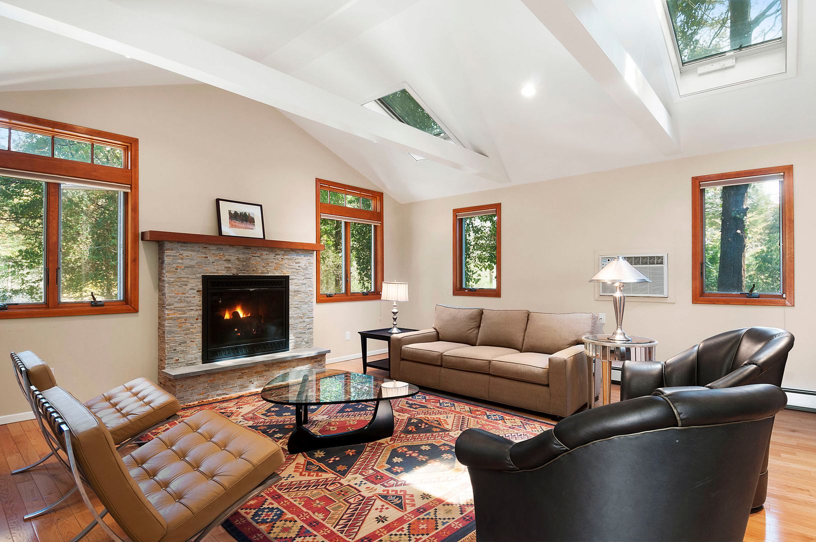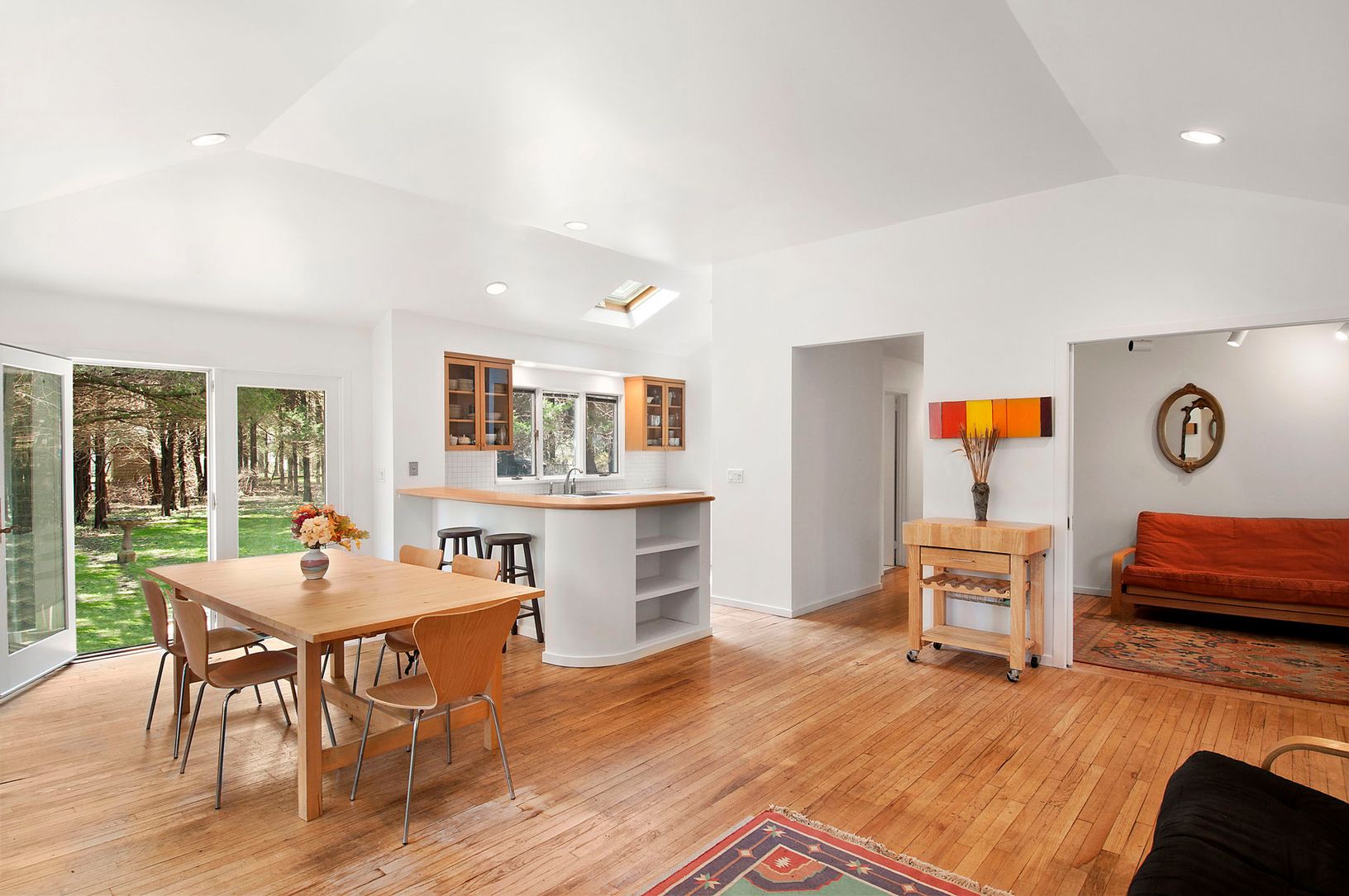 Tucked away on a shy half acre lot in the Clearwater Beach section of East Hampton, this sweet and well-maintained three bedroom home has plenty to offer. In 2005 there was a substantial addition, converting the garage into a large bonus living space with gas-burning fireplace and cathedral ceilings with skylights. The bright and open living, kitchen and dining area has sliders leading to the beautiful property. The large yard is perfect for o
