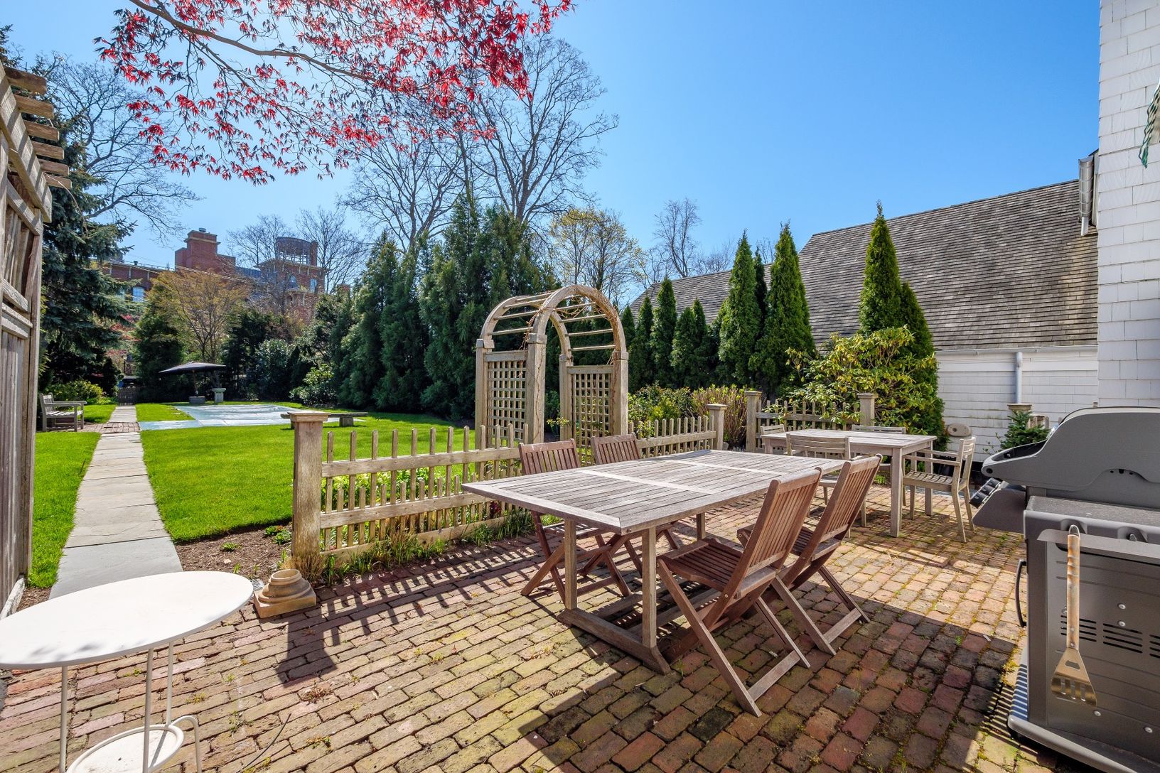 Nestled on historic Main Street in the heart of Sag Harbor Village, this captivating three story 5-bedroom residence is available for rent. Exposed hand-hewn beams, seven working fireplaces, and wide-plank hardwood floors evoke the home's rich 19th-century heritage, while thoughtful restoration has introduced every contemporary comfort. The beautiful renovated kitchen professional-grade appliances, marble counters, and custom cabinetry flowing