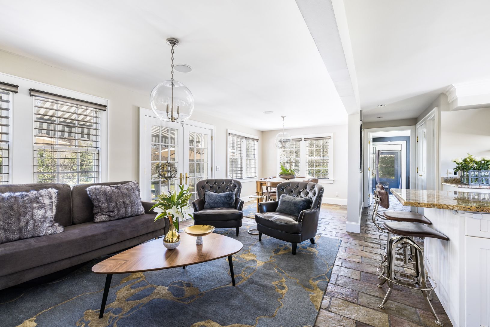 This secluded 2.6 +/- acre compound at 117 Sound Road, Wading River is comprised of three separate structures and is surrounded by over 100 acres of nature preserve in Wading River. With stunning manicured gardens and ornamental trees, this fully renovated farmhouse from the 1840's is the perfect place to call home for those who want a retreat from the world around, easy access to Manhattan, and all that the North Fork and Hamptons has to offe