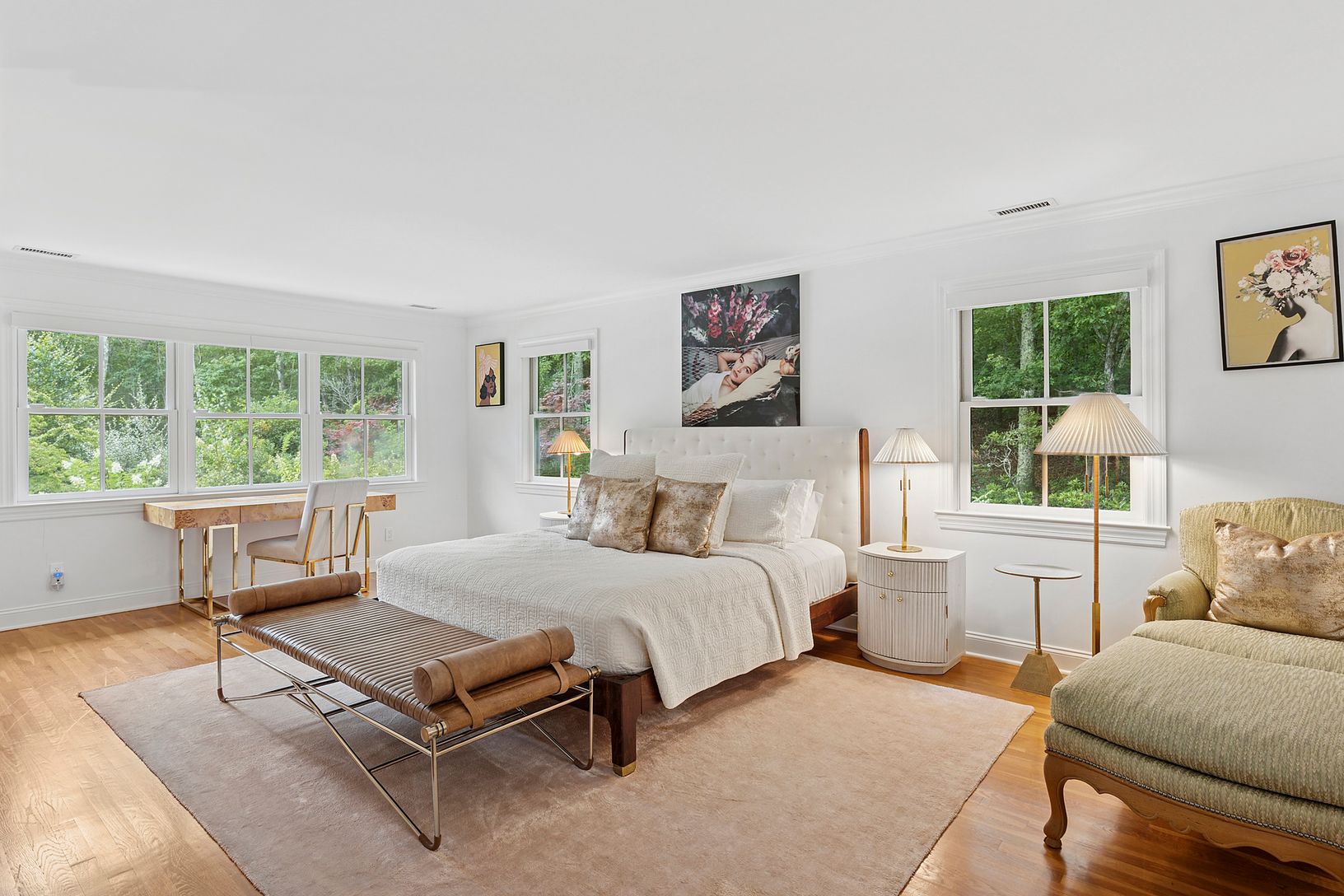 Hidden beyond stately gates, this extraordinary Sag Harbor estate emerges along a winding, lantern-illuminated drive, drawing you into a world of serene sophistication. Encompassing 5.4 lush acres, this 5,500-square-foot residence is a masterful retreat, cocooned in verdant splendor and absolute seclusion. Inside, discover generous, sunlit rooms, exquisite bedrooms, and thoughtfully curated spaces that balance grand entertaining with intimate