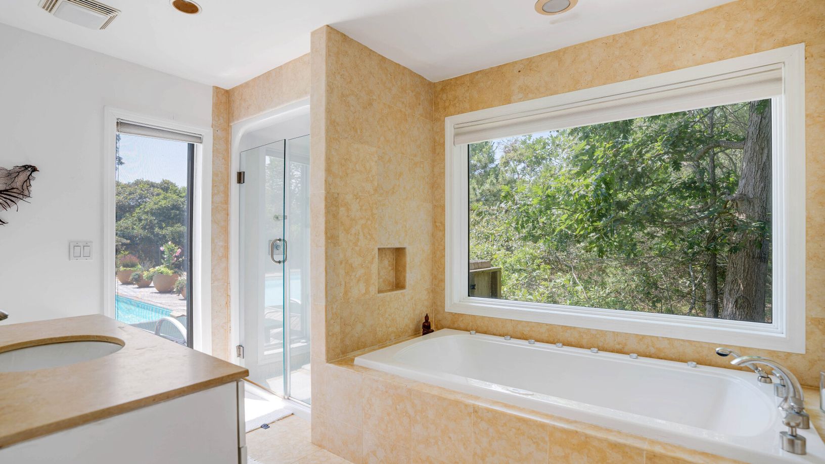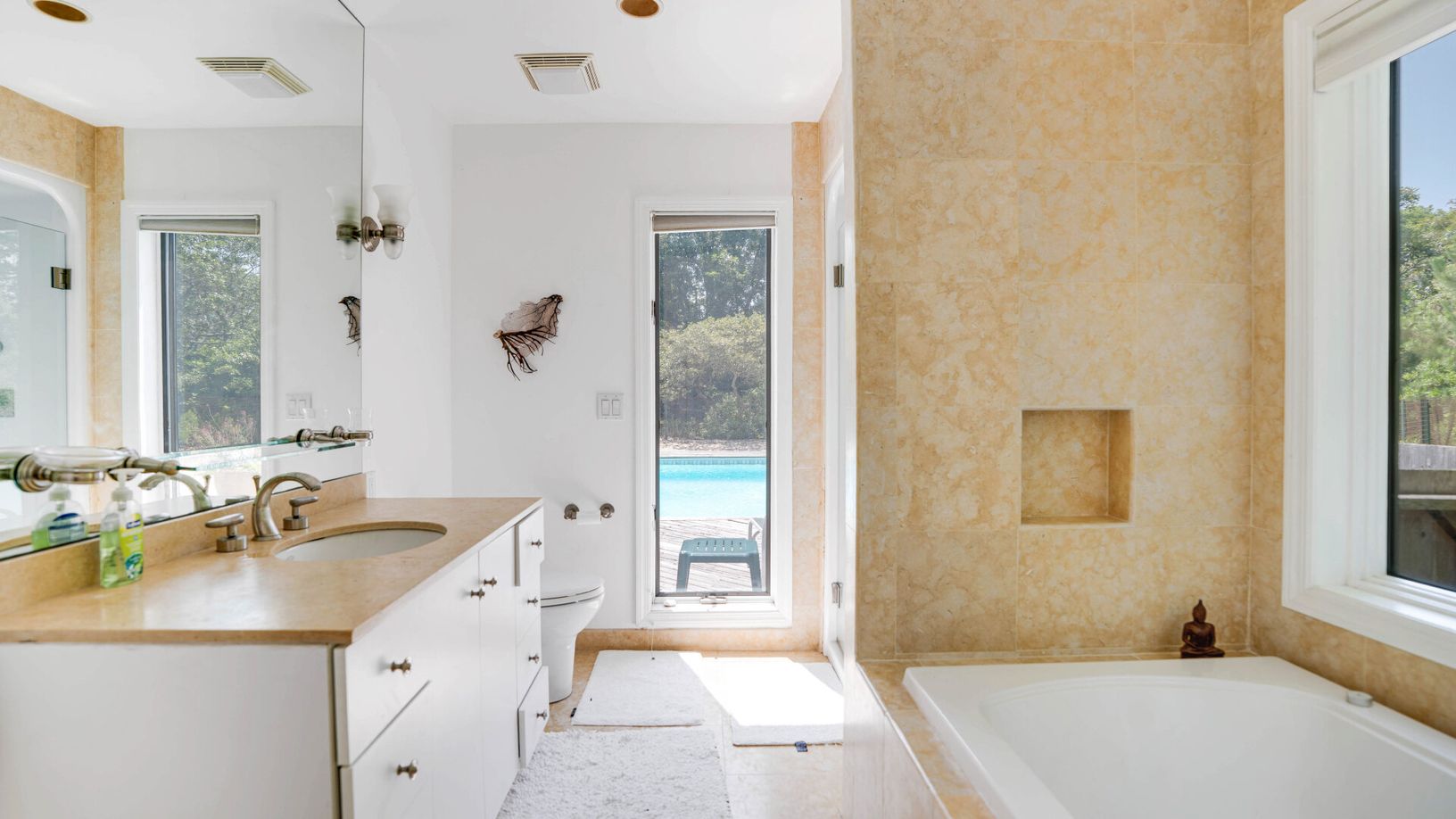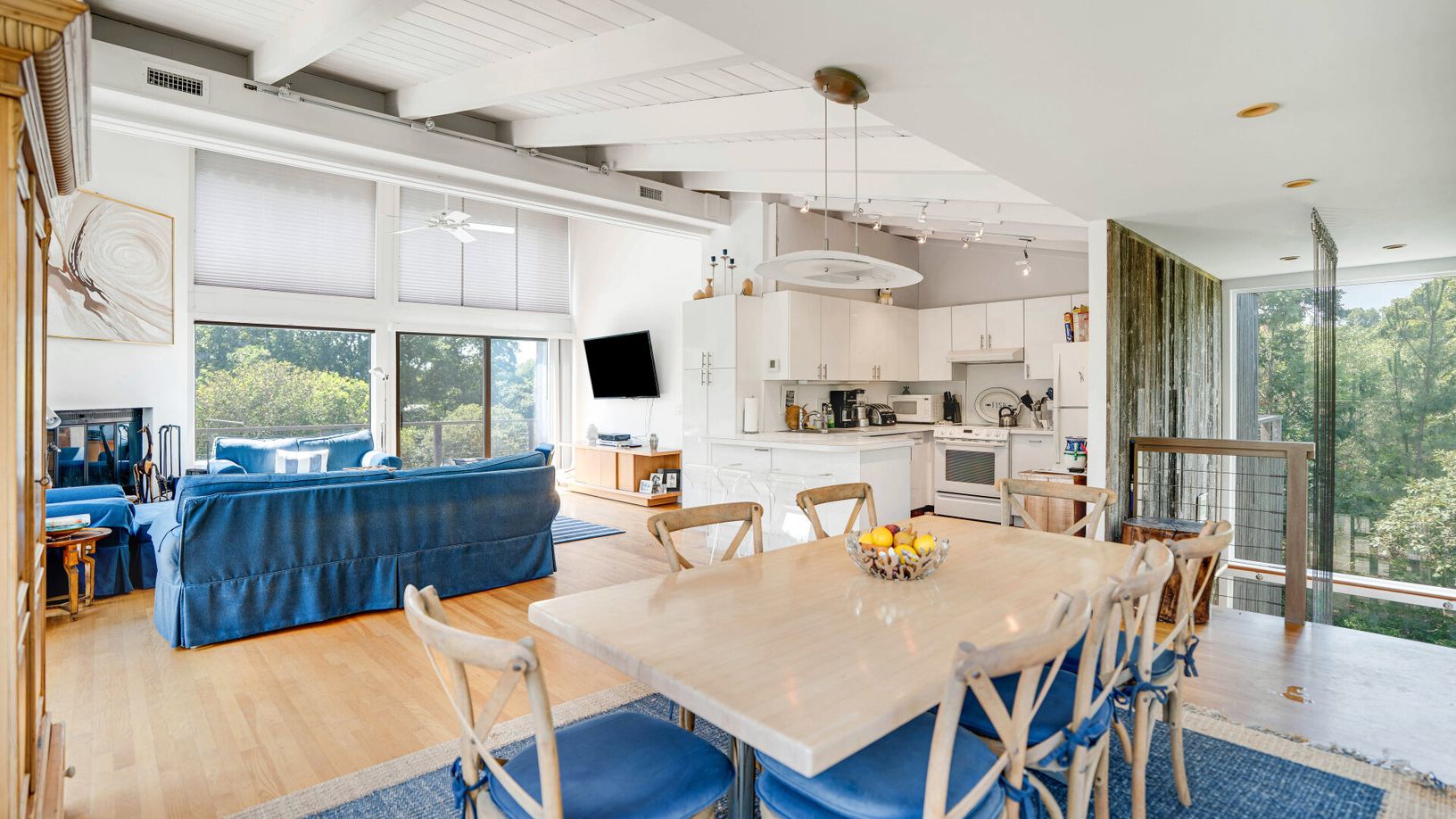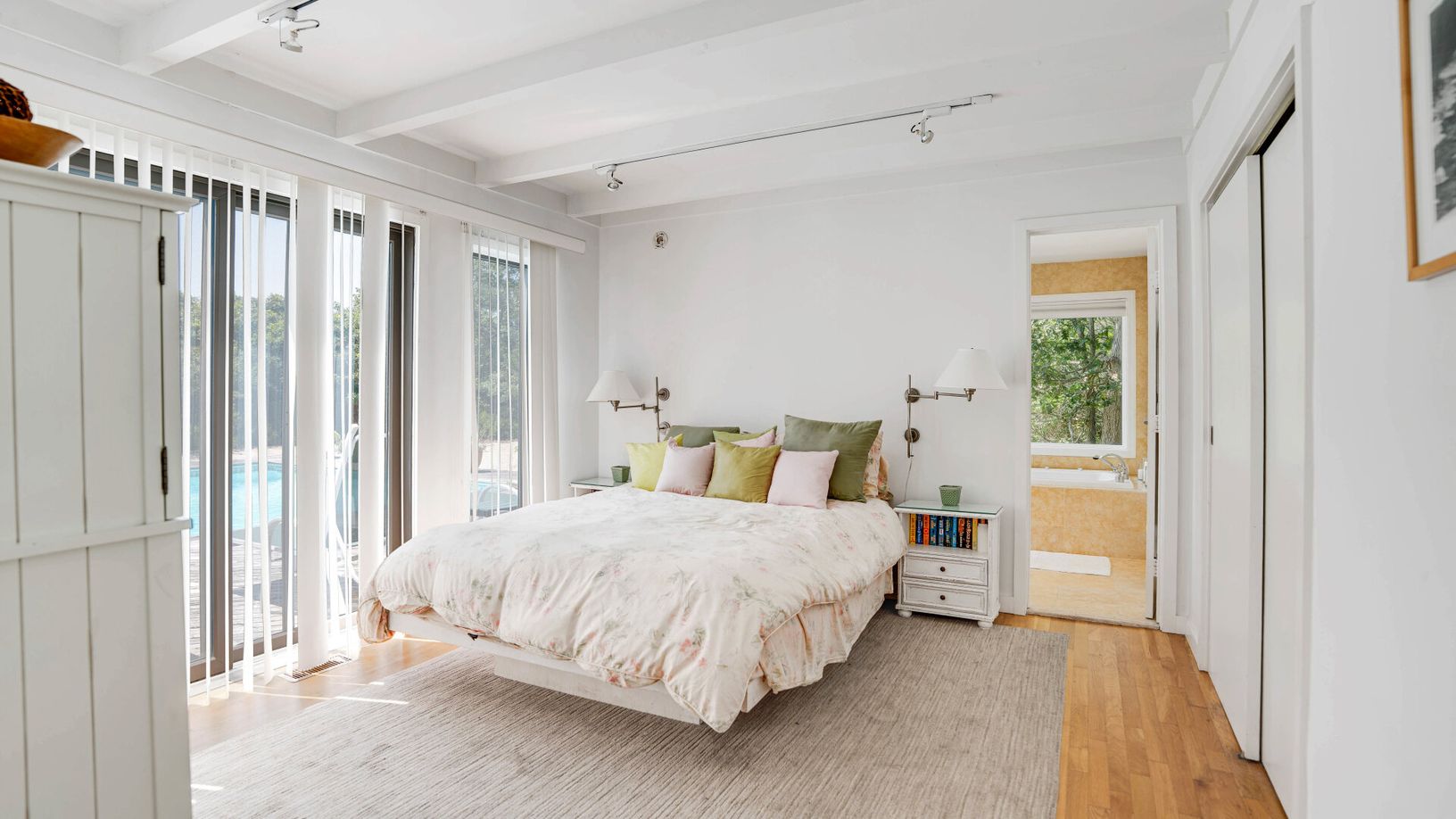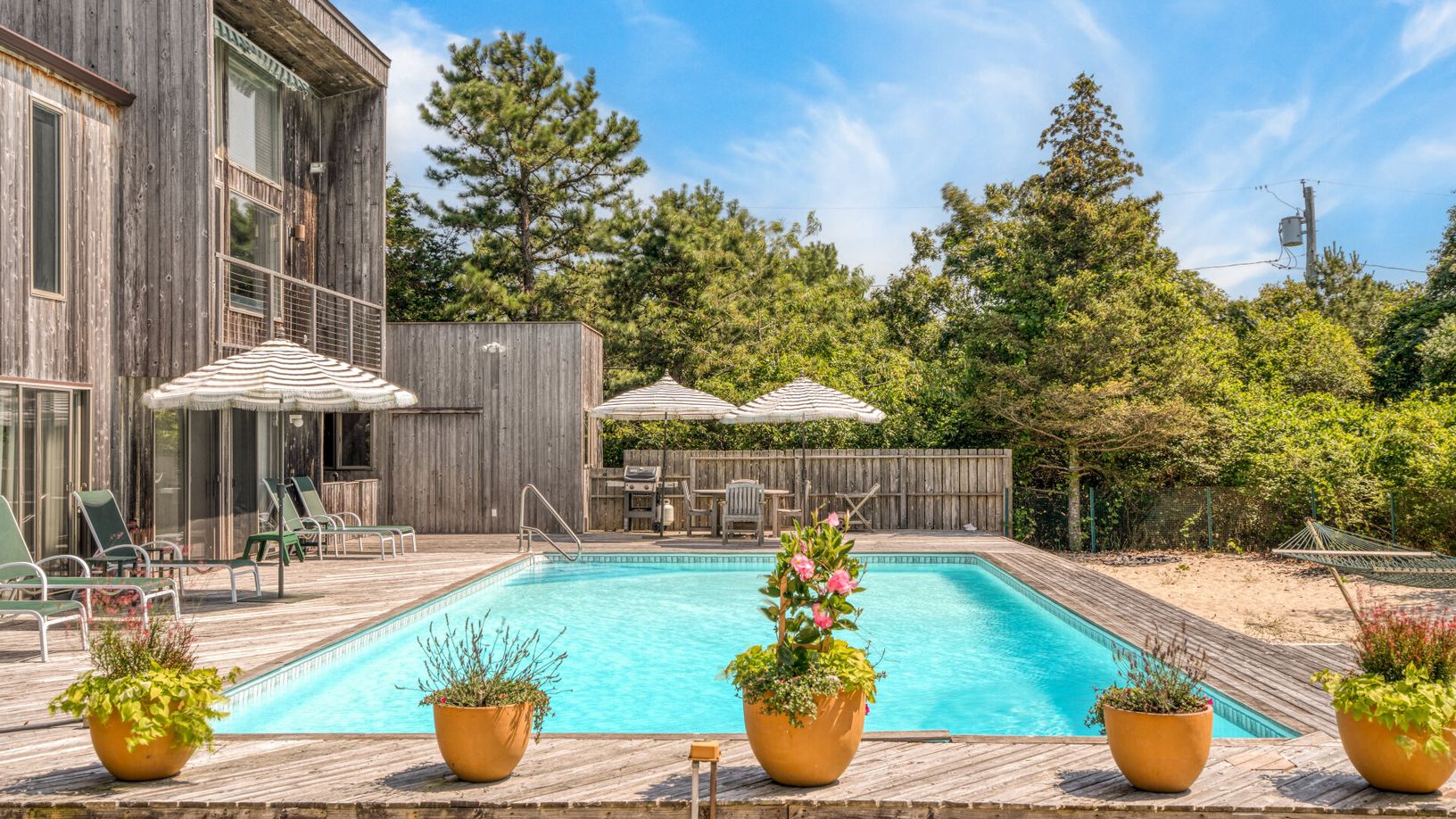 Talk about beach home perfection! This incredible Amagansett home encompasses the essence of Hamptons beachside living. Step foot through the front door and be welcomed by a sunlit living space with wooden raftered ceilings and oversized beachy couches. The open-plan of the ground floor will lead you seamlessly f