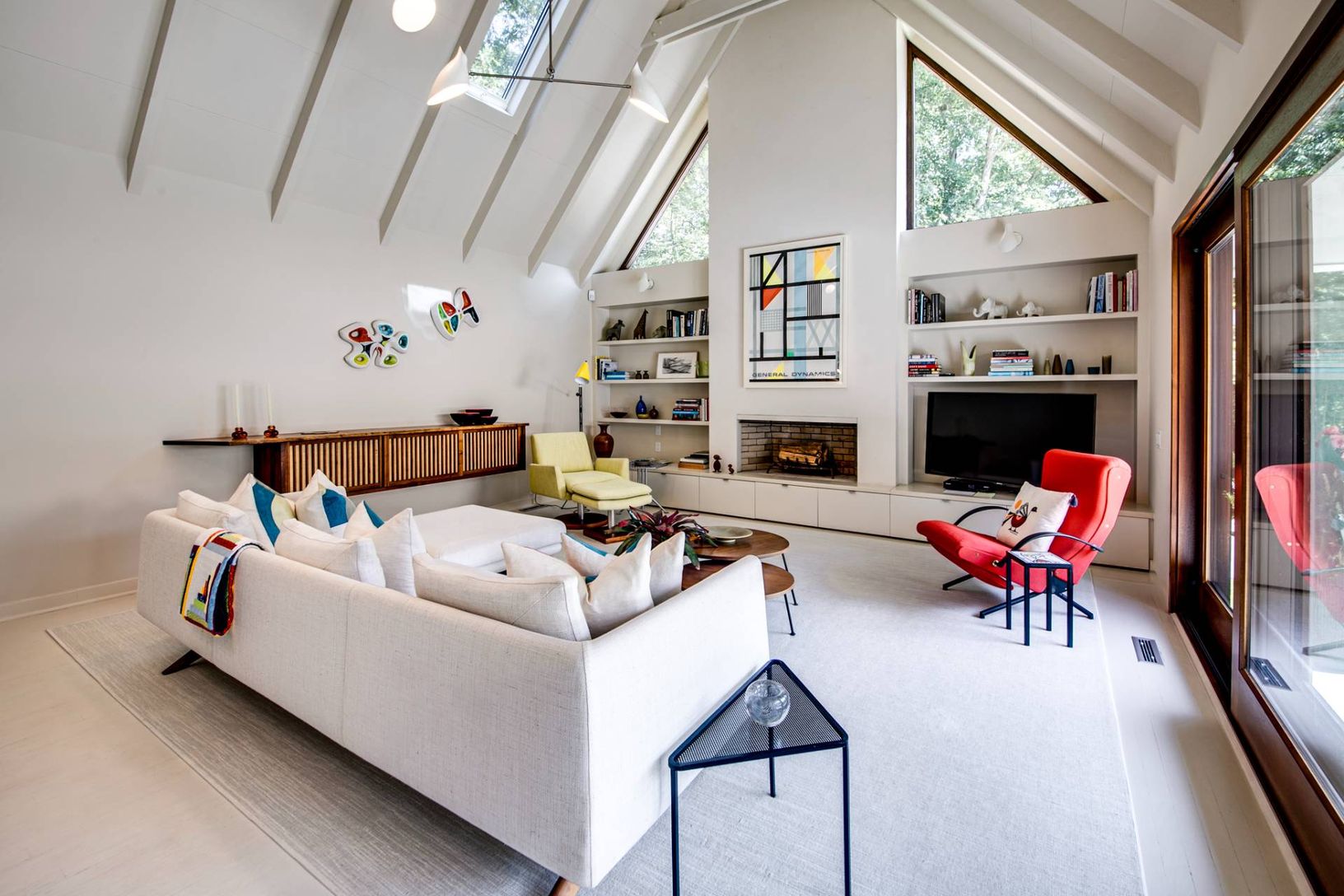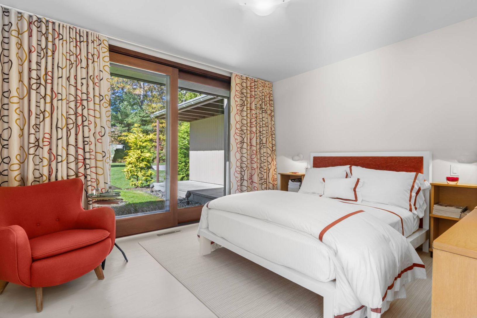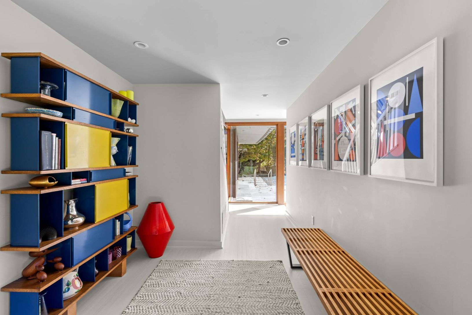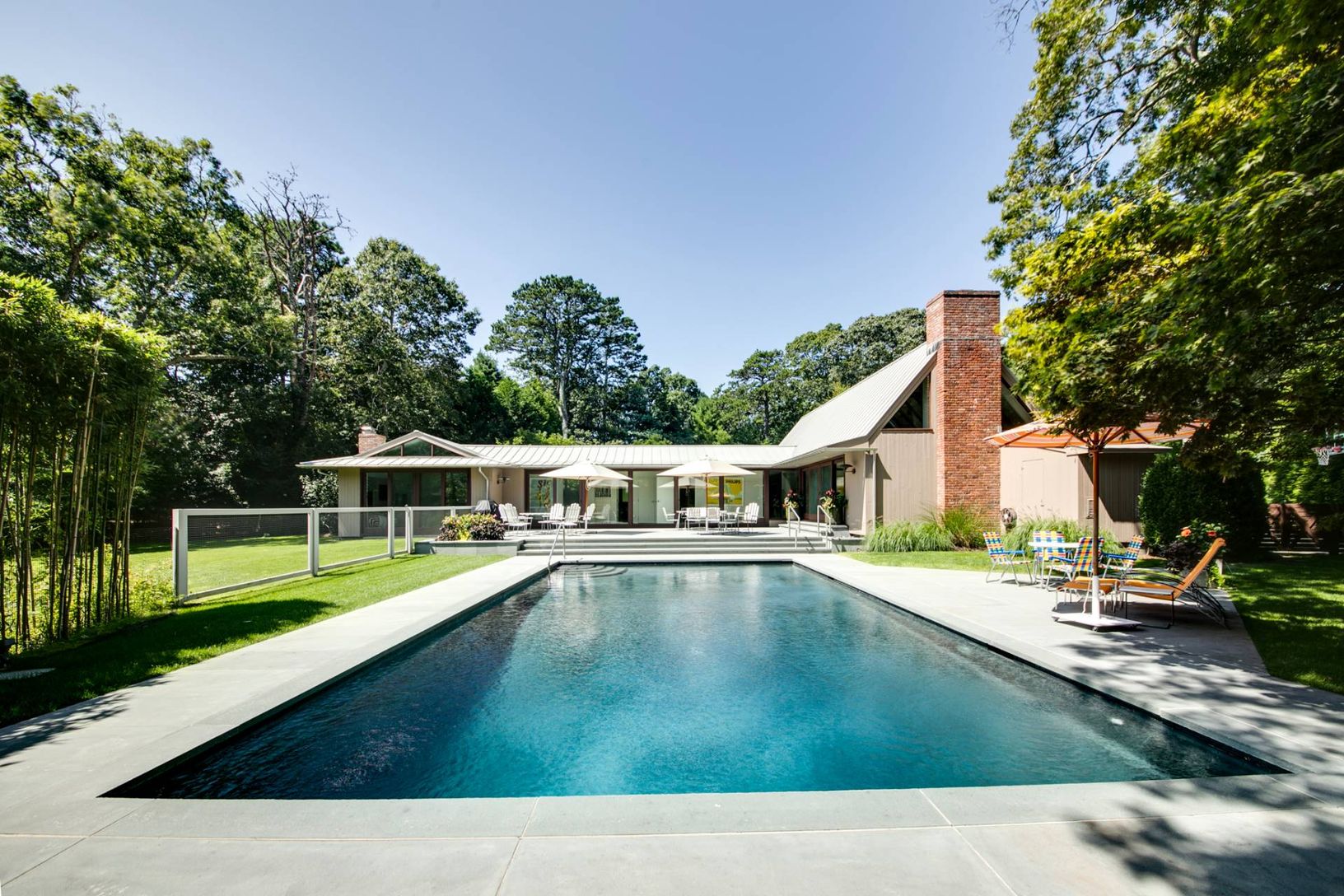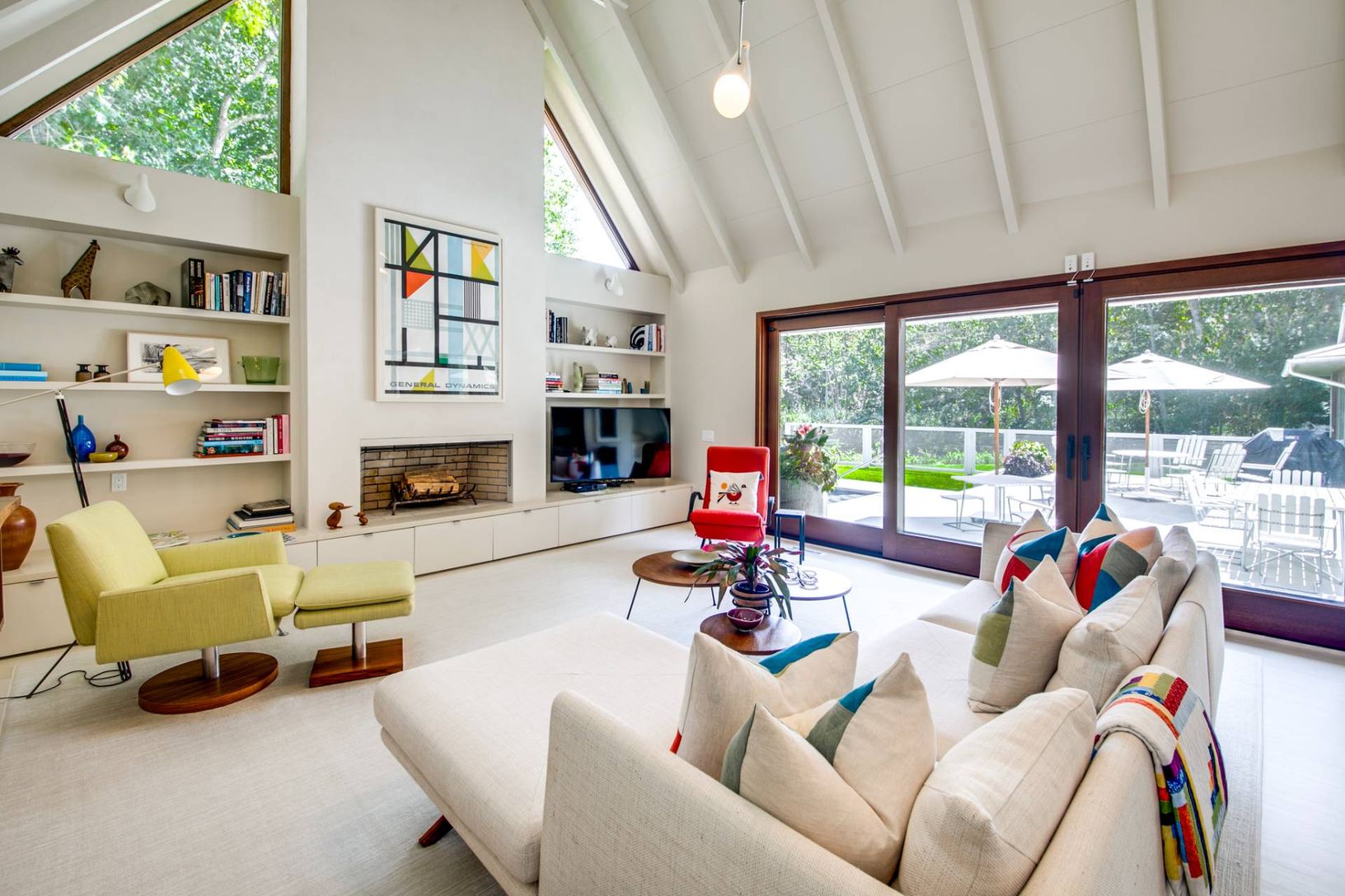 Situated on Georgica Pond, this stunning mid-century modern home was originally built in 1965, and masterfully re-designed by renowned designer Amy Lau who seamlessly blended sophistication with nature. With its expansive windows, the home invites views of the pond and surrounding landscape into every room, creating a tranquil atmosphere that you'll cherish for years to come. Step inside to discover open-concept living spaces featuring a vault