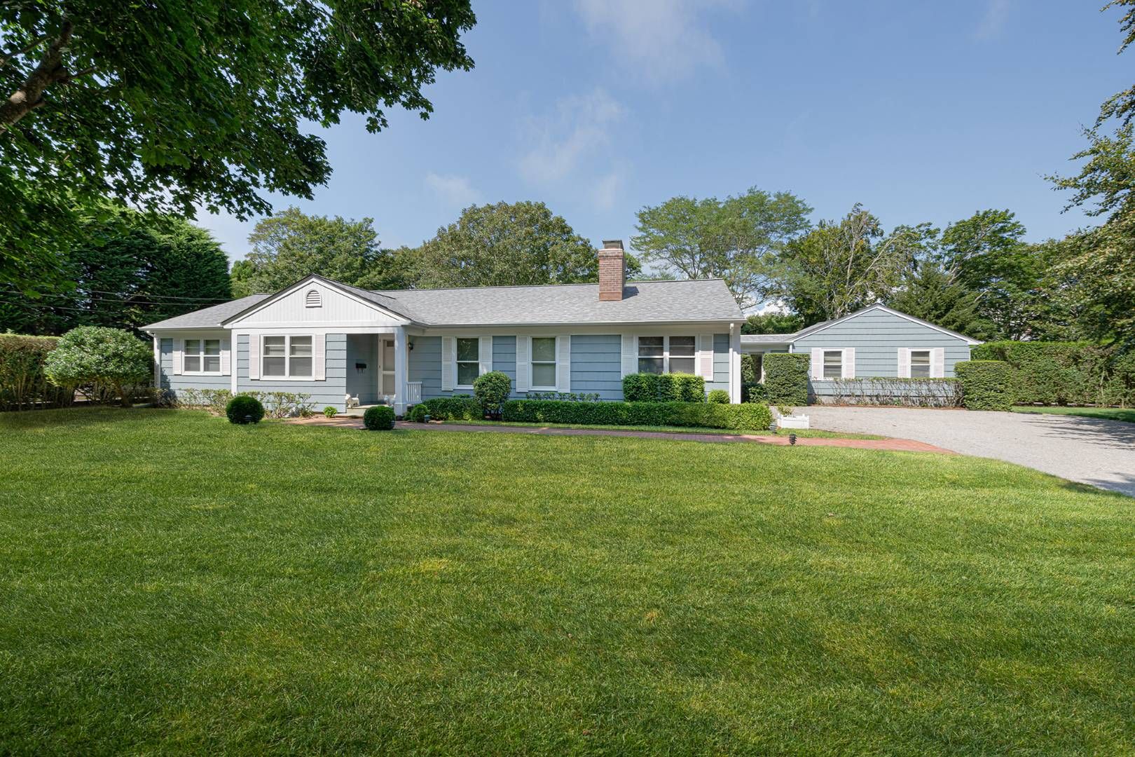 Set on .58+/- acre of beautiful land off Breese Lane, a well-known and sought out location in Southampton Village, is this three bedroom, three bath generously sized ranch close to Main Street, Jobs Lane and the ocean beaches. The living & dining space is one large open room offering a wood-burning fireplace, high ceilings and a wall of French doors leading out to the west-facing backyard. The cozy den offers an additional fireplace with a